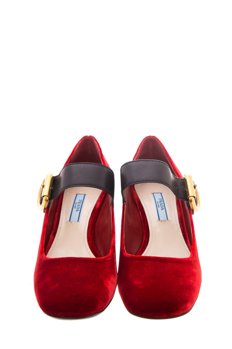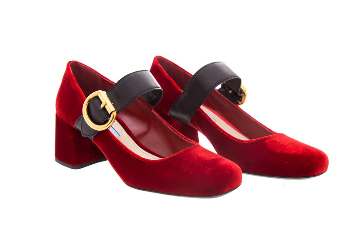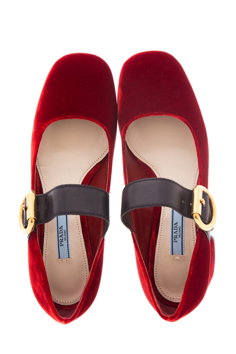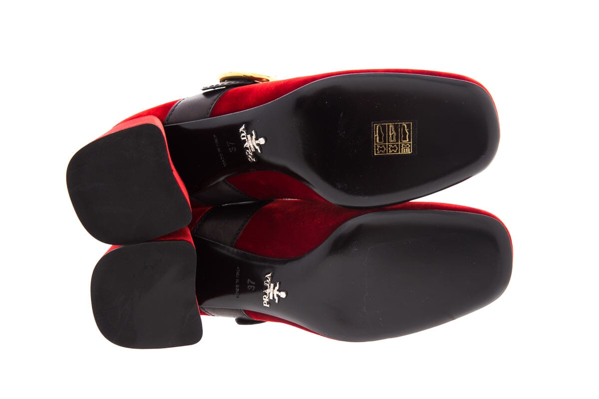 Prada Red Velvet Mary Jane. This item has never been worn.
