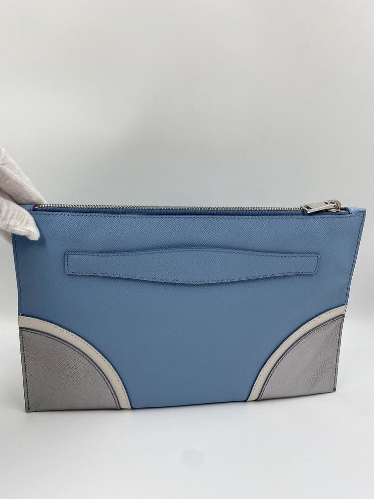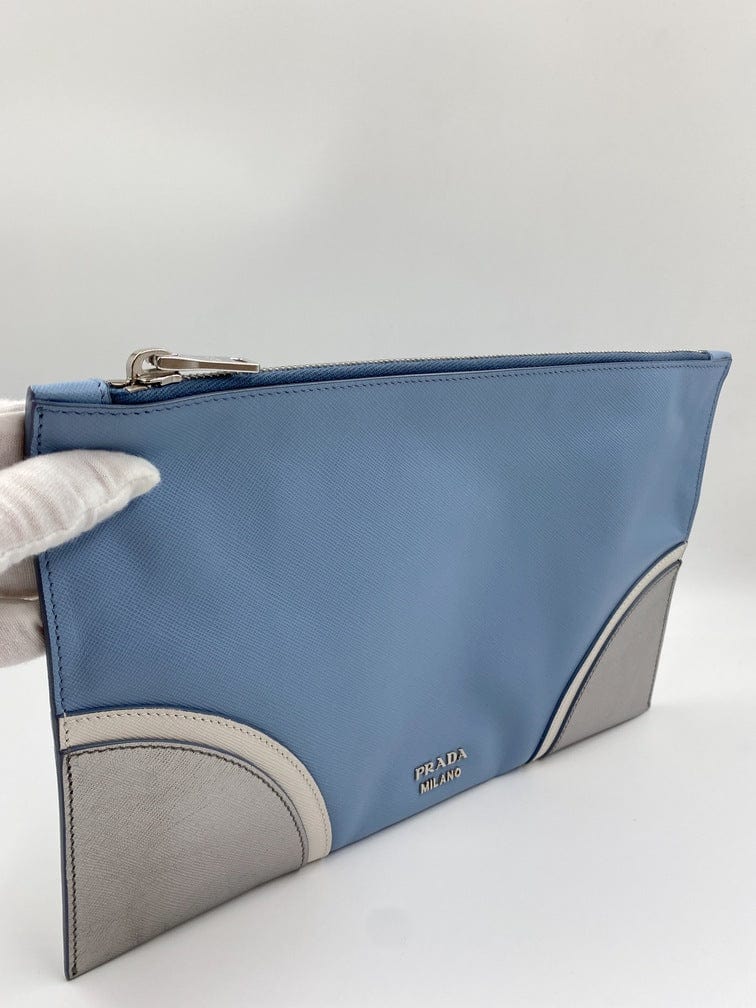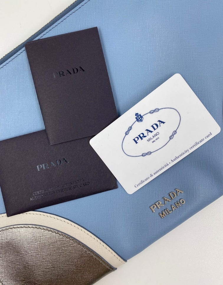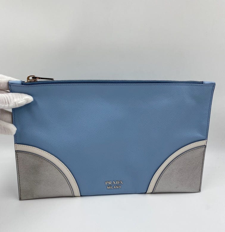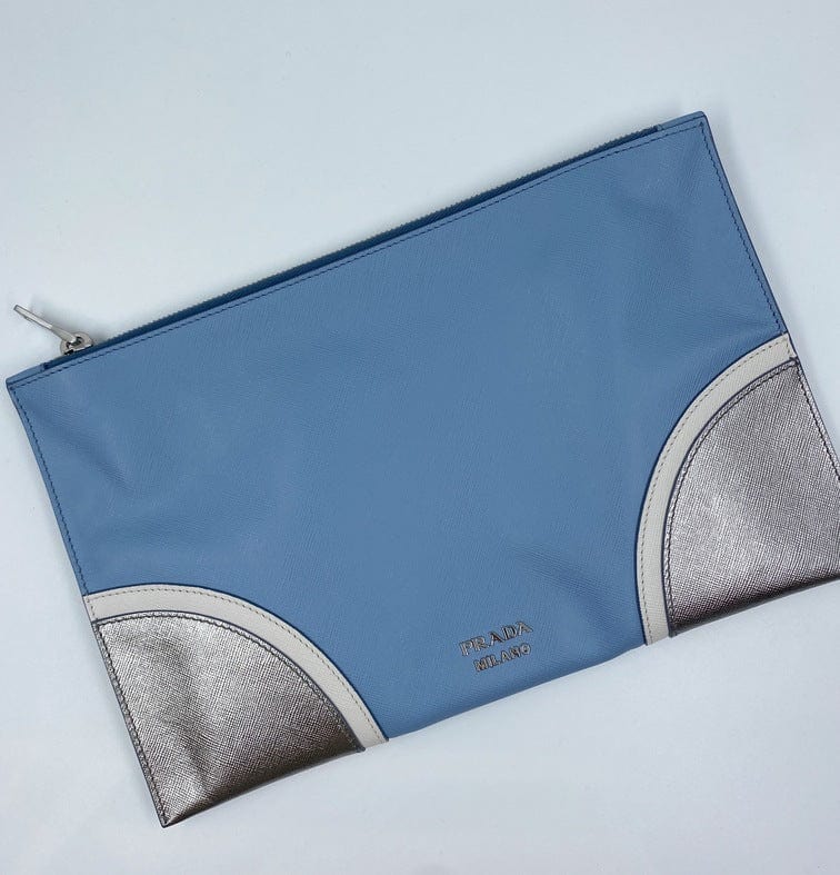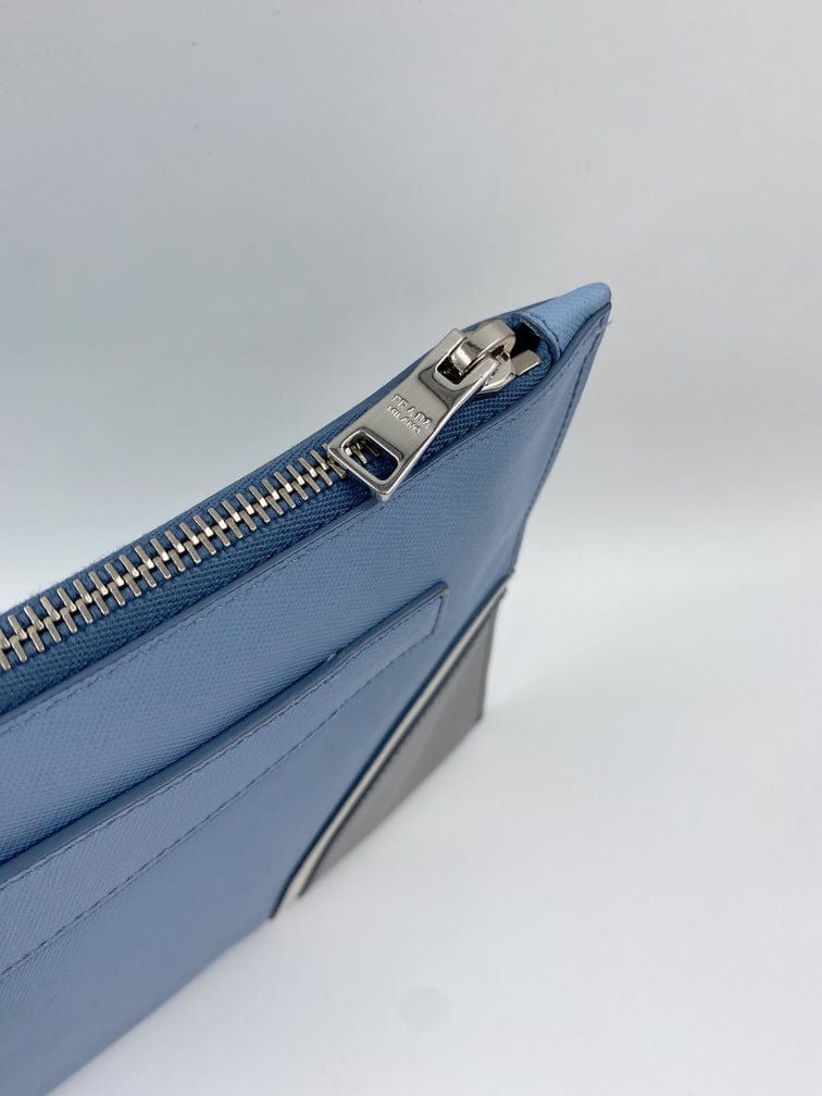 The coolest Saffiano leather clutch bag. This clutch comes with its original Prada authenticity cards.
