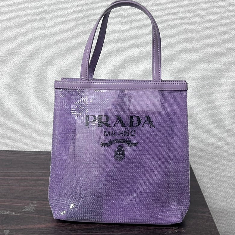 Prada Small Sequined Mesh Tote Bag With Pouch
