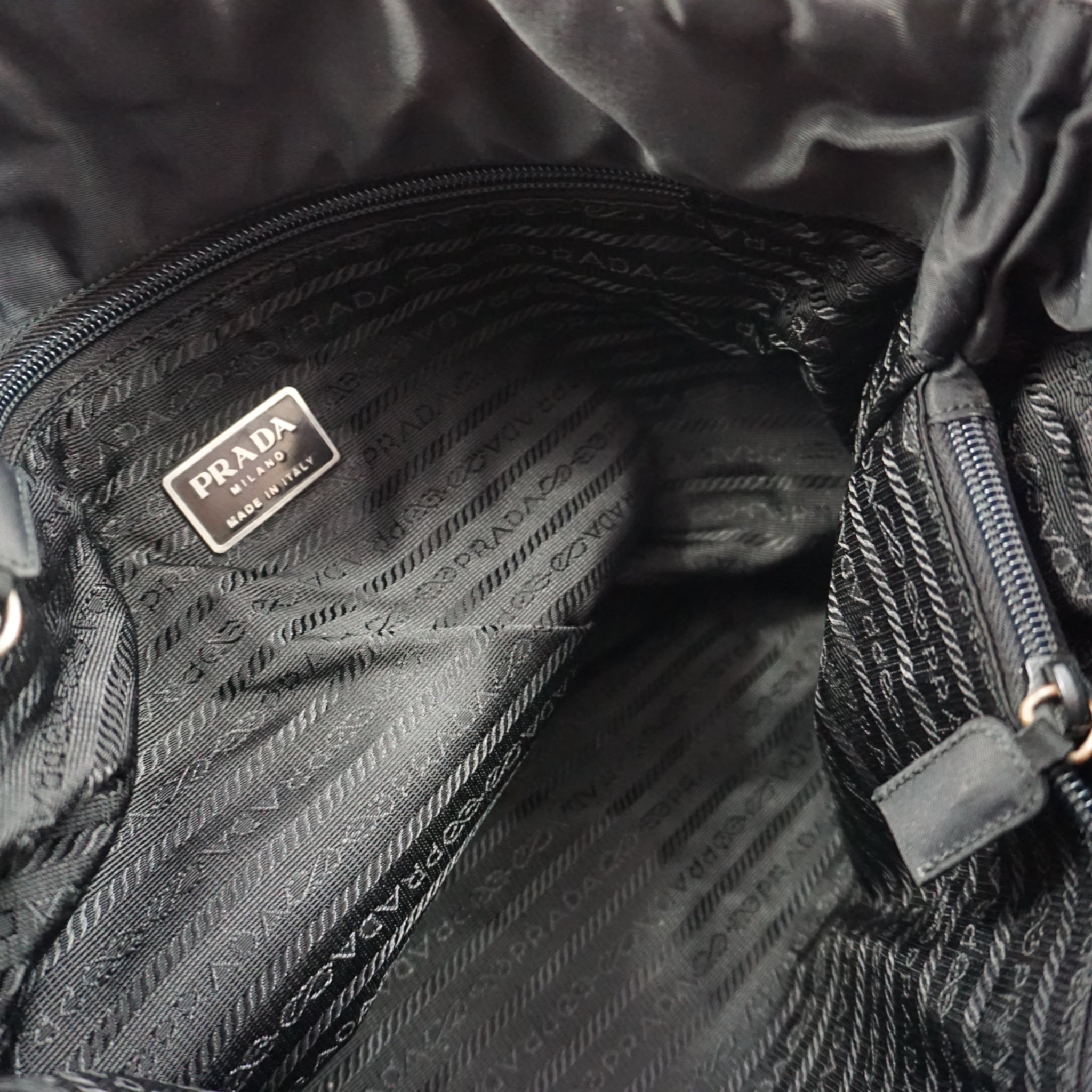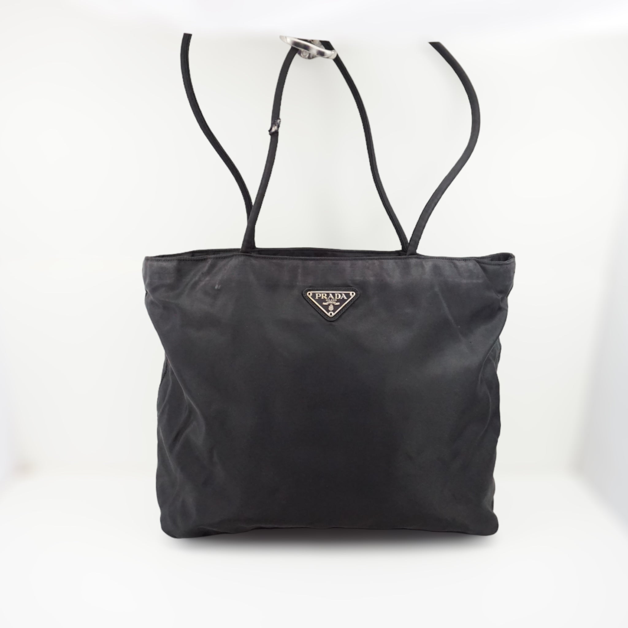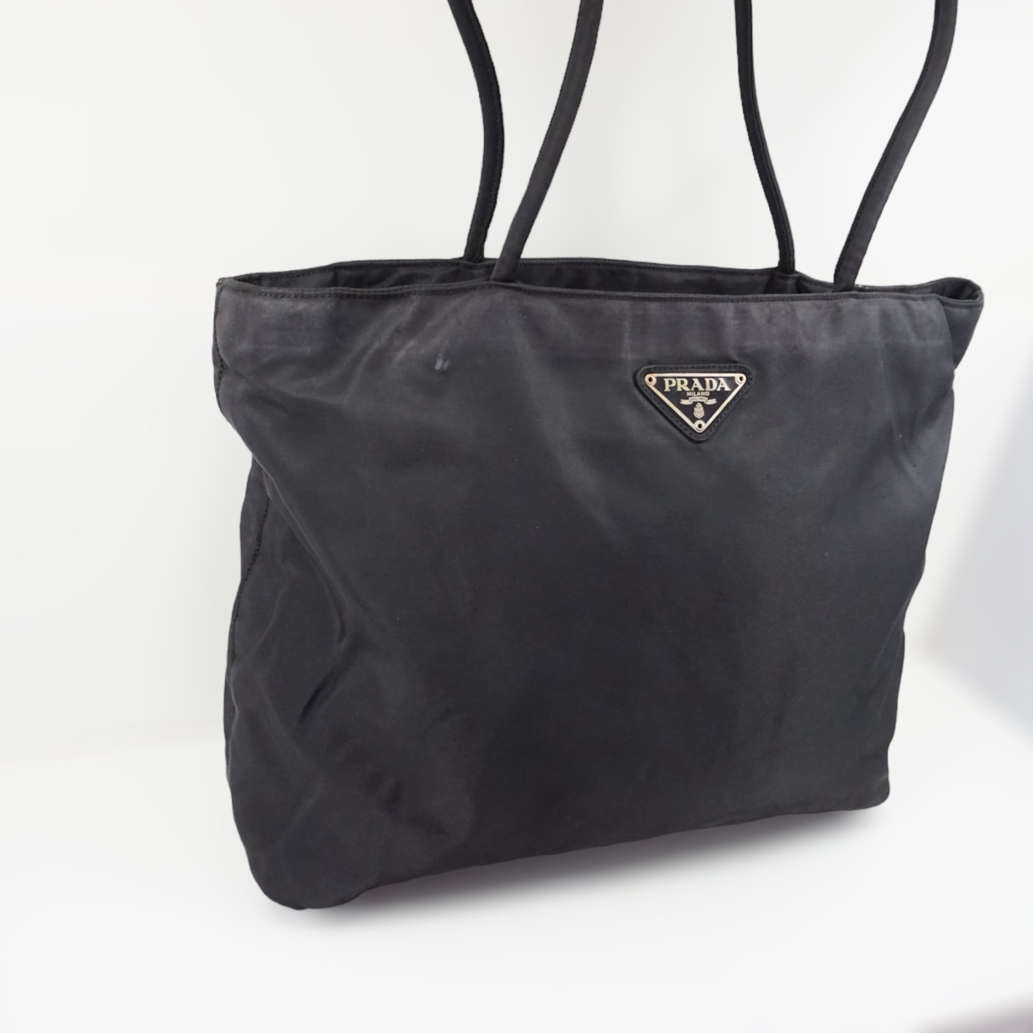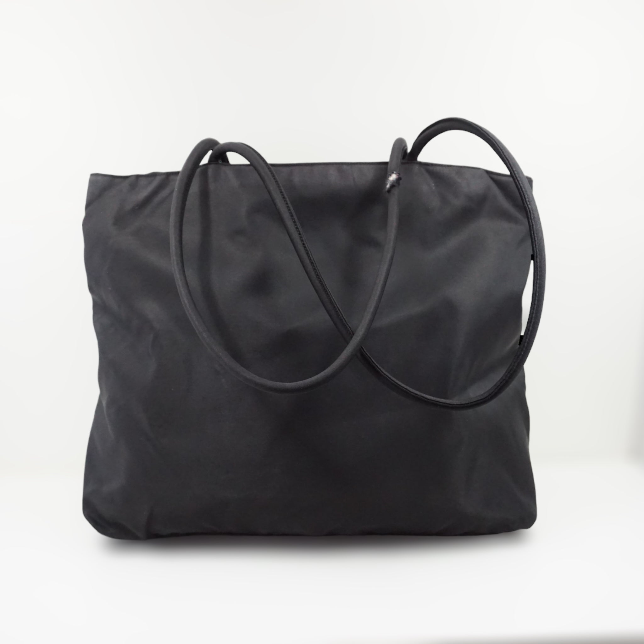 Klassisk Prada skuldertaske i sort nylon.