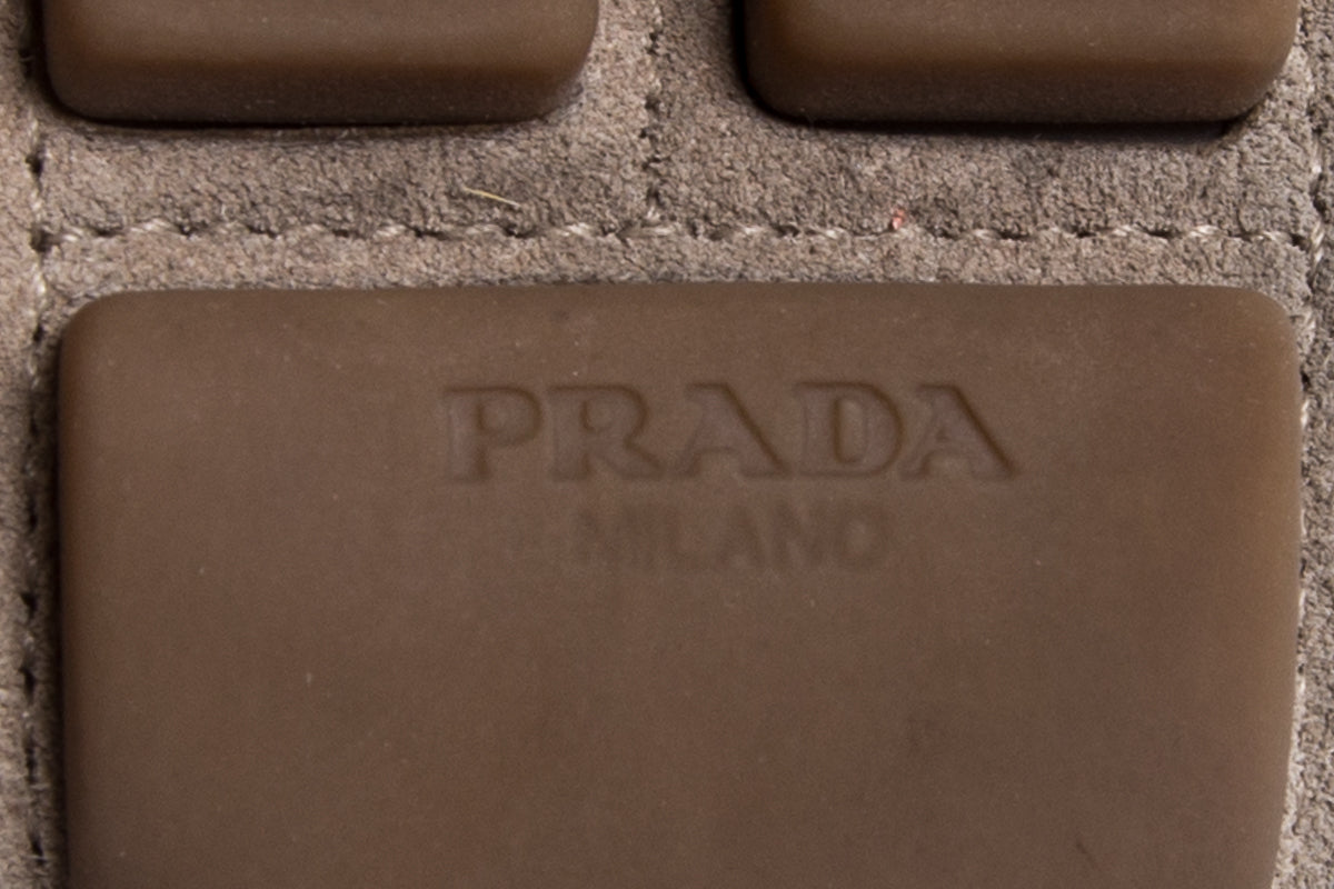 Prada Taupe Suede Loafers. This item is in gently loved with scuffing to the tip of suede and wear to insoles.
