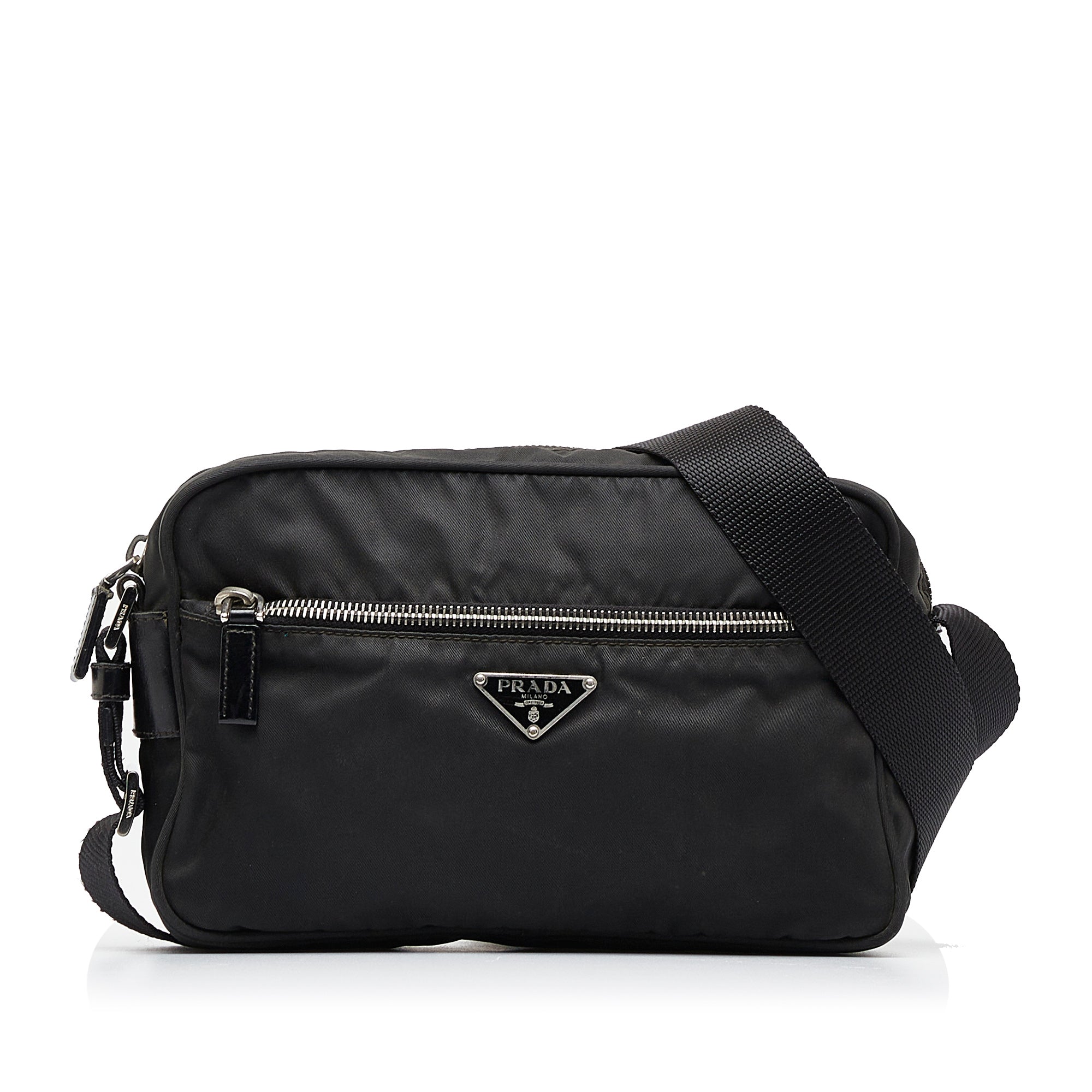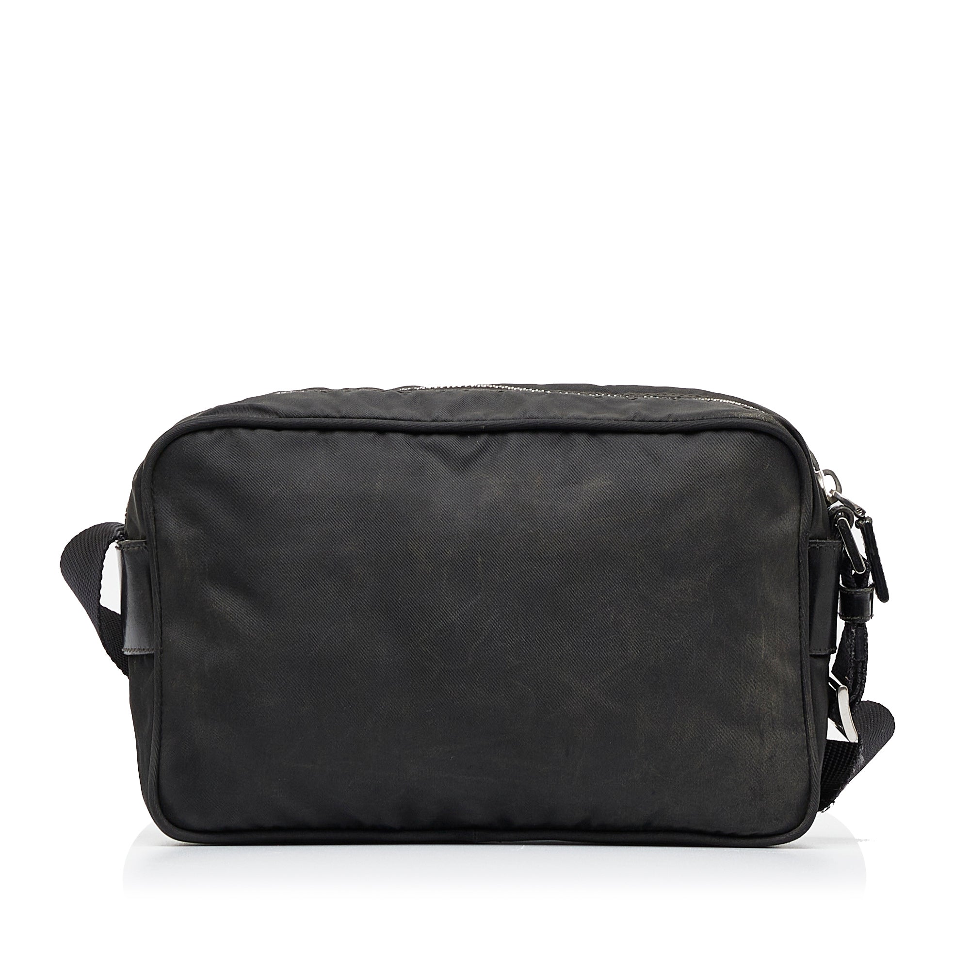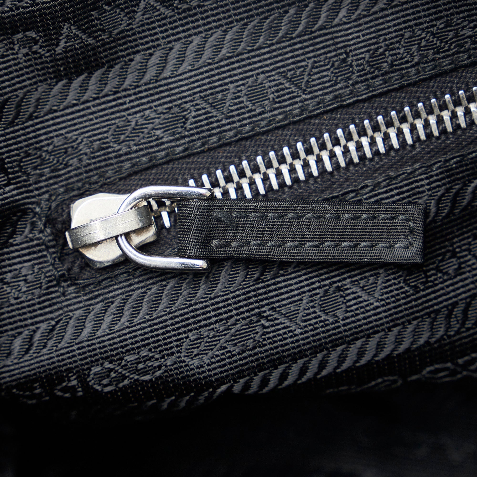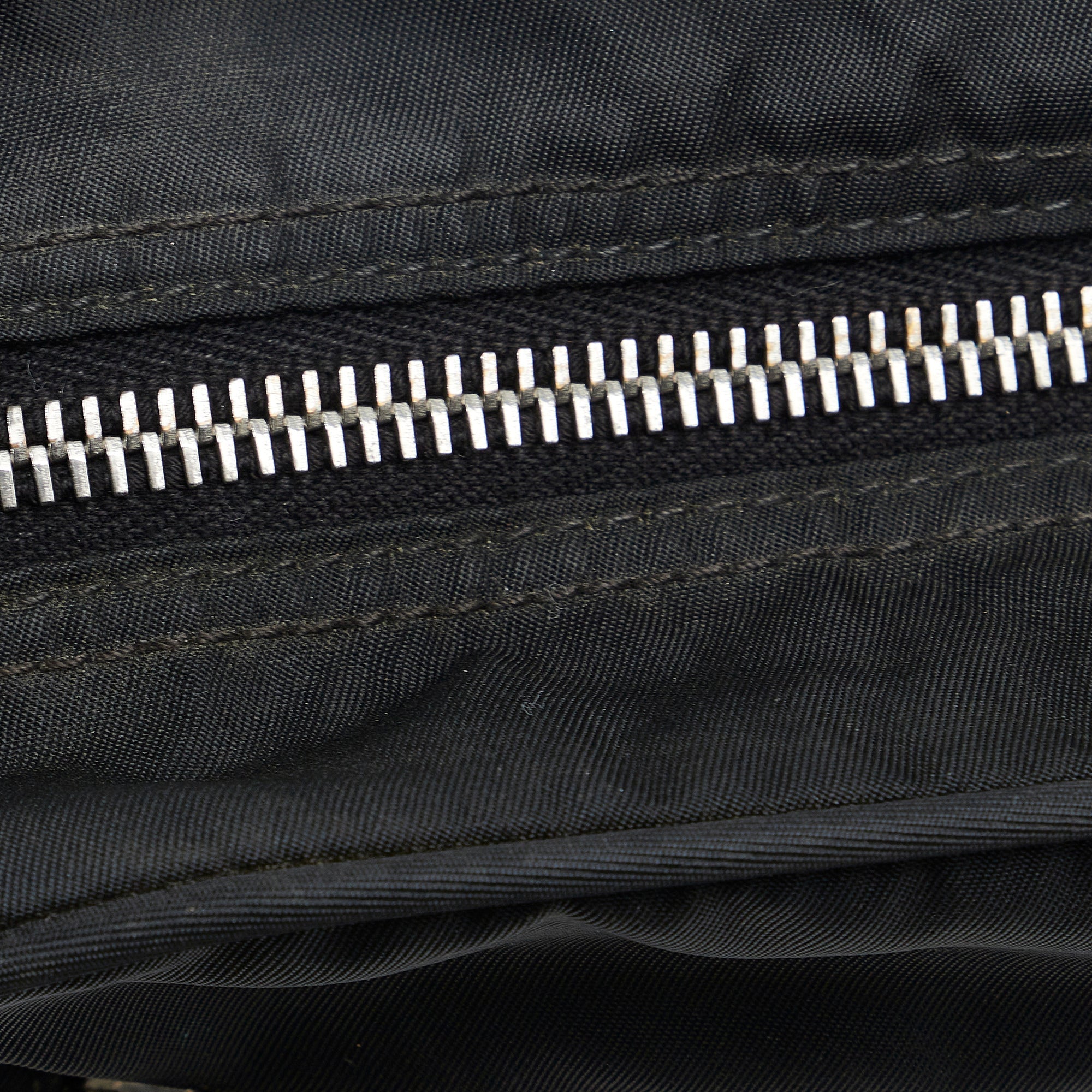 This cool Prada Tessuto was made of trendy black nylon. The Bag is comfortably worn crossbody. The silver details give the Bag that certain something. On the front has an additional zippered compartment.