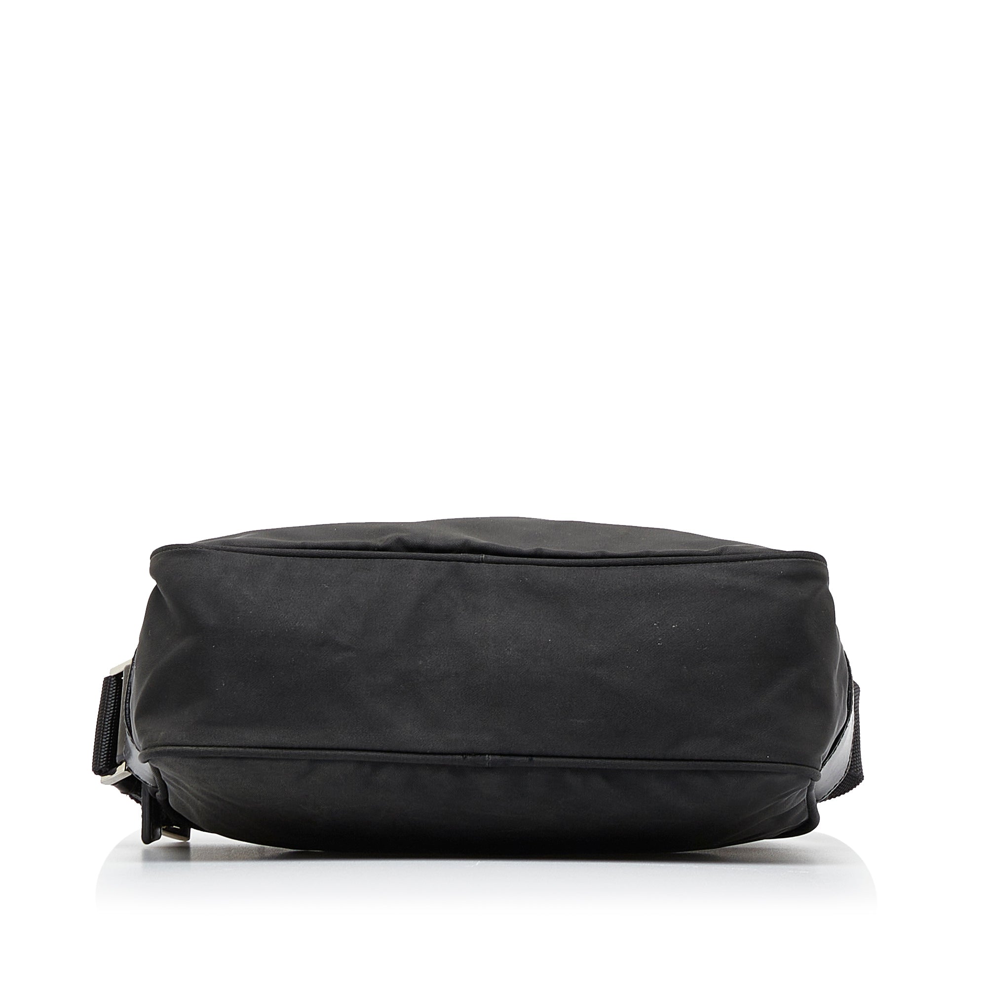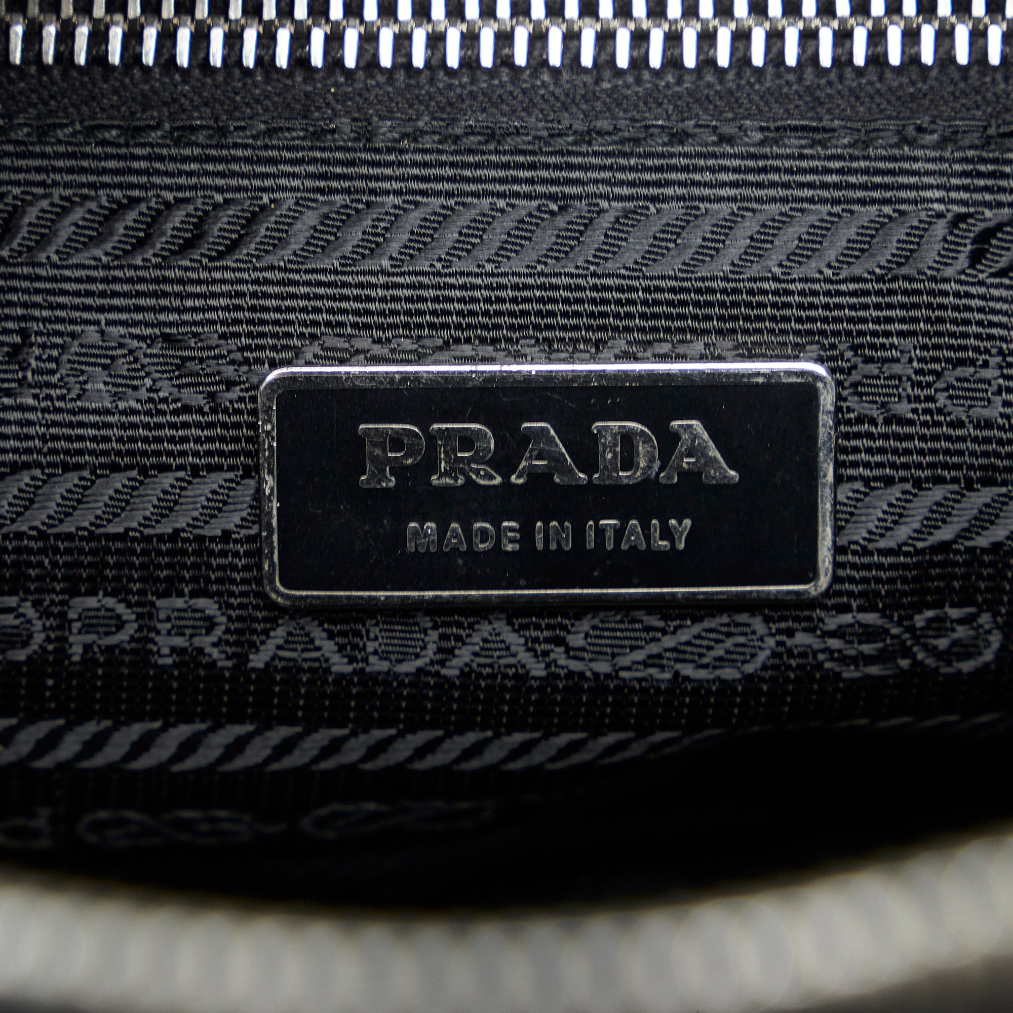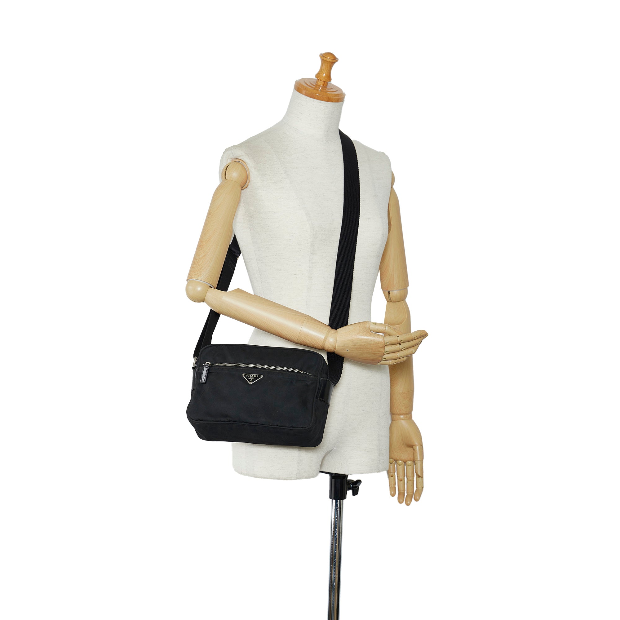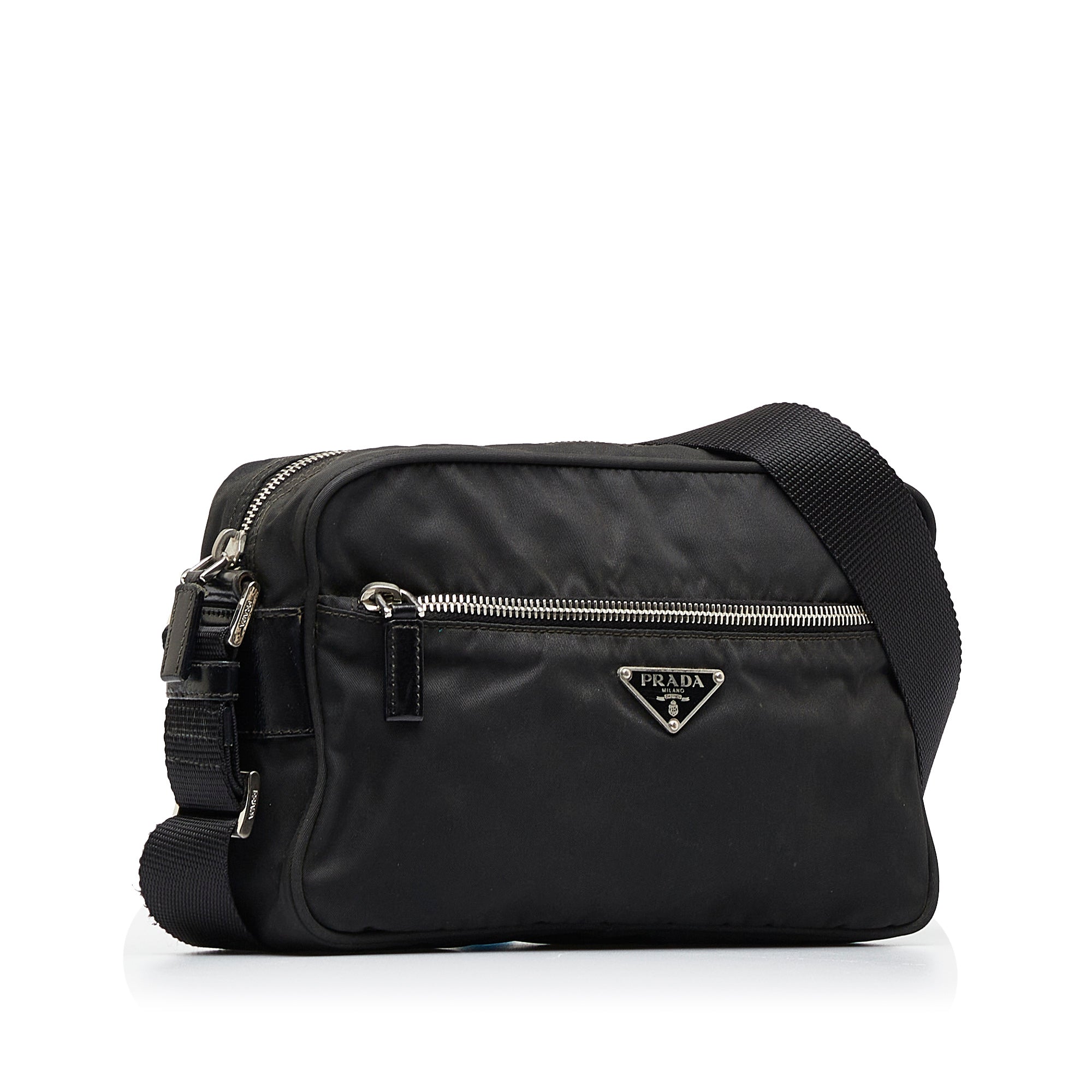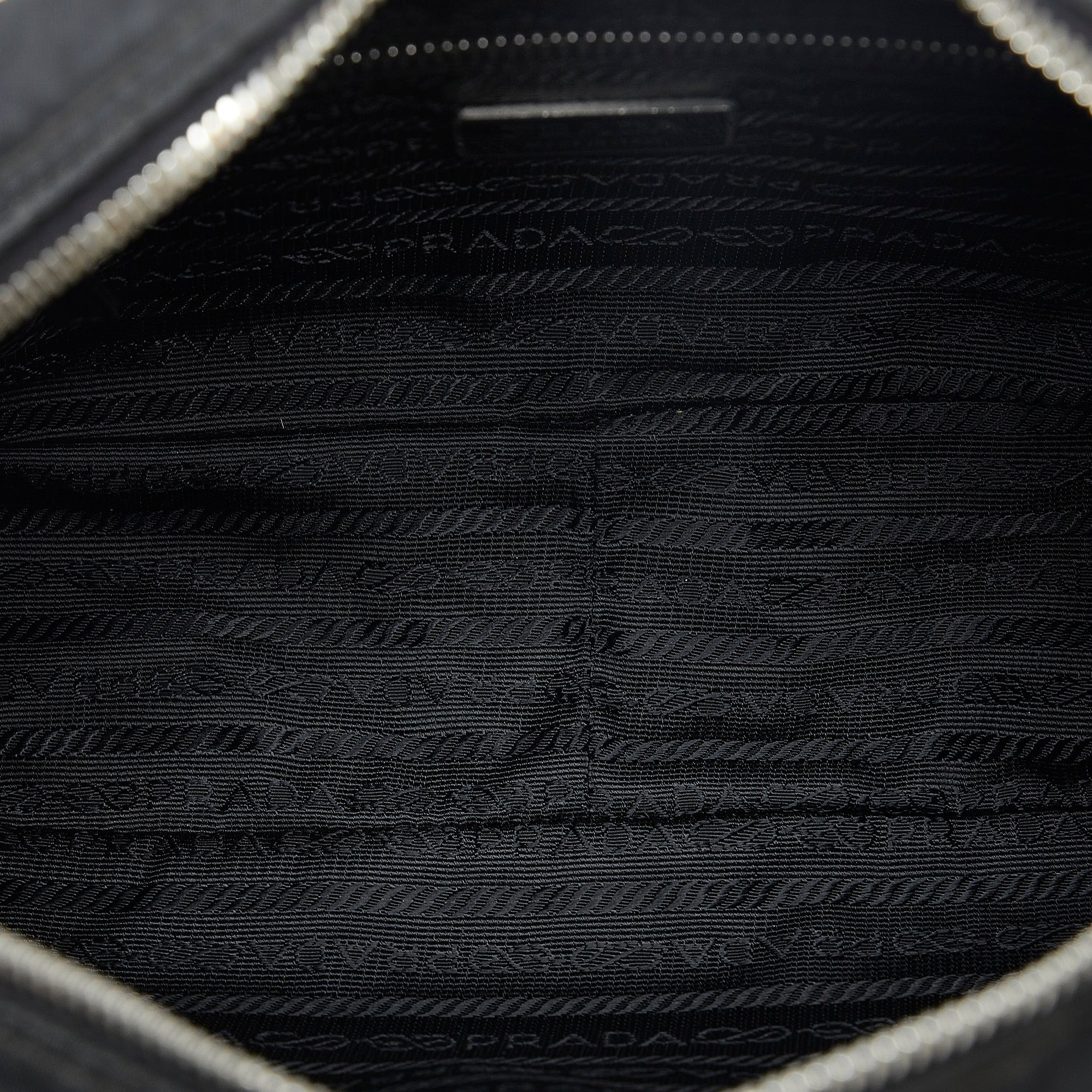 This cool Prada Tessuto was made of trendy black nylon. The Bag is comfortably worn crossbody. The silver details give the Bag that certain something. On the front has an additional zippered compartment.