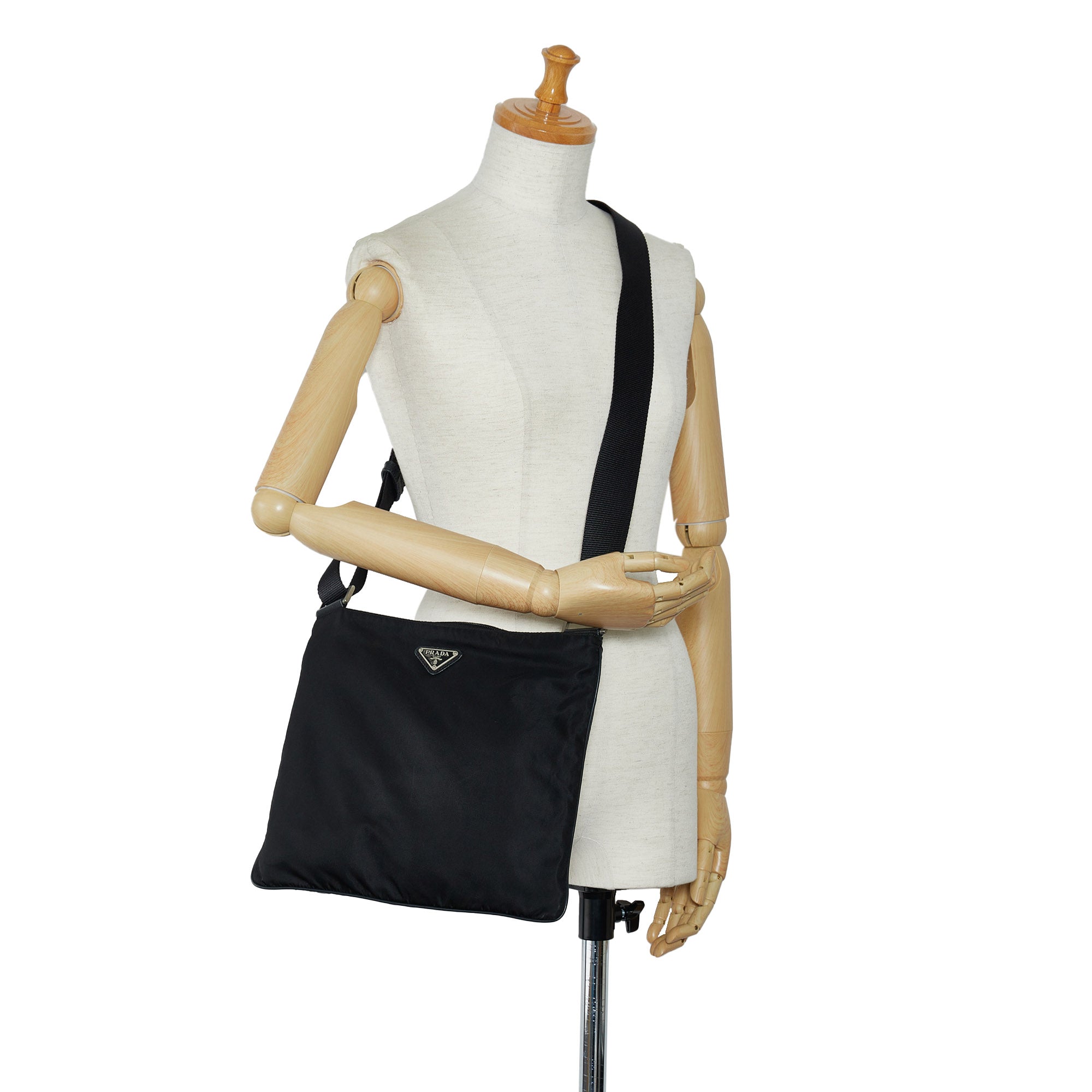 This cool Prada Tessuto is made of trendy black nylon. The Bag can be worn comfortably crossbody thanks to the adjustable strap. The silver details give the Bag that certain something. The Bag has a zipper on the top and a zipper pocket on the inside.