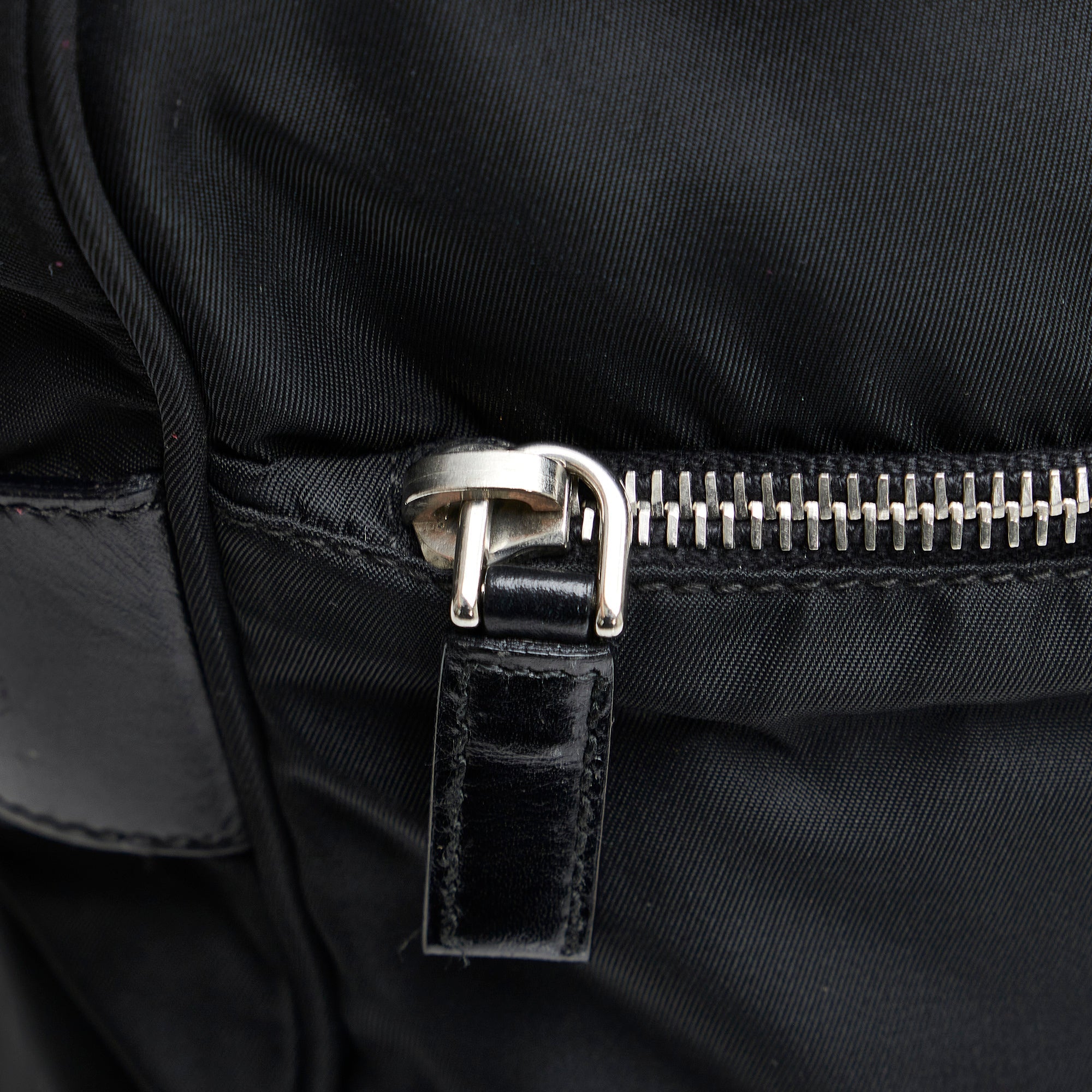 This cool Prada Tessuto was made of trendy black nylon. The Bag is comfortably worn crossbody. The silver details give the Bag that certain something. On the front has an additional zippered compartment.