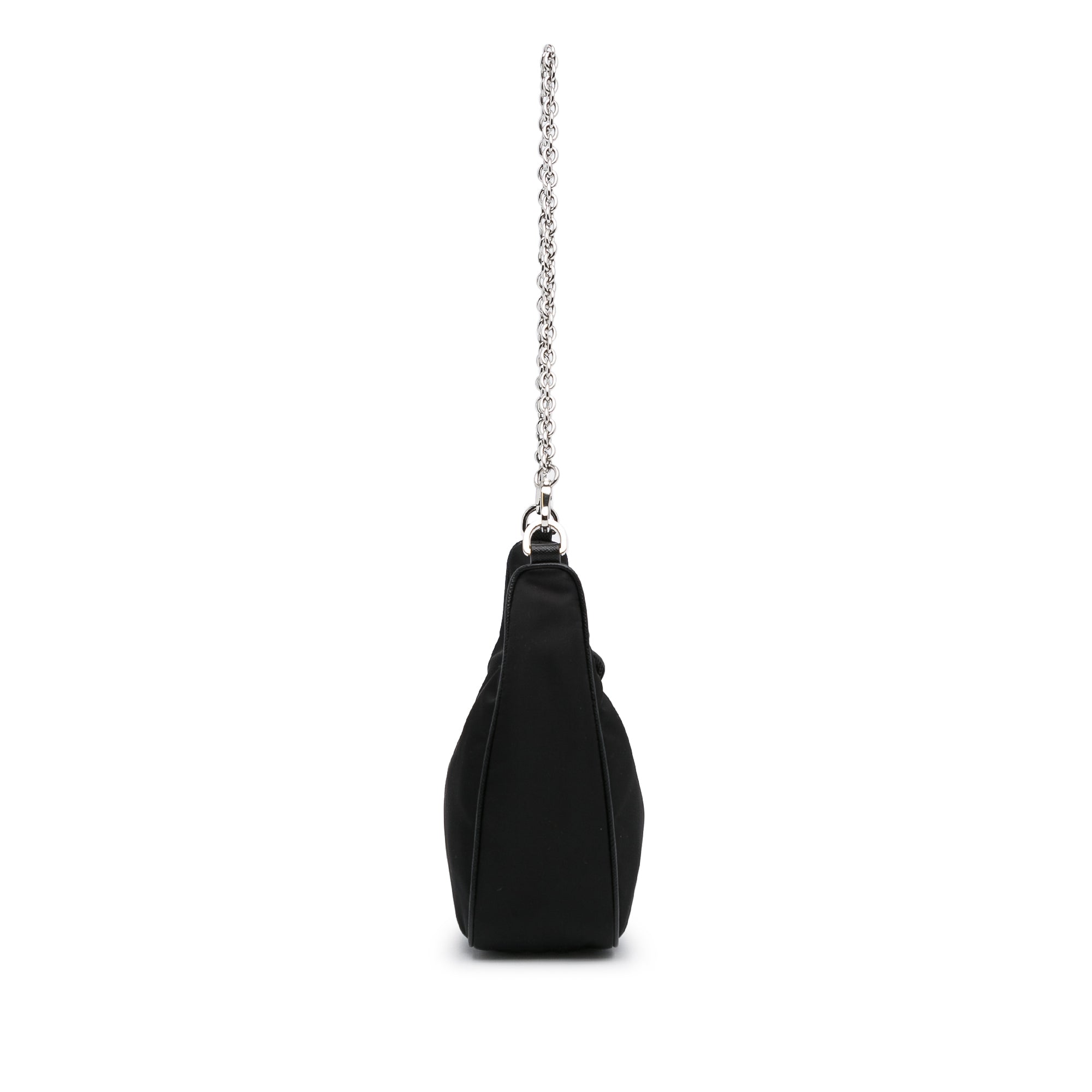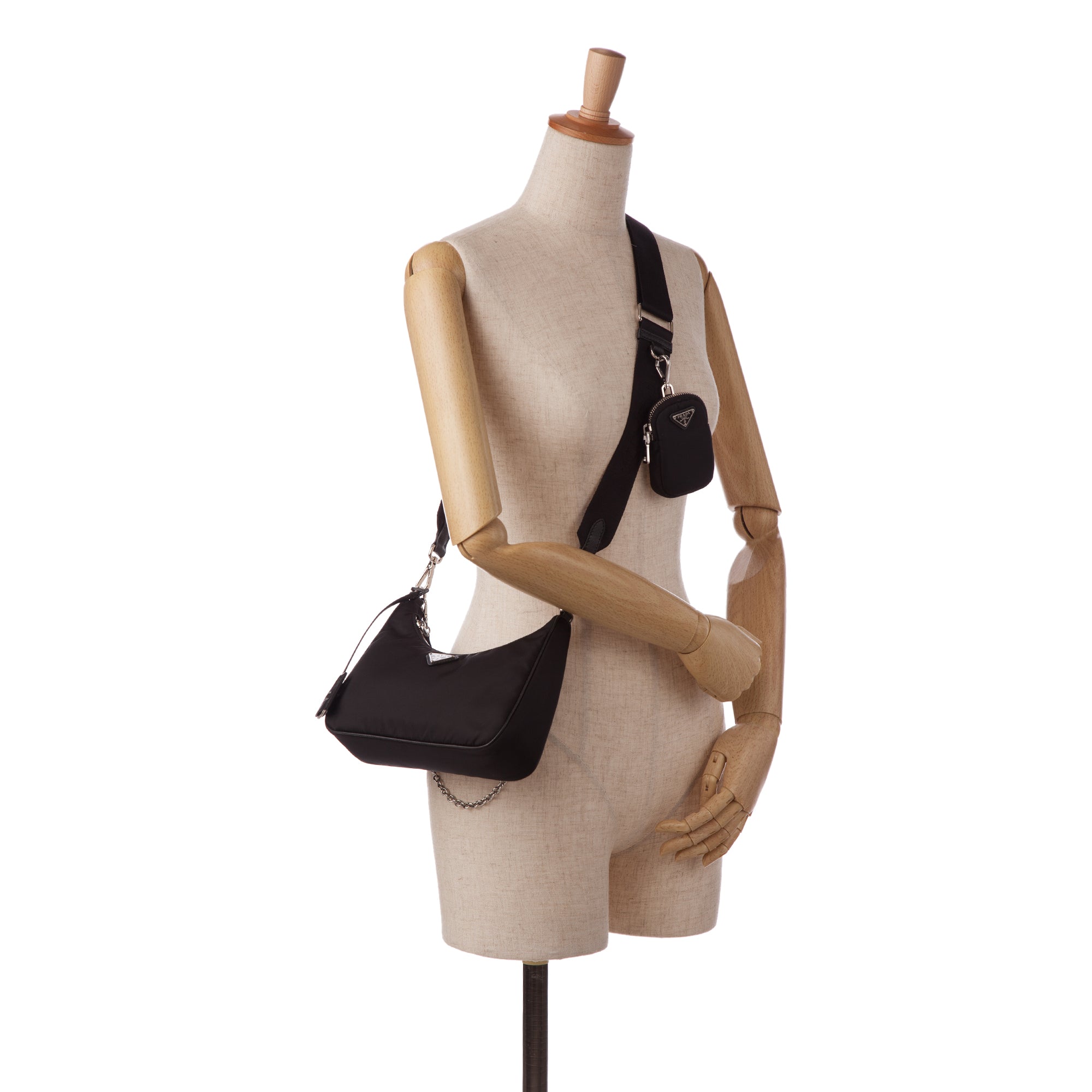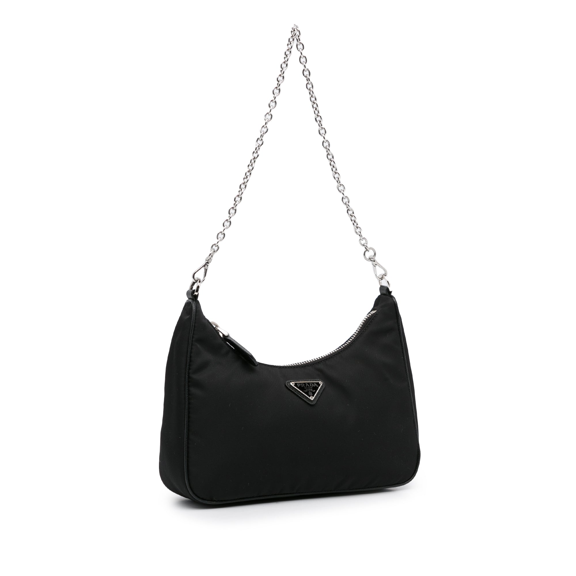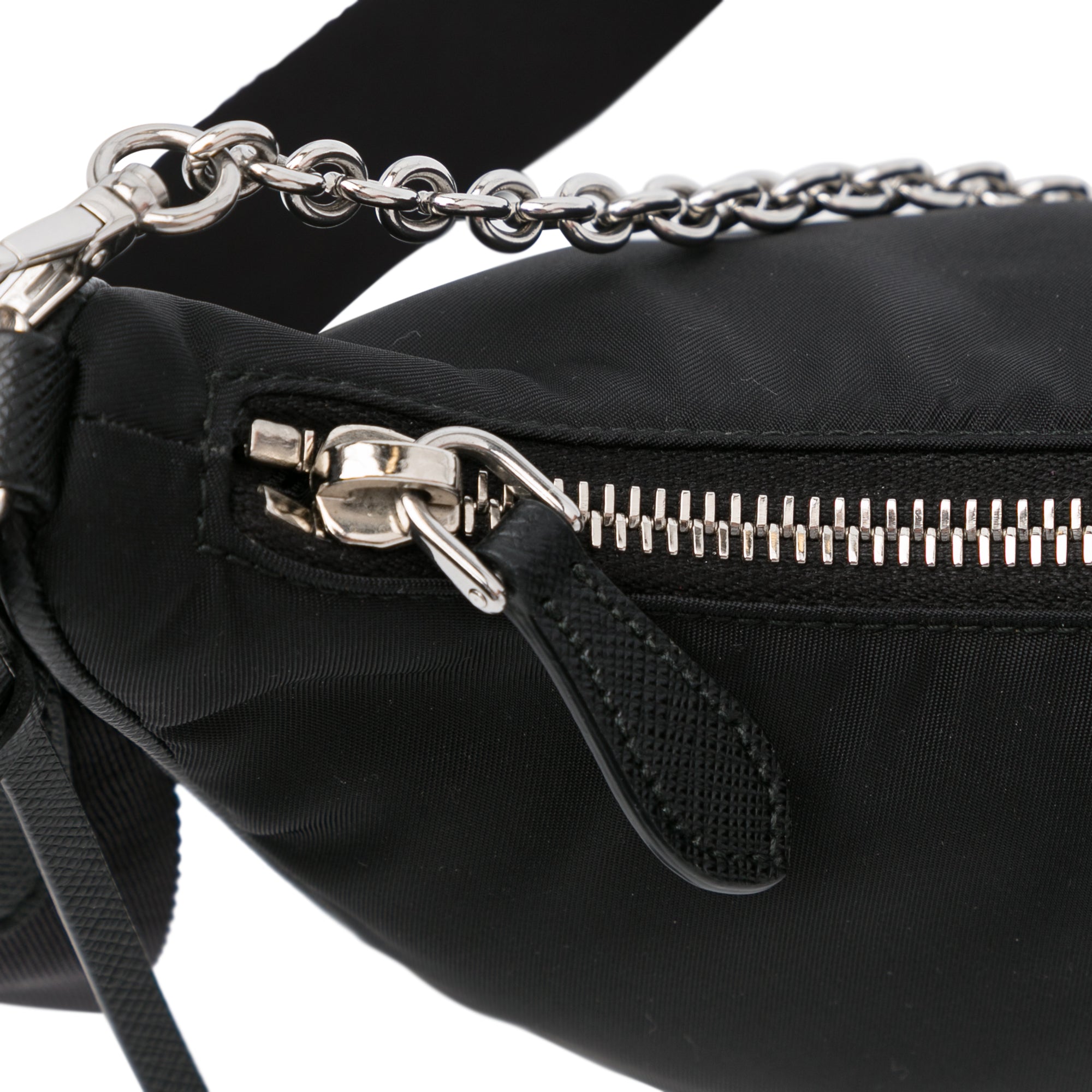 The bags from Prada’s Re-Edition collection revisit the designs of Prada’s Tessuto bags from the 2000s. This Tessuto Re-Edition 2005 Bag features a silver chain strap for close carry on the shoulder or in the hand. Likewise, the Bag comes with a wide canvas shoulder strap. With this the Bag be worn comfortably crossbody. In the interior has the Bag has a zippered compartment. The Bag comes with a small pouch that can be attached to the strap. Very cool.