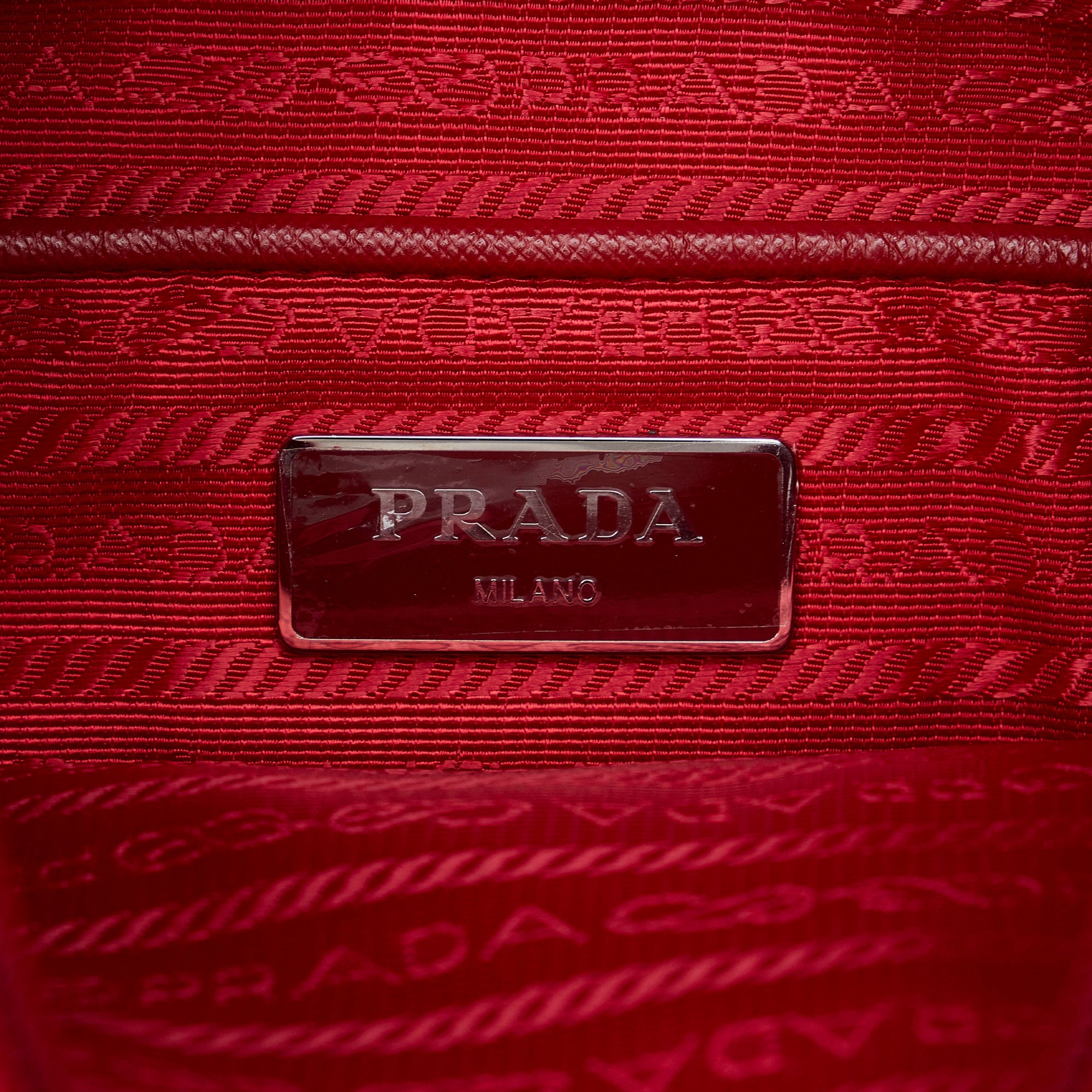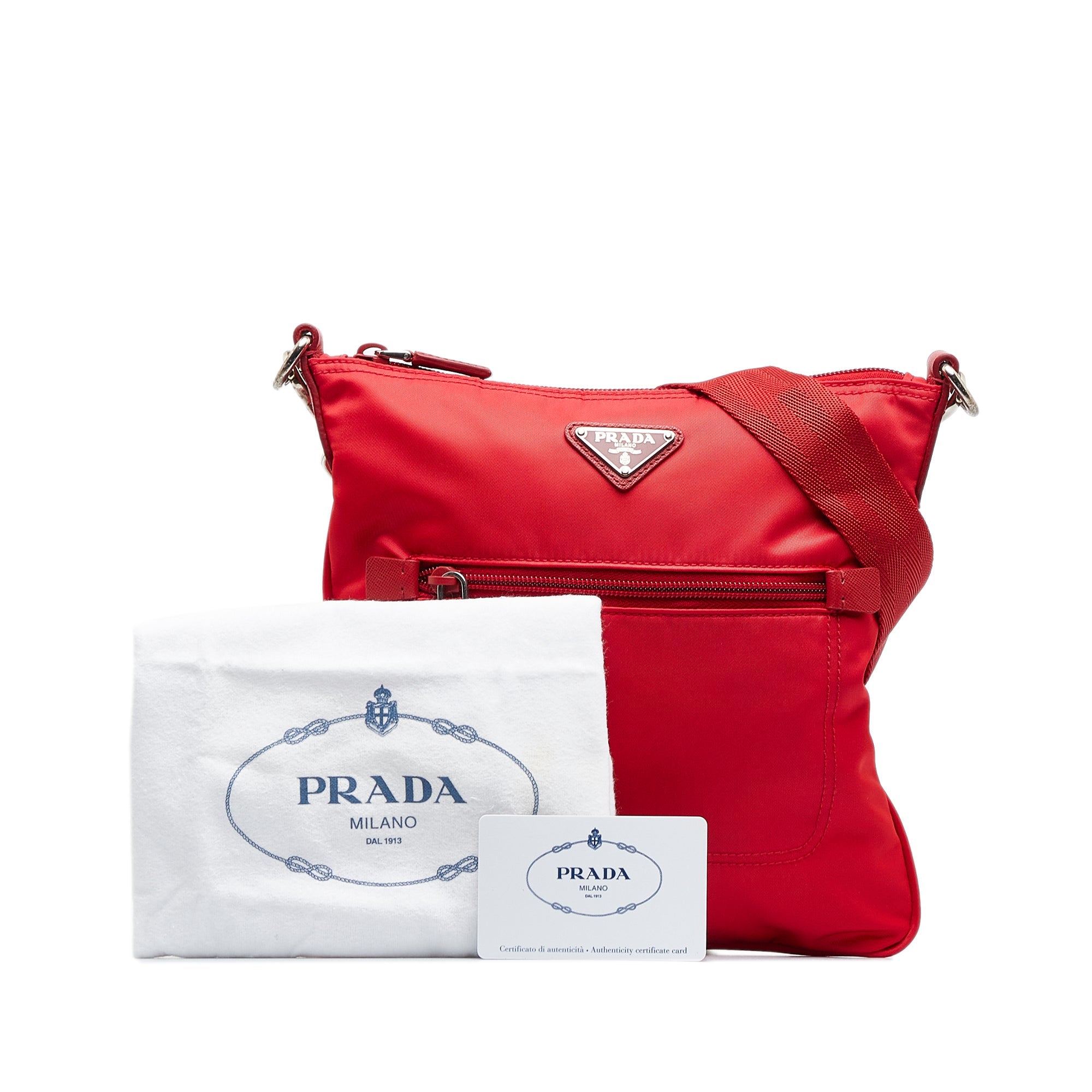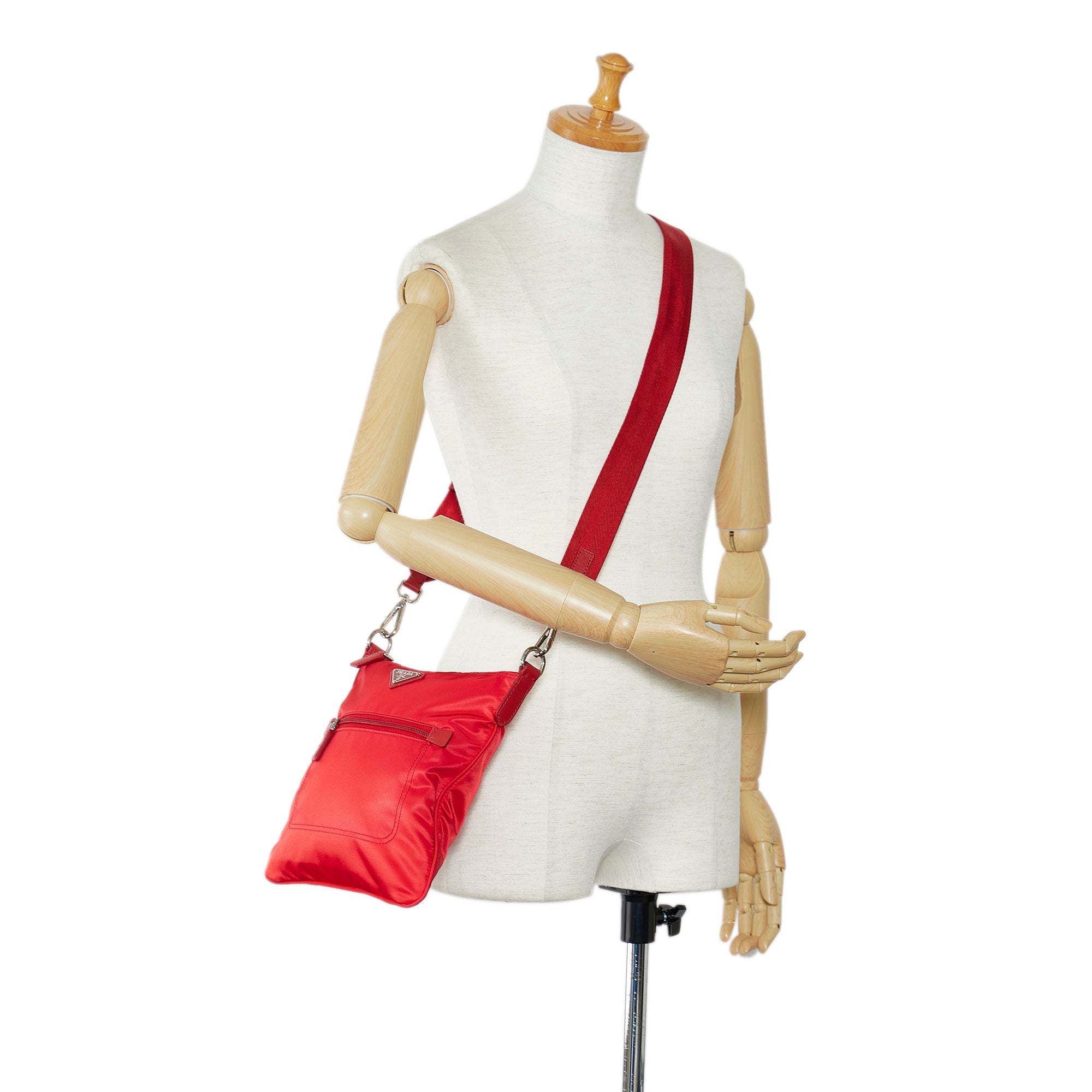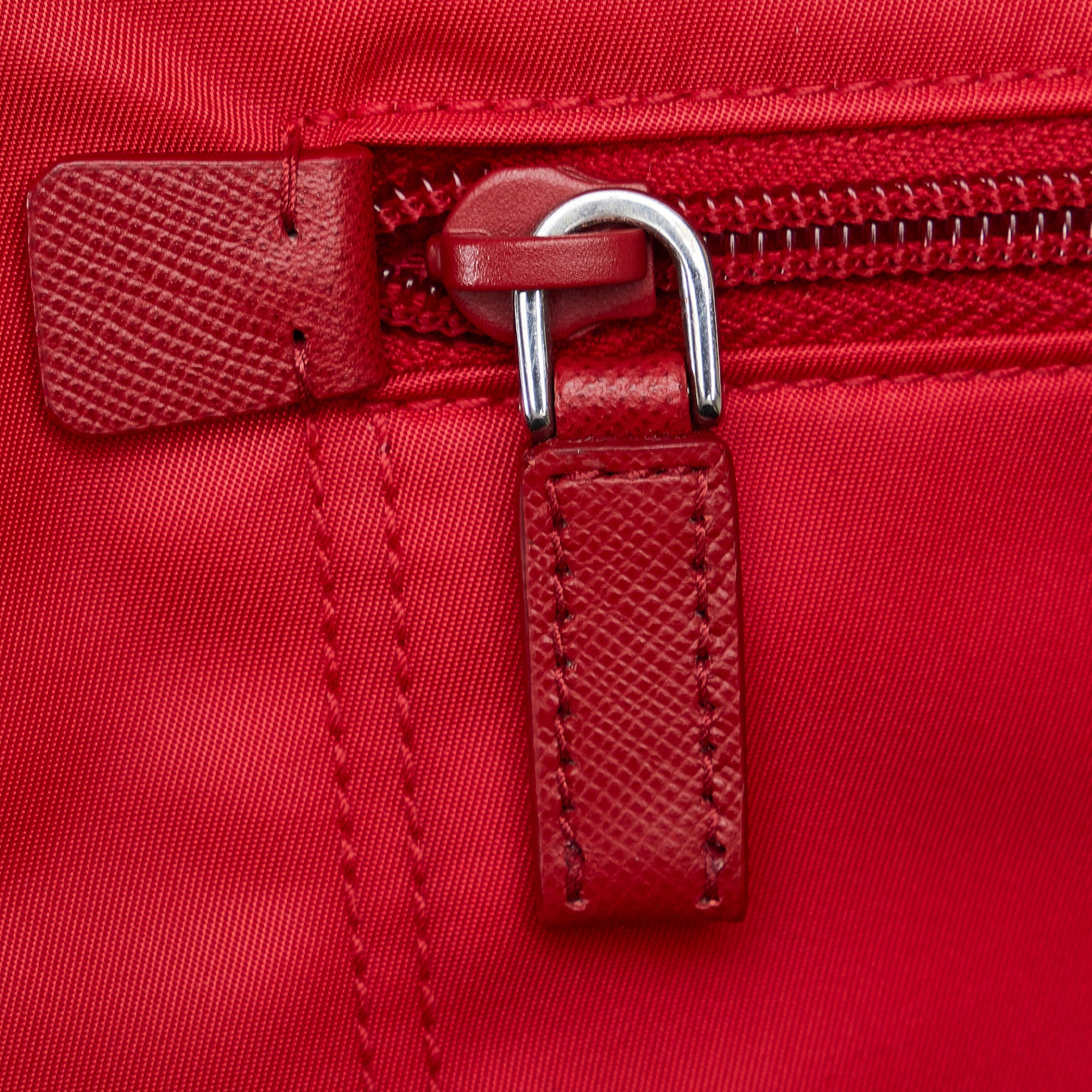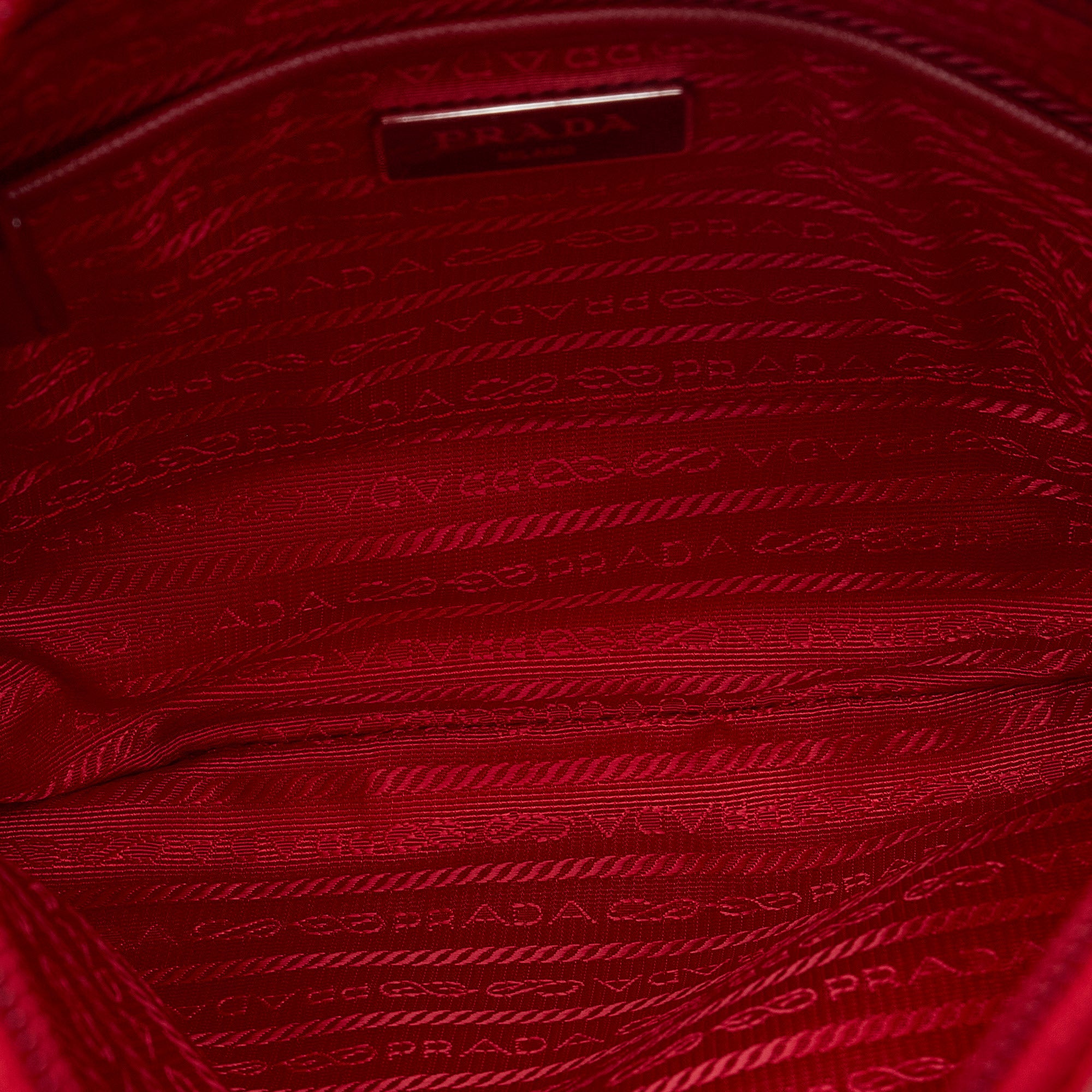 This cool Prada Tessuto was made of trendy red nylon. The Bag is comfortably worn crossbody thanks to the shoulder strap. The silver details give the Bag that certain something. On the front is an additional compartment with zipper.
