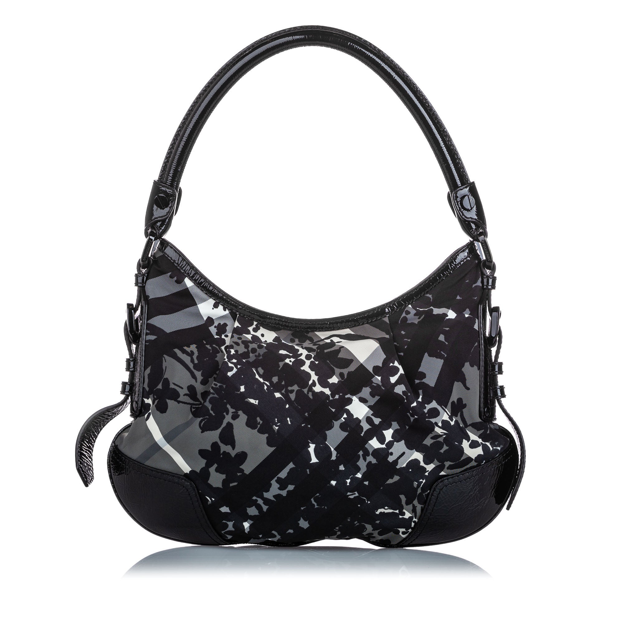 Pre-Loved Burberry Black Nylon Fabric Floral Beat Check Foley Hobo Bag Italy