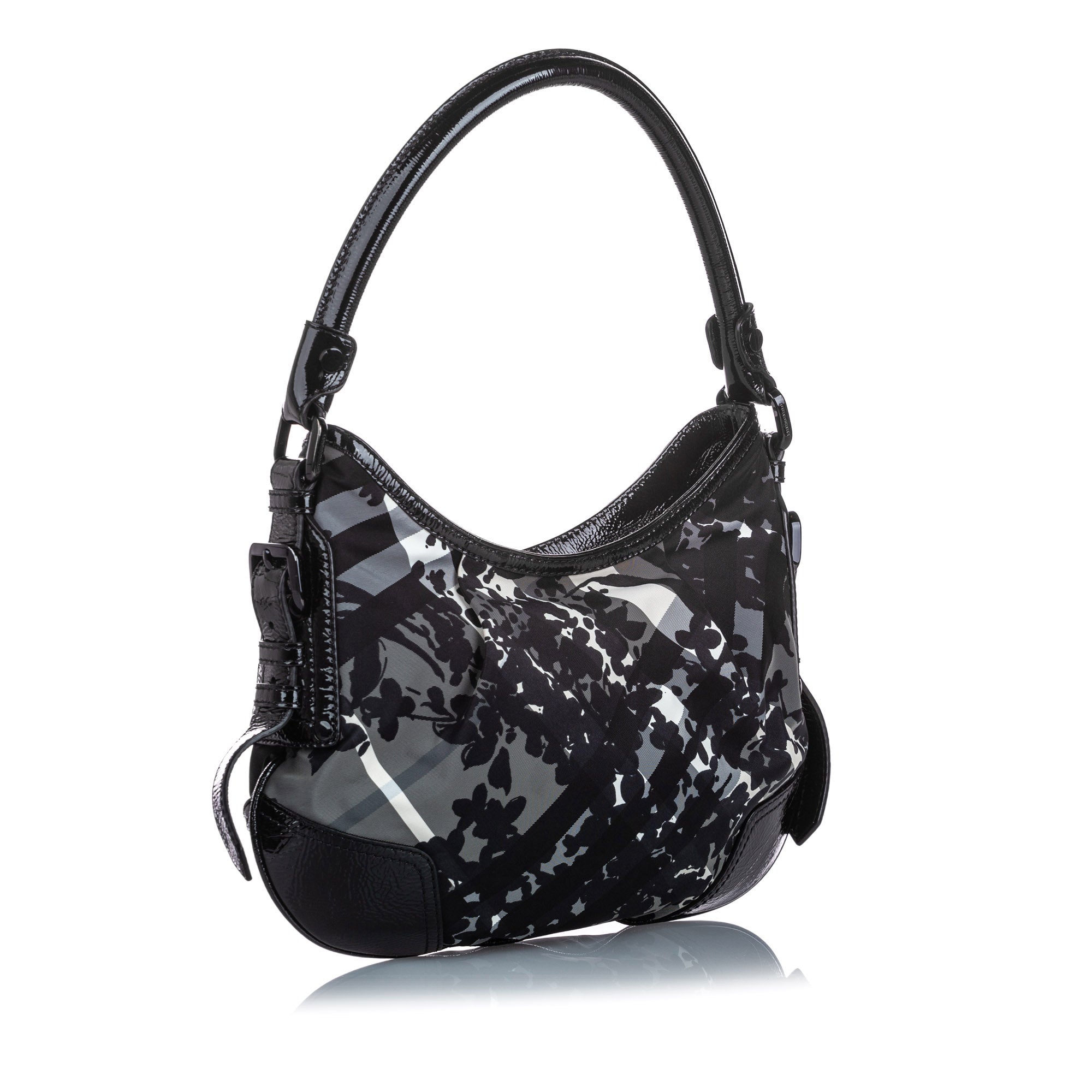/ Pre-Loved Burberry Black Nylon Fabric Floral Beat Check Foley Hobo Bag Italy