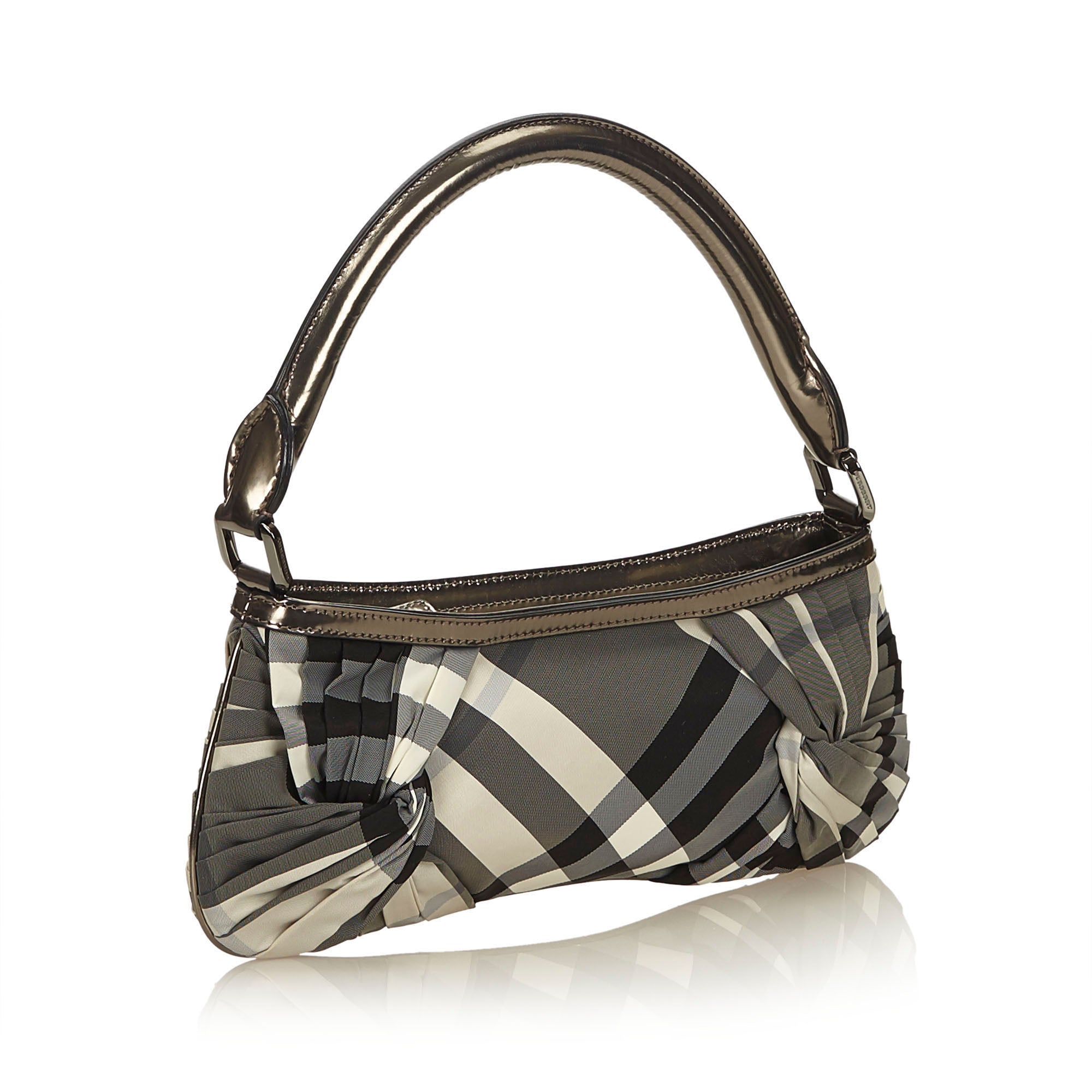 / Pre-Loved Burberry Black Nylon Fabric Plaid Baguette United Kingdom