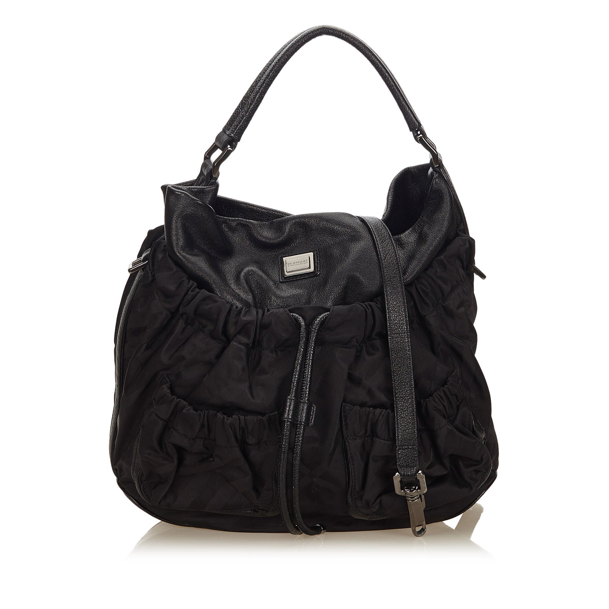/ Pre-Loved Burberry Black Nylon Fabric Plaid Hobo UNITED KINGDOM