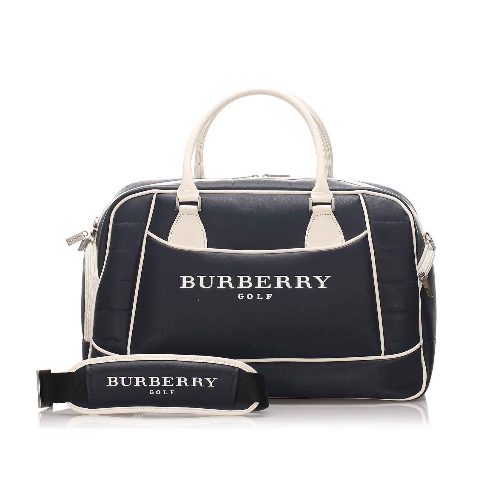 Pre-Loved Burberry Blue Dark Calf Leather Logo Travel Bag United Kingdom quantity
