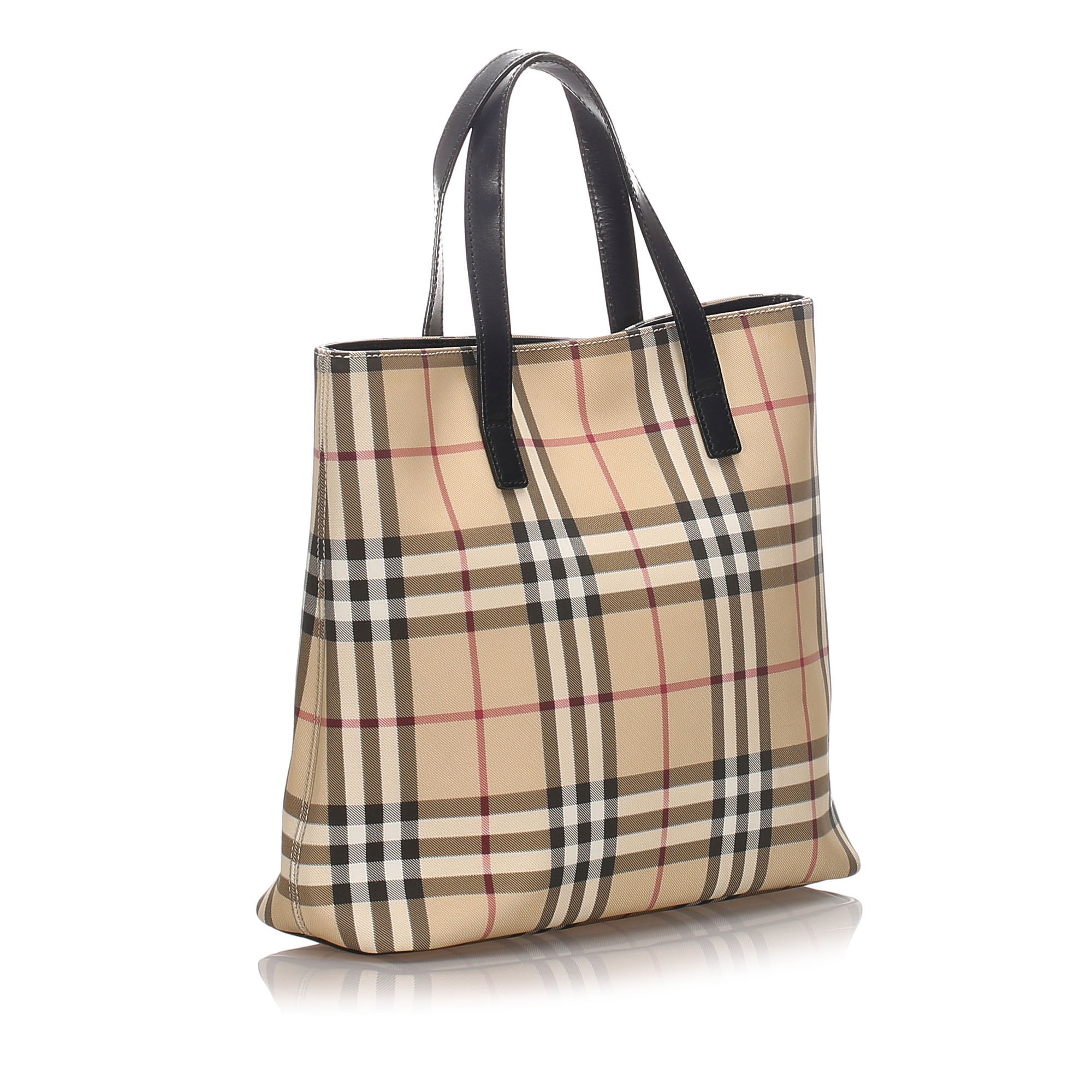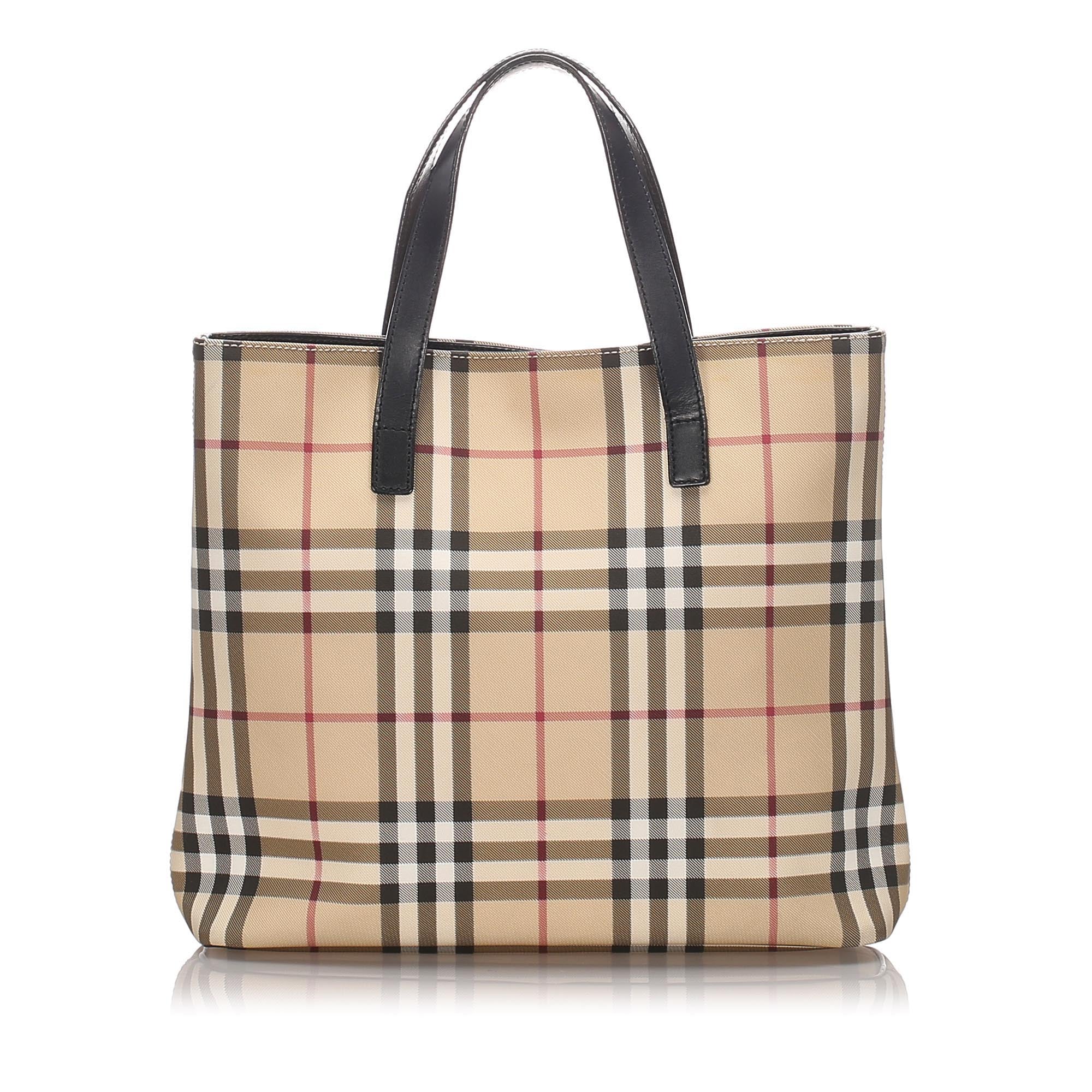 / Pre-Loved Burberry Brown Beige Canvas Fabric House Check Tote Bag United Kingdom
