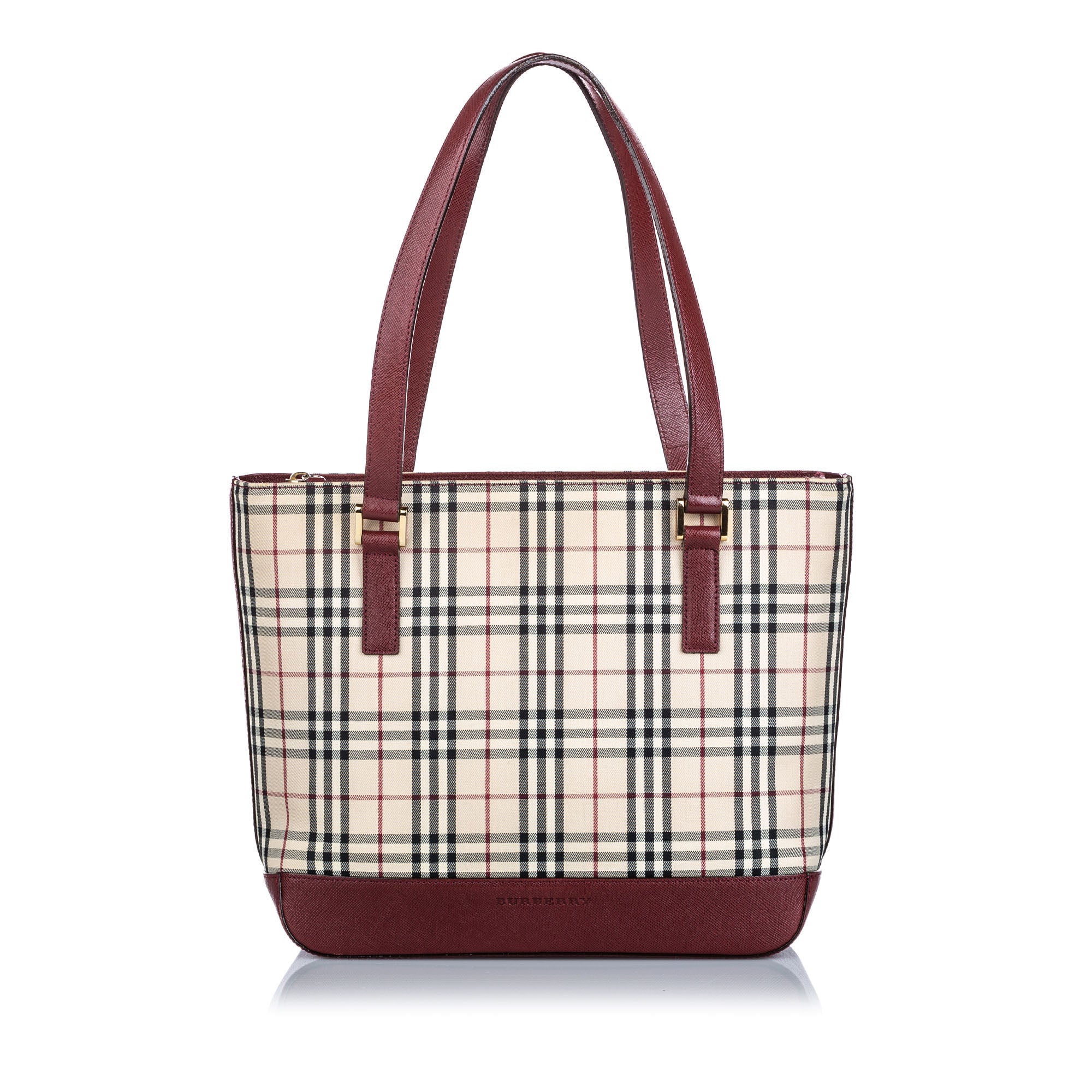 / Pre-Loved Burberry Brown Beige Canvas Fabric House Check Tote Bag UNITED KINGDOM