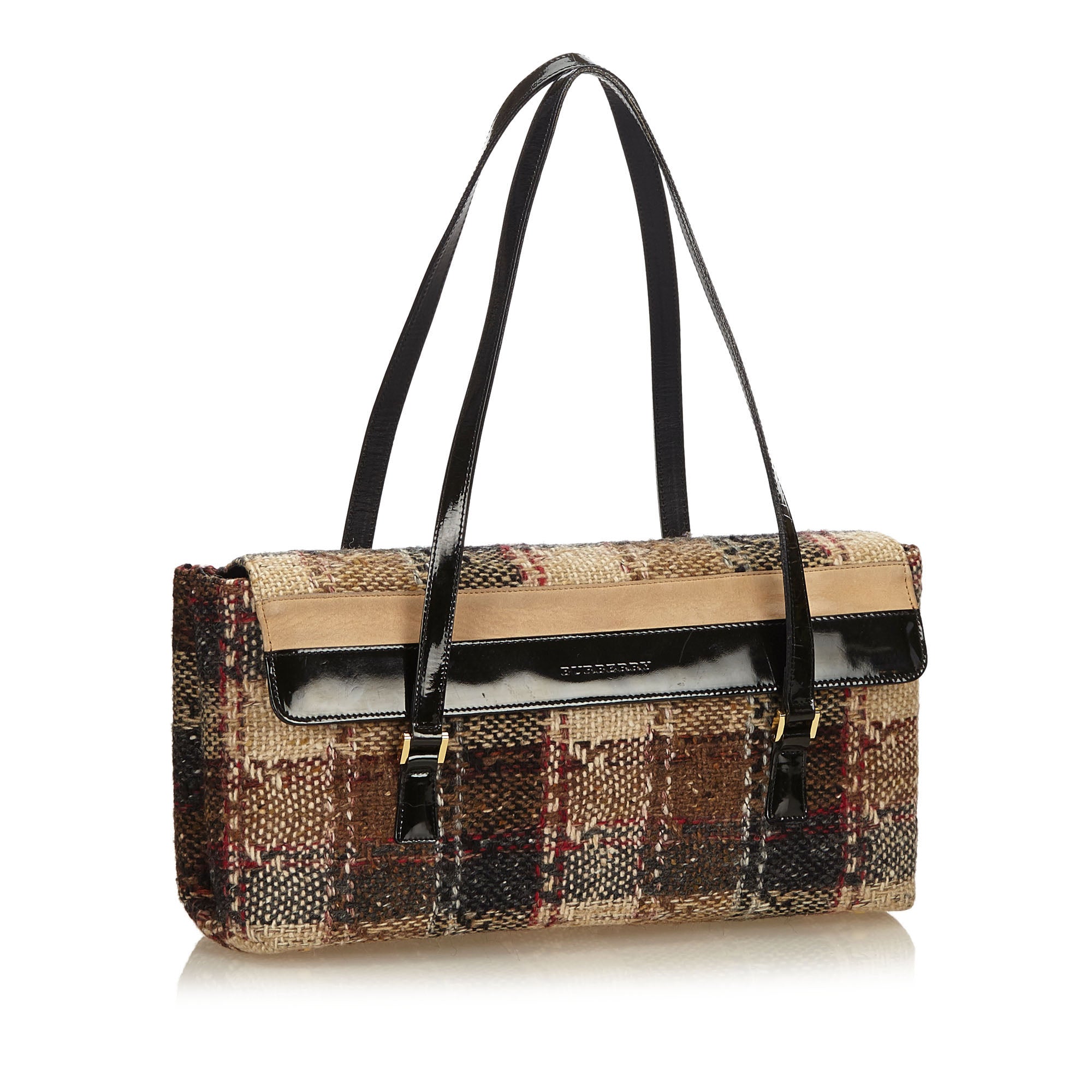 / Pre-Loved Burberry Brown Dark Wool Fabric Plaid Shoulder Bag United Kingdom