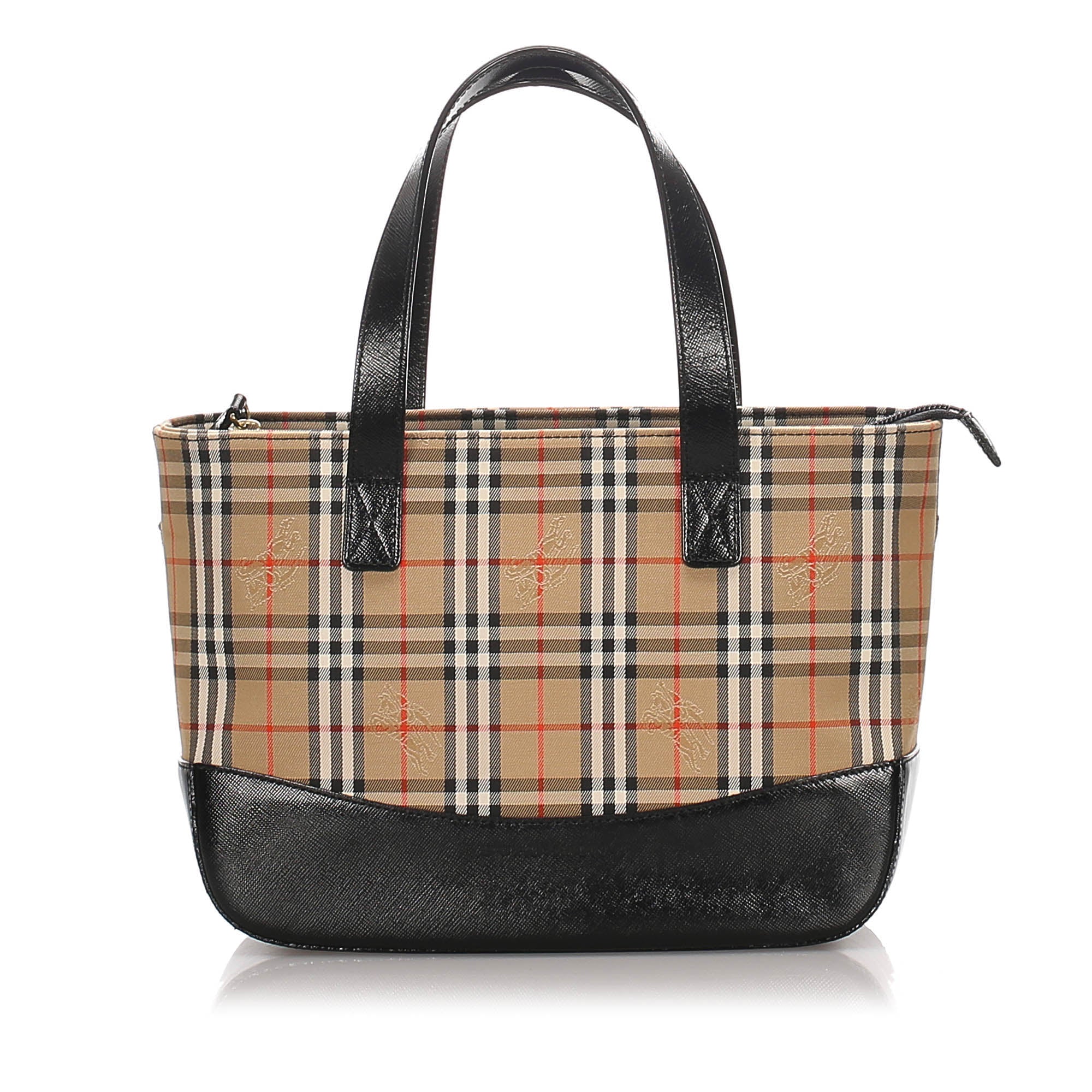 Pre-Loved Burberry Brown Haymarket Check Canvas Tote Bag United Kingdom quantity