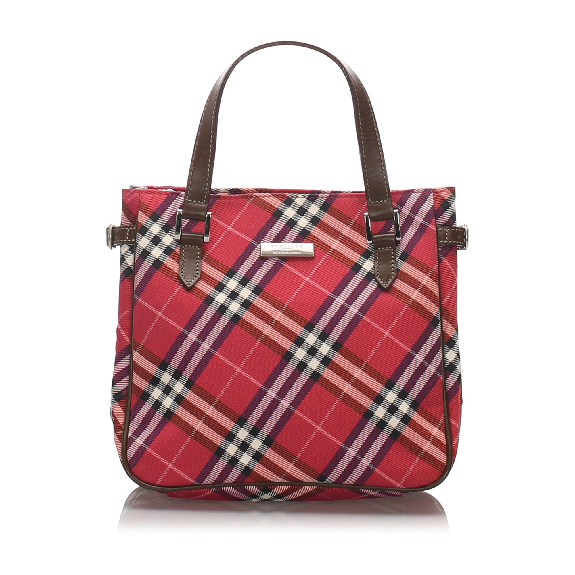 / Pre-Loved Burberry Red Wool Fabric Nova Check Handbag United Kingdom