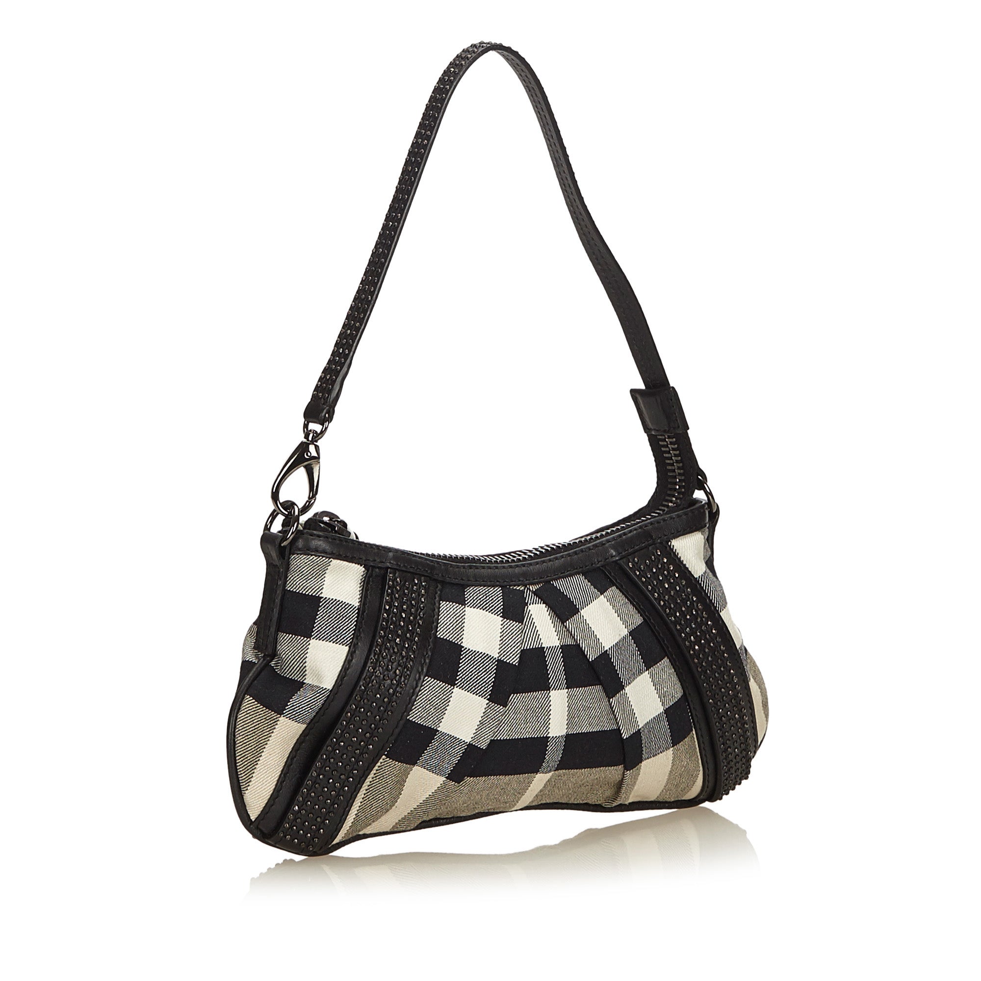 / Pre-Loved Burberry White Ivory Jacquard Fabric Plaid Baguette United Kingdom