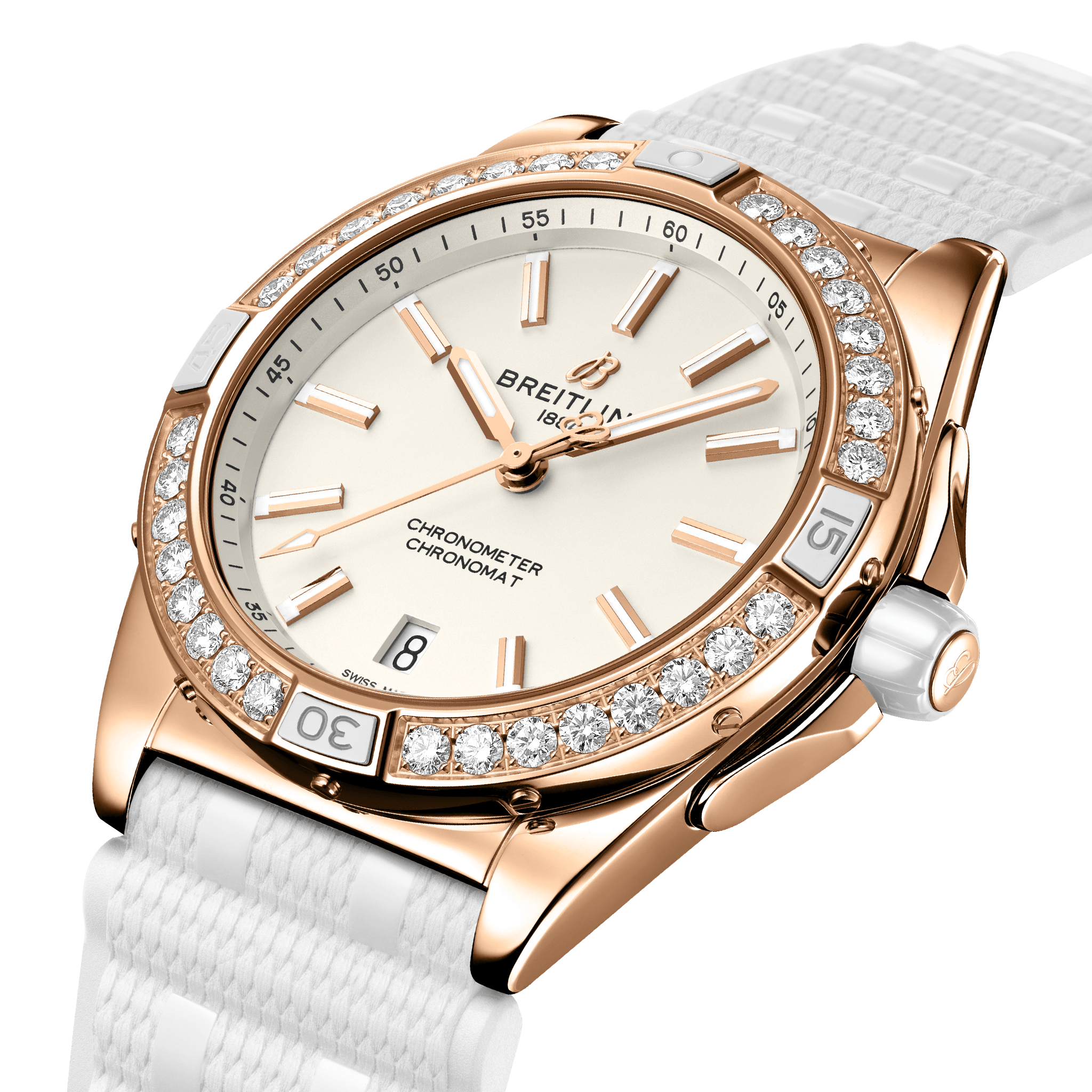 The Super Chronomat Automatic 38 Origins is designed to make a statement, whether paired with a power suit or a t-shirt and jeans. You can tell a Super from the rest of the Chronomat family by the ceramic rider tabs and crown, and the rubber rouleaux bracelet only available with this supercharged line. But aside from its enhanced presence, this watch has another important statement to make. It’s the beginning of our mission to do better. We drive change by creating beautiful products and experiences with better materials, better manufacturing and better packaging. The Super Chronomat 38 Origins is a milestone on that journey. This watch features small-scale gold and lab-grown diamonds. These precious materials are traceable from their origins all the way to the watch on your wrist—and detailed in a provenance record that comes with your watch in a blockchain-backed NFT. Our close collaboration with partners along the supply chain means that we can continually improve the social and environmental impact of our products, while also providing direct support to the communities we work with. With the Super Chronomat Automatic 38 Origins, we are setting a course on our mission to do better. And this is just the beginning.