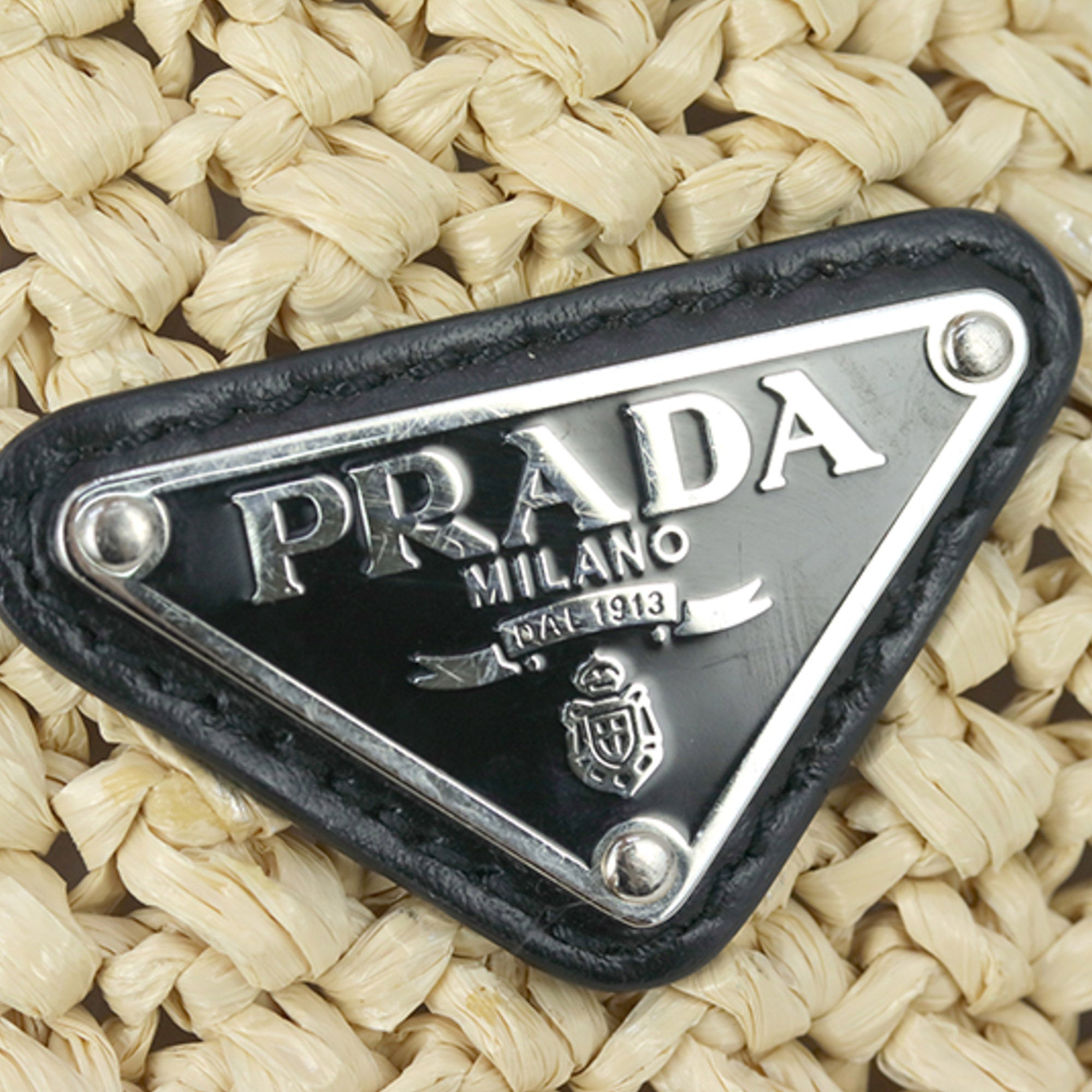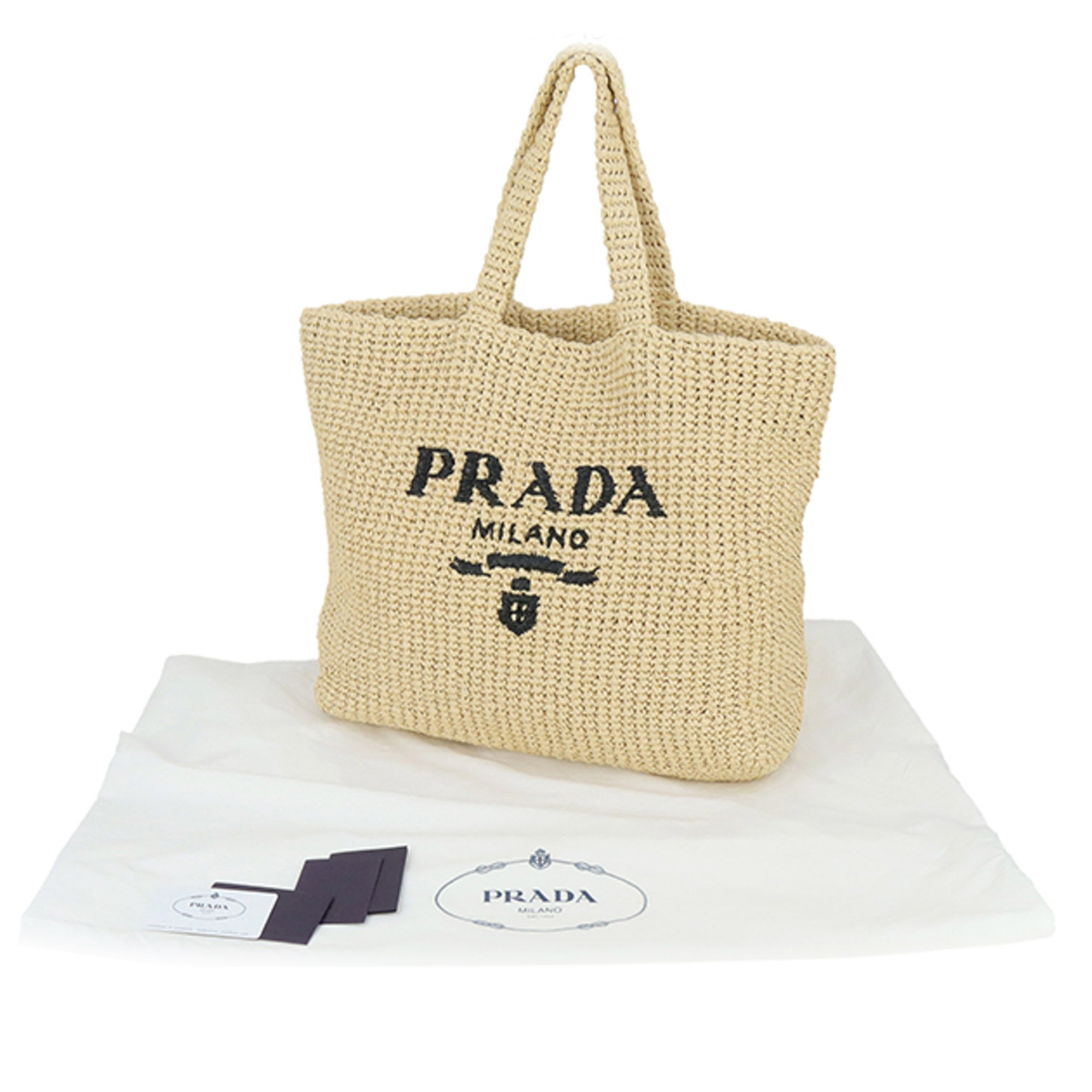 Prada logo Tote Bag Brown Raffia