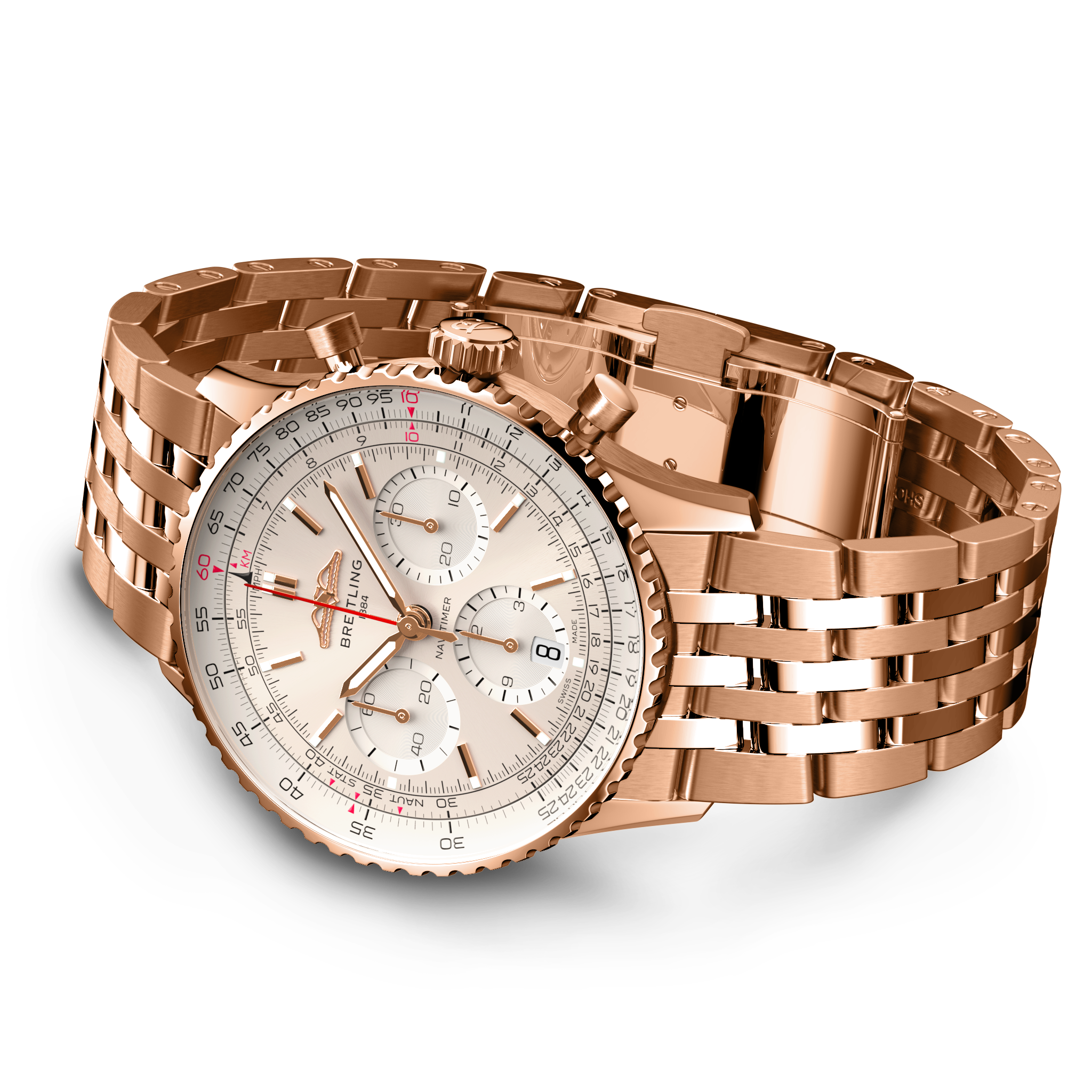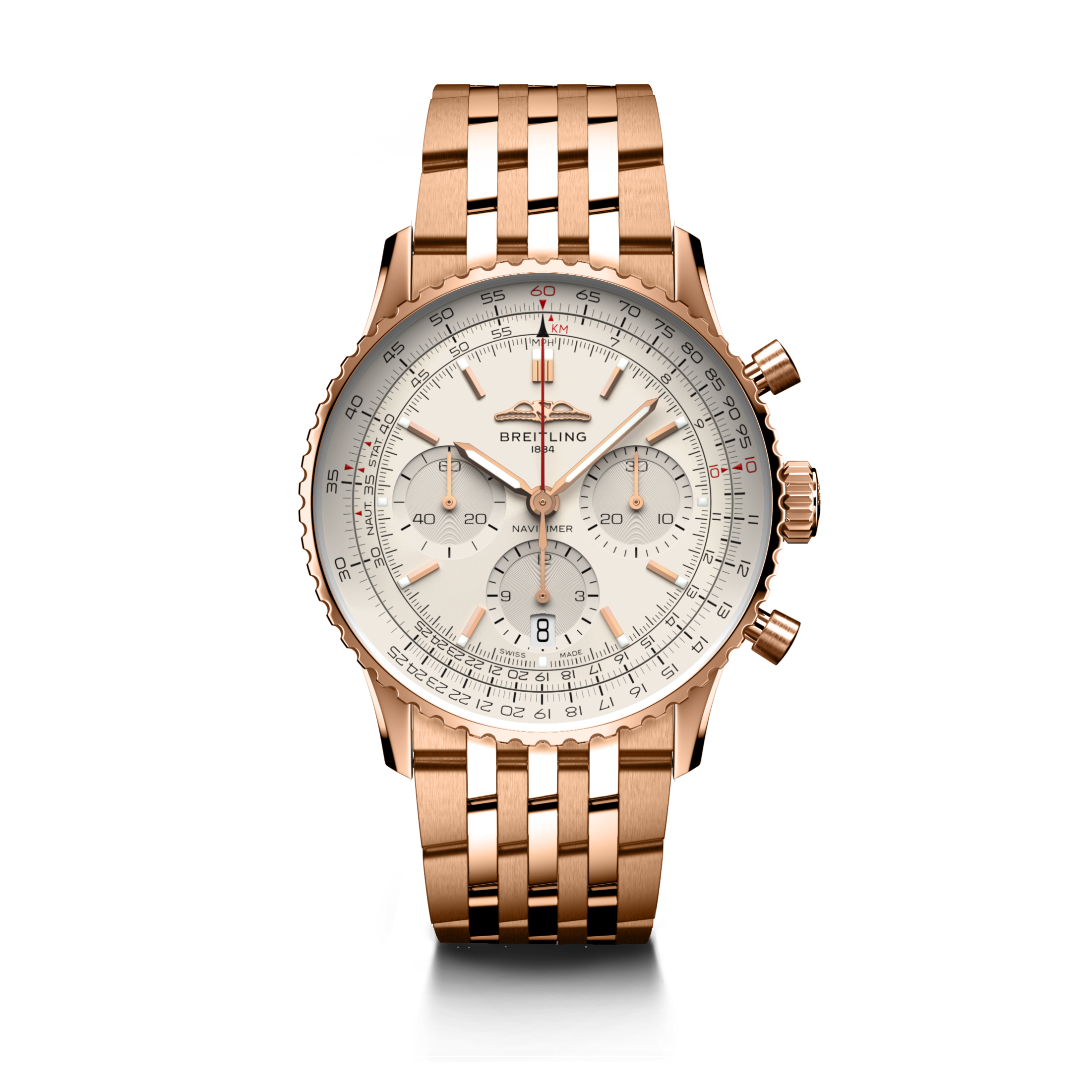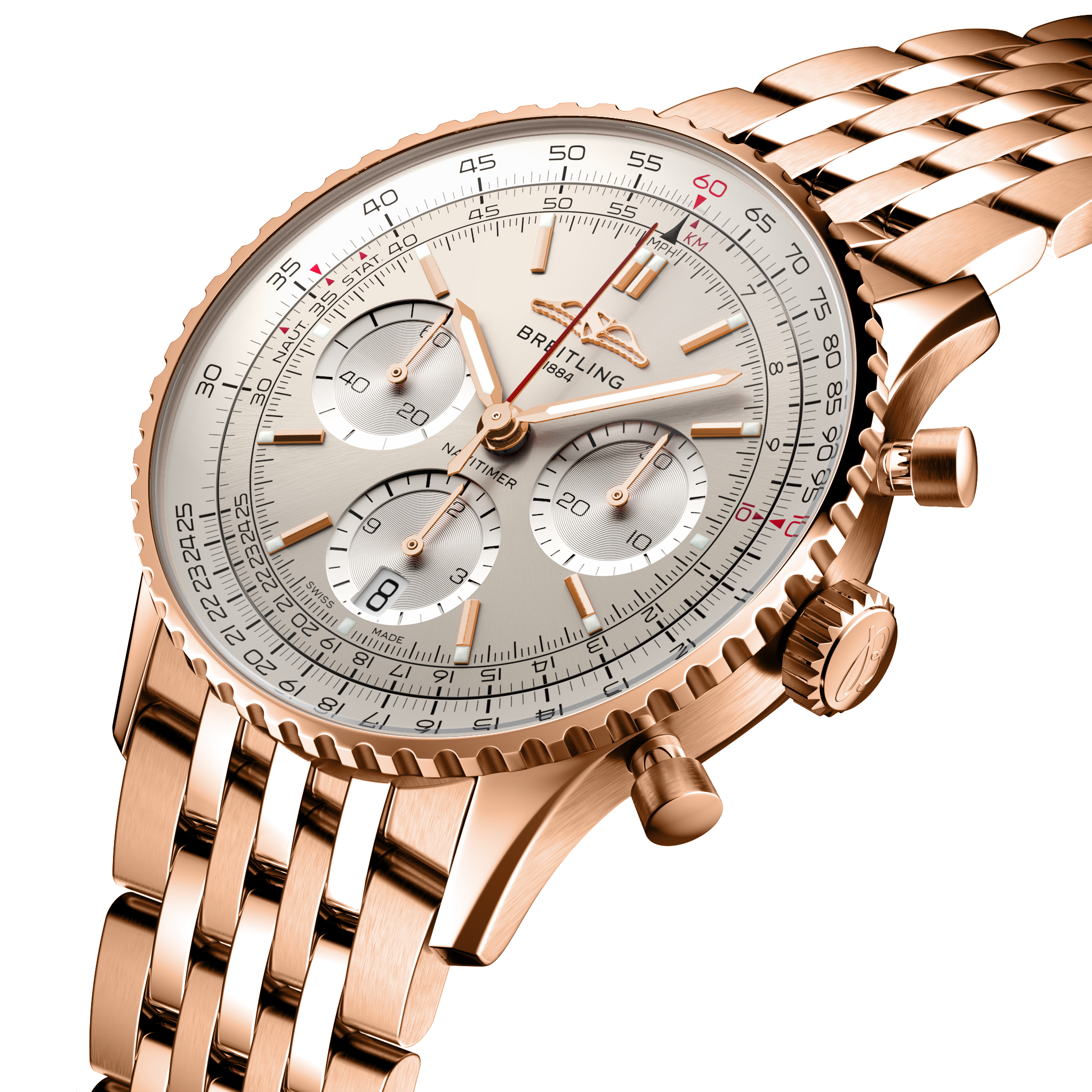 Breitling’s iconic pilot’s chronograph – for the journey. In 1952, Willy Breitling developed a wrist-worn chronograph with a circular slide rule that would allow pilots to perform all necessary flight calculations. Two years later, the Aircraft Owners and Pilots Association (AOPA) announced the design as its official timepiece. The “navigation timer” – or Navitimer – was born. The AOPA was (and remains) the largest pilots’ club in the world, counting nearly every US aviator among its ranks. As the defacto pilot’s watch throughout the glory days of civil aviation, the Navitimer was worn by airline captains and aircraft enthusiasts. It even made its way into space on the wrist of astronaut Scott Carpenter in 1962. And it wasn’t only pilots drawn to the watch’s irrepressible aesthetic. Celebrities of the day such as Miles Davis and Serge Gainsbourg were devotees, proving that the Navitimer had style as well as function. There have been many iterations of Breitling’s icon since its debut 70 years ago, but this new Navitimer captures its most classic features, while enhancing them with modern refinements. A flattened slide rule and a domed crystal create the illusion of a sleeker profile. Alternating polished and brushed metal elements give a lustrous, yet understated finish. Most notably, new colors in shades of blue, green and copper, define the updated dial options. And if there is one update sure to spark nostalgia, it’s the return of the AOPA wings to their original position at 12 o’clock. For 70 years, Breitling’s original pilot’s watch has been beloved by aviators and tastemakers in equal measure. Worn by astronauts in space and the biggest stars on earth, it is Breitling’s most iconic timepiece and one of the most recognizable watches of all time.