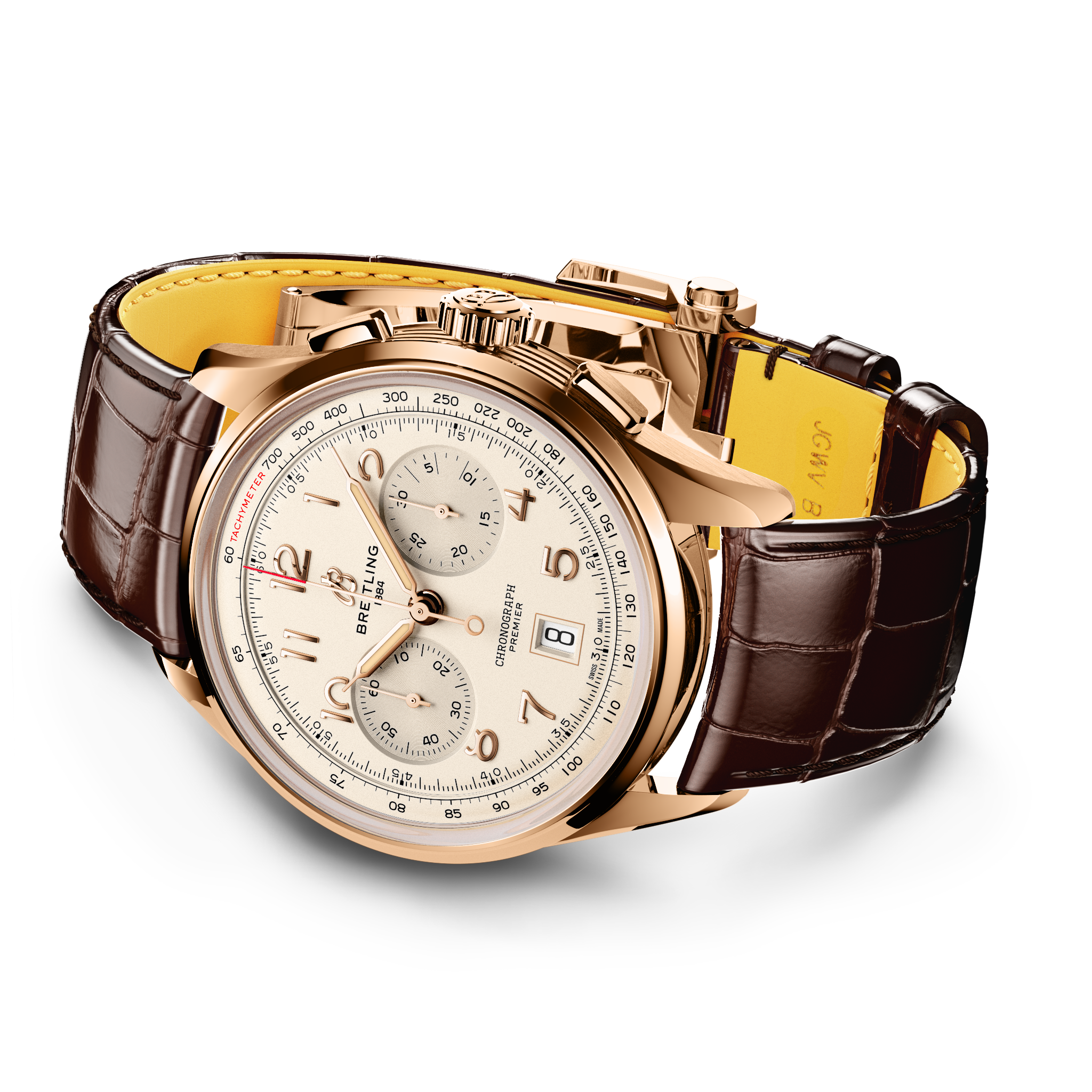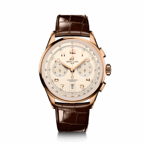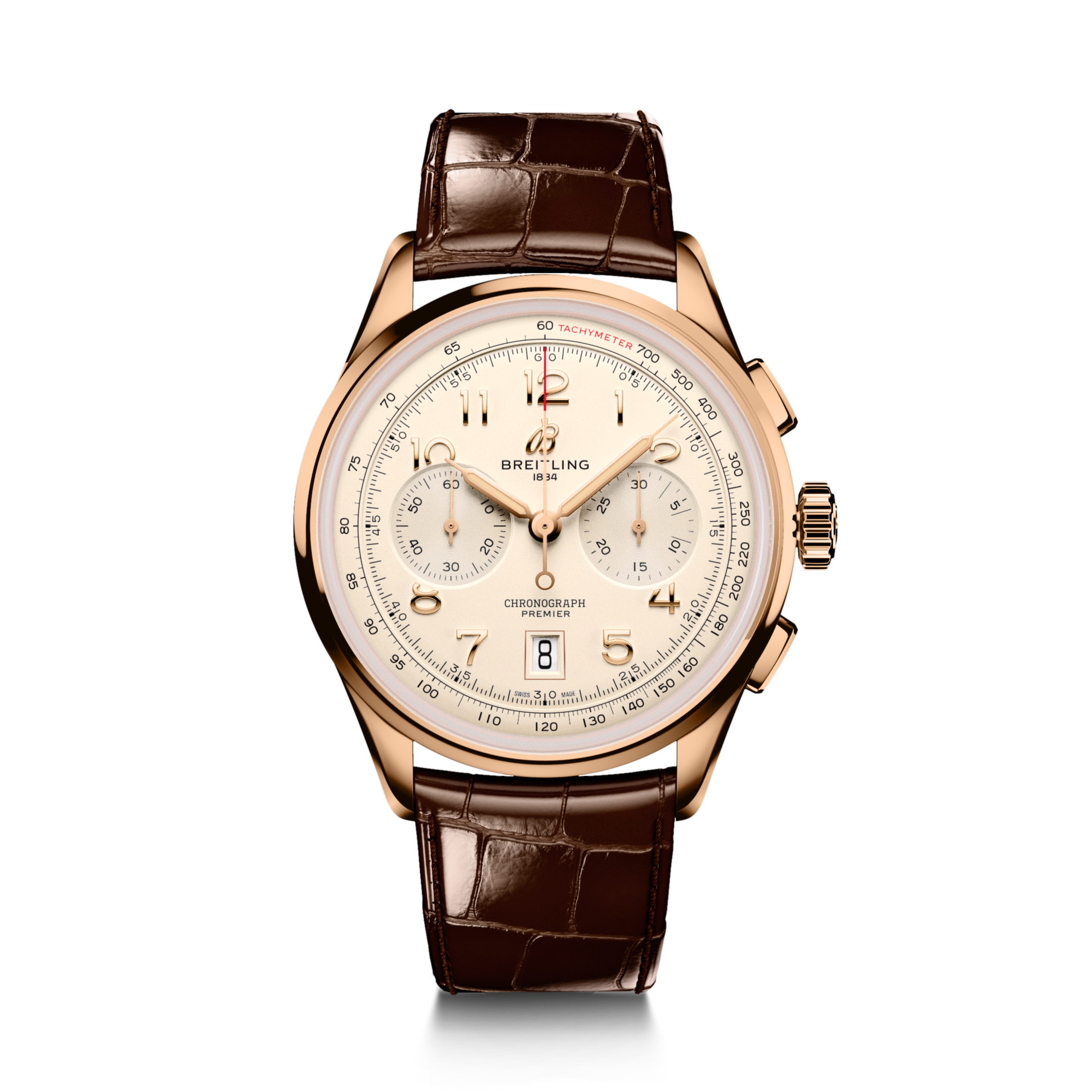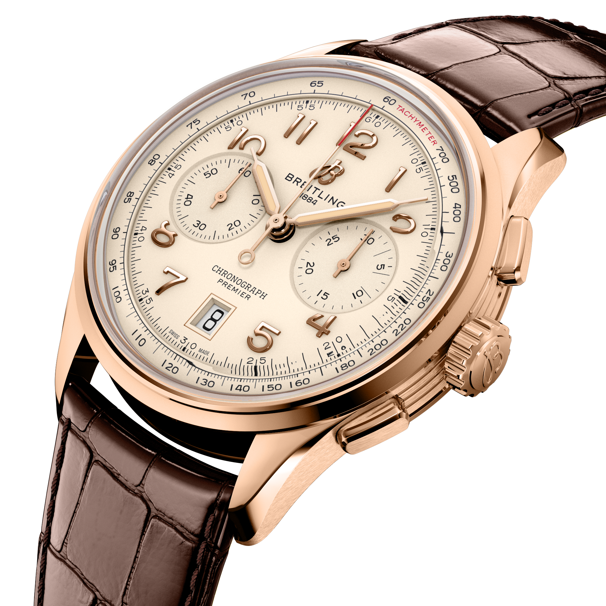 In the early 1940s, Willy Breitling was already dreaming of a time after the war, when utility would give way to unbridled optimism. He began designing a chronograph that would be functional but also undeniably elegant and infinitely wearable—in his words, “the unmistakable stamp of impeccable taste.” He called this new line the Premier. To create its modern Premier, Breitling preserved distinctive vintage-Premier details, including the smooth fixed bezel, twin-register dial, streamlined rectangular pushers and applied Arabic numerals. The Premier B01 Chronograph 42 is available in an array of dial colors and case materials. It comes on a choice of classic alligator leather strap or sleek 7-row metal bracelet. Today’s Premier also lives up to Willy Breitling’s uncompromising technical standards with its exceptional self-winding movement—the COSC-certified Breitling Manufacture Caliber 01—designed for maximum precision, reliability and functionality.