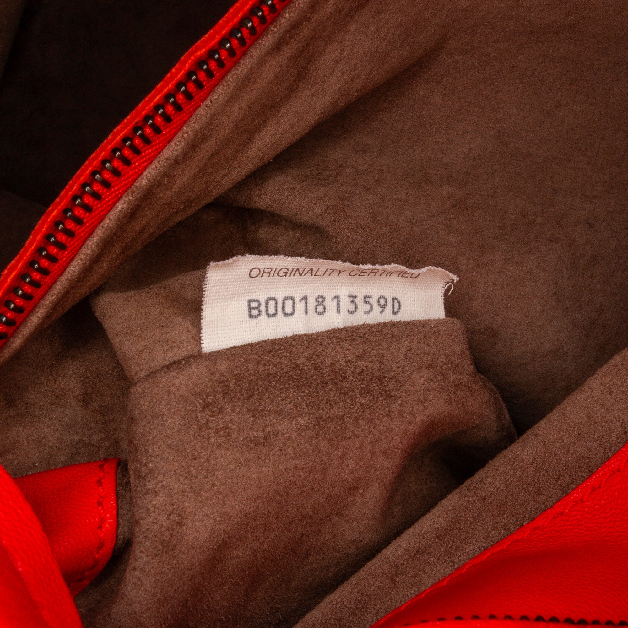 Product Details: Red Bottega Veneta Intrecciato Parachute Tote. This tote bag features a woven leather body, rolled leather handles, an open top, and interior zip and slip pockets. 10.2″ L x 15″ W x 8.7″ D, 7.1″ drop. Serial number BO0181359D.