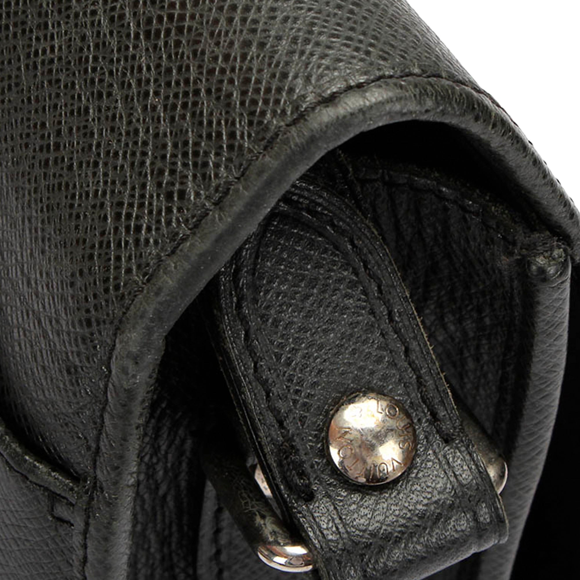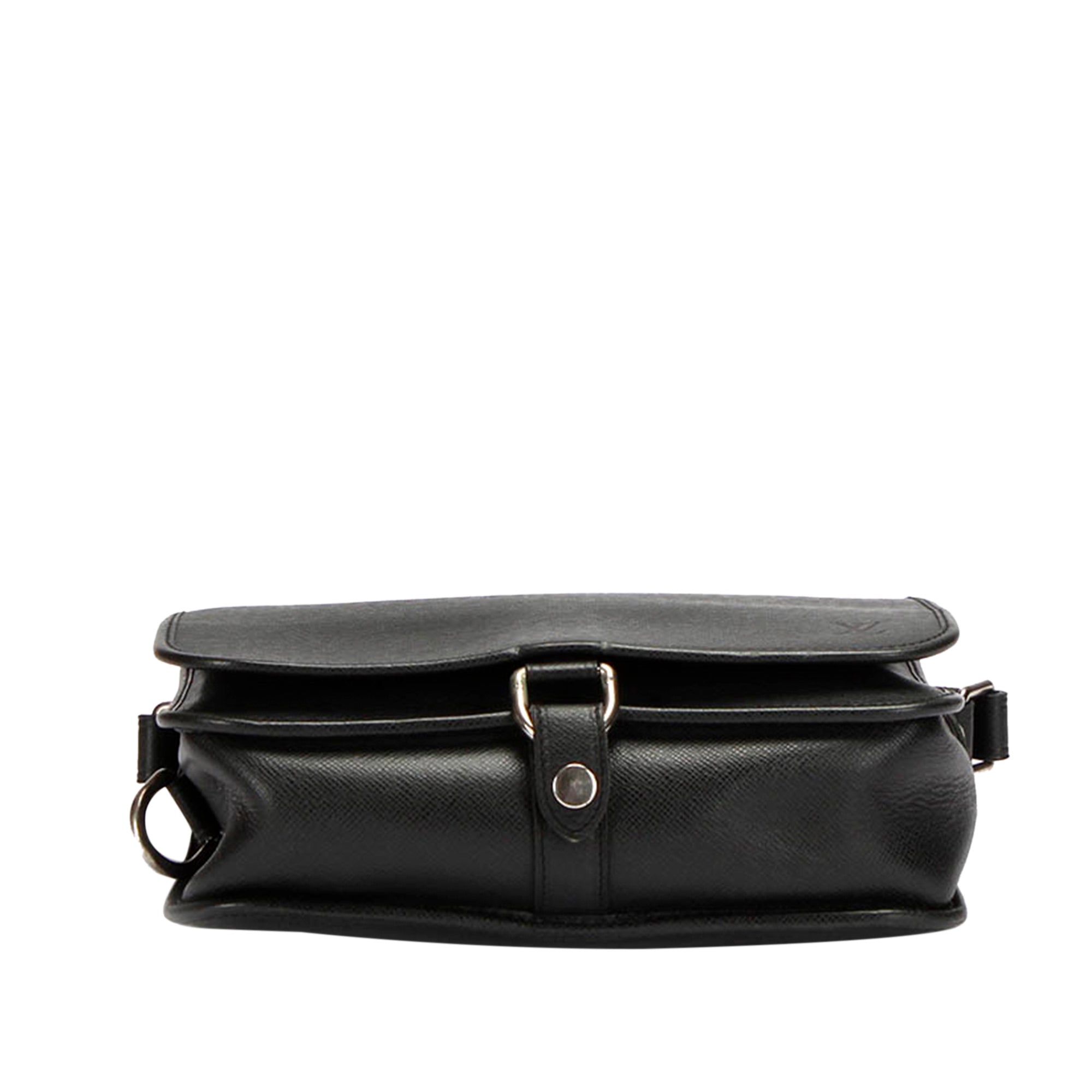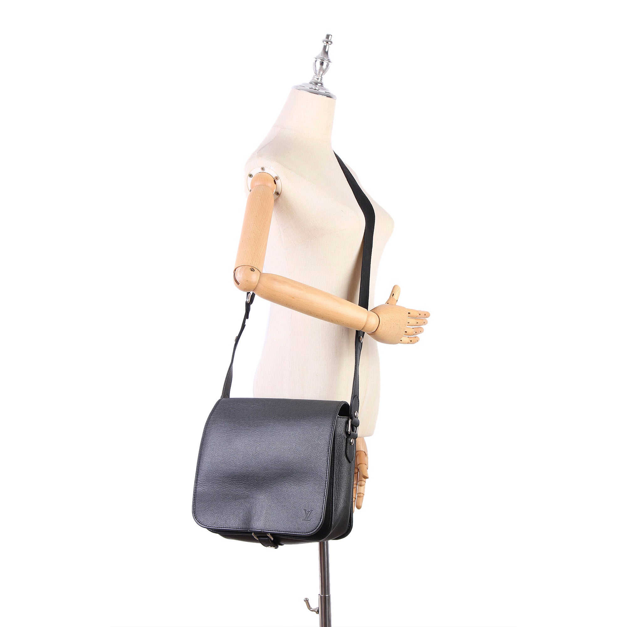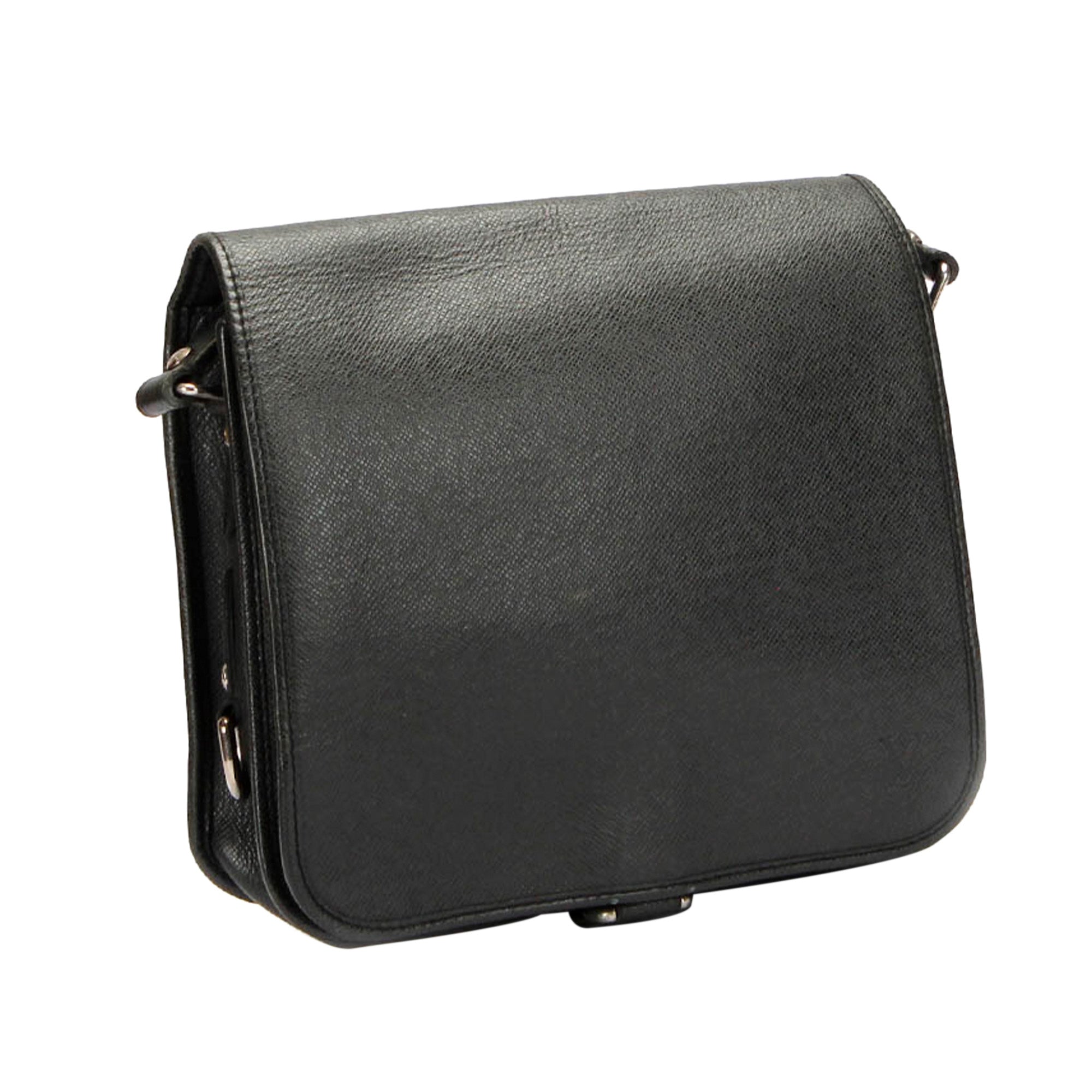 The Taiga Andrei features a leather body, an adjustable flat strap, and a front flap with magnetic snap closure.