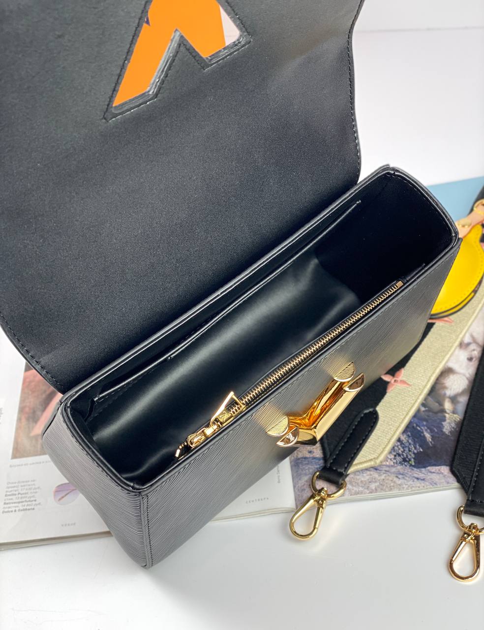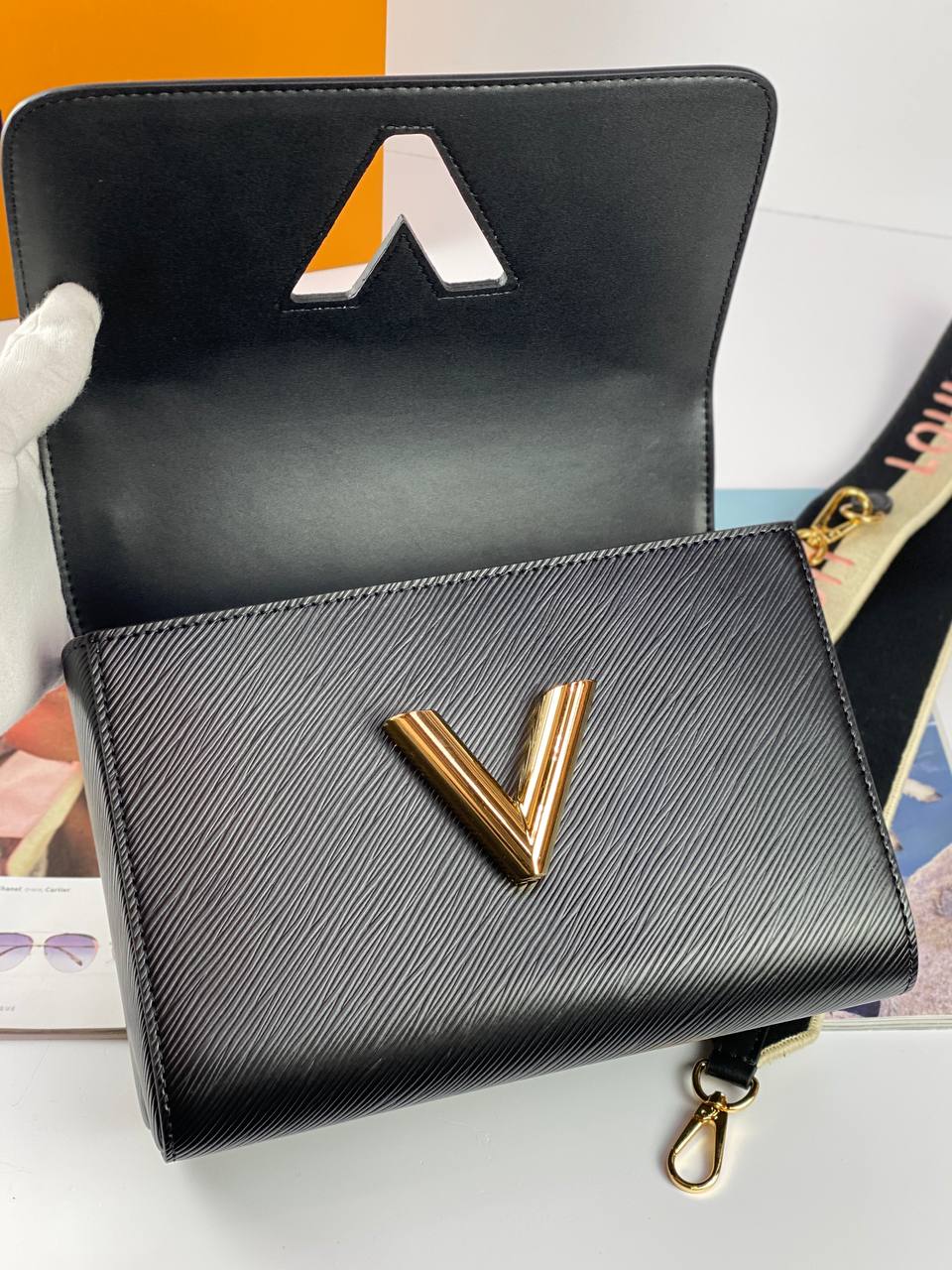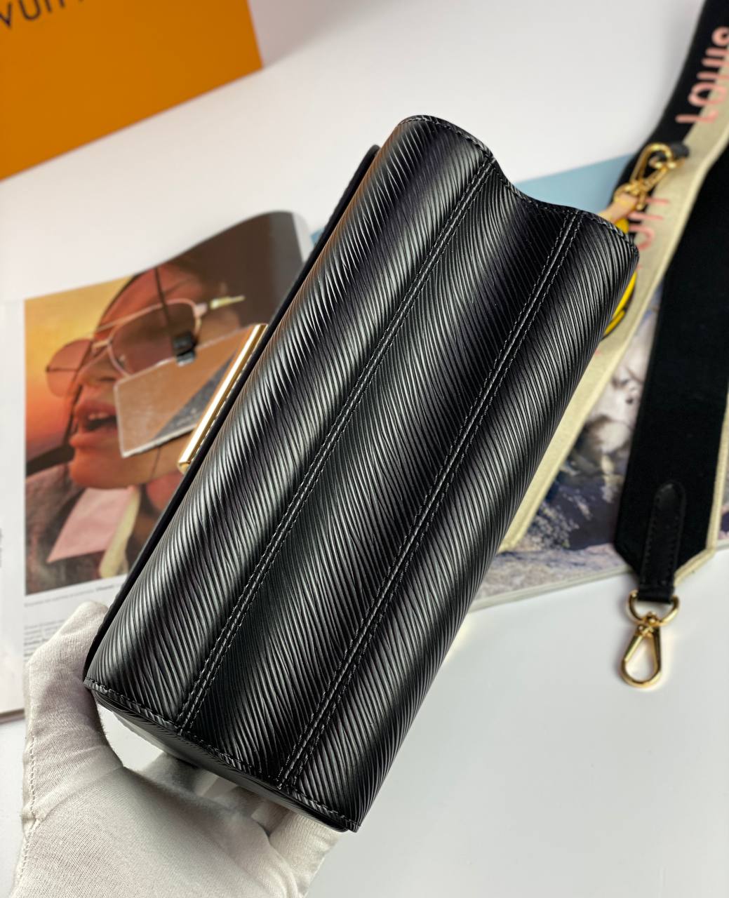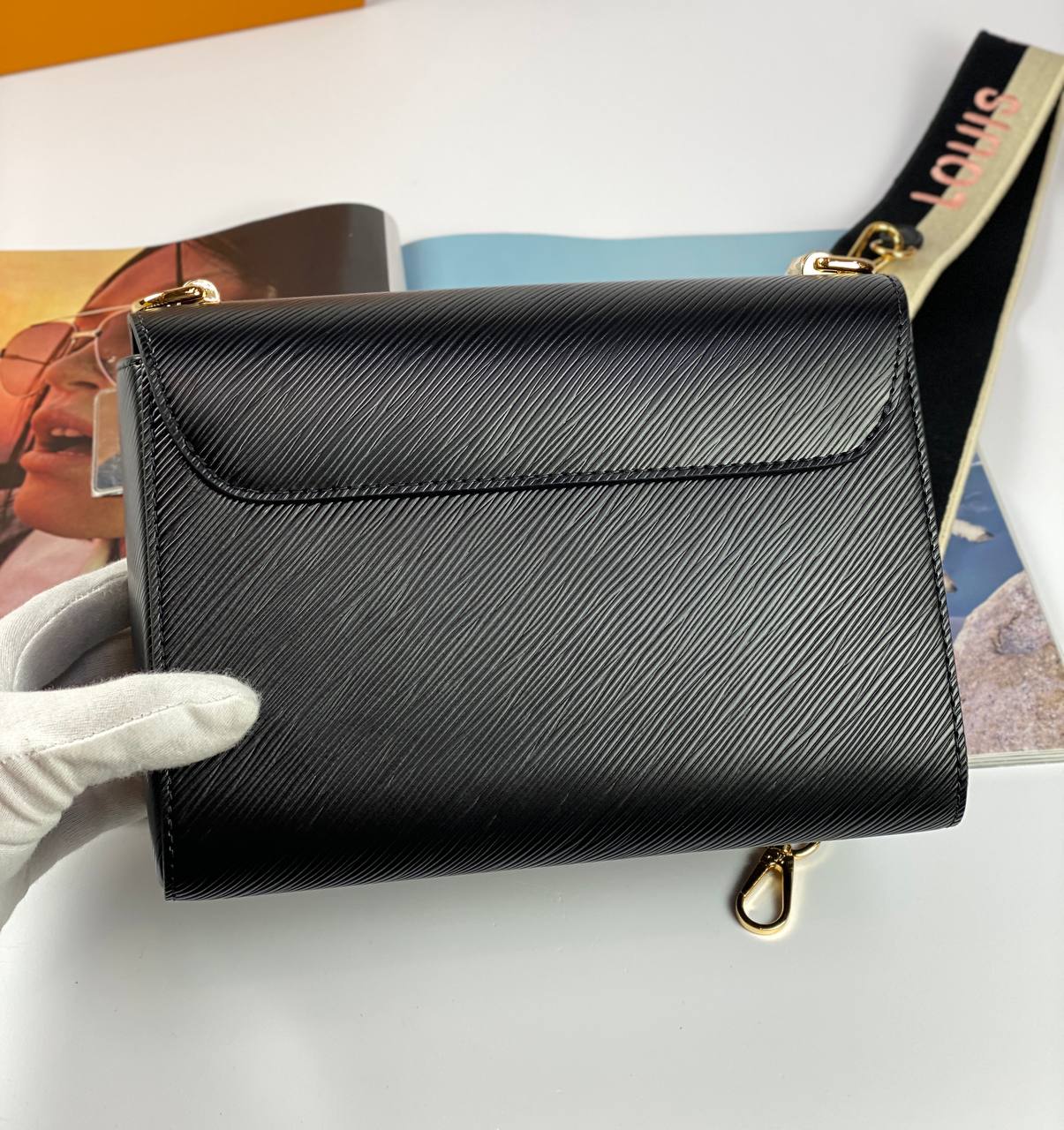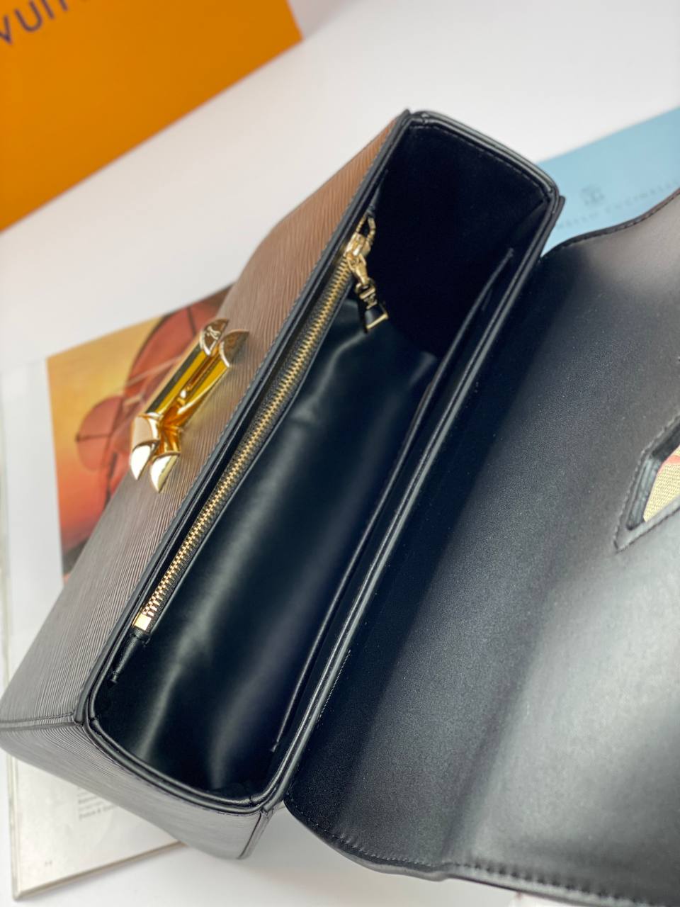 With lines inherited from the Trapèze clutch, the new Twist features an updated version of the signature twist lock. The metal clasp with 3D bomb effect looks modern and architectural. To open the bag, one smooth twist is enough to make the letter “L” match the letter “V” with a characteristic click. The convertible chain handle can be worn over the shoulder or hung gracefully on the shoulder.