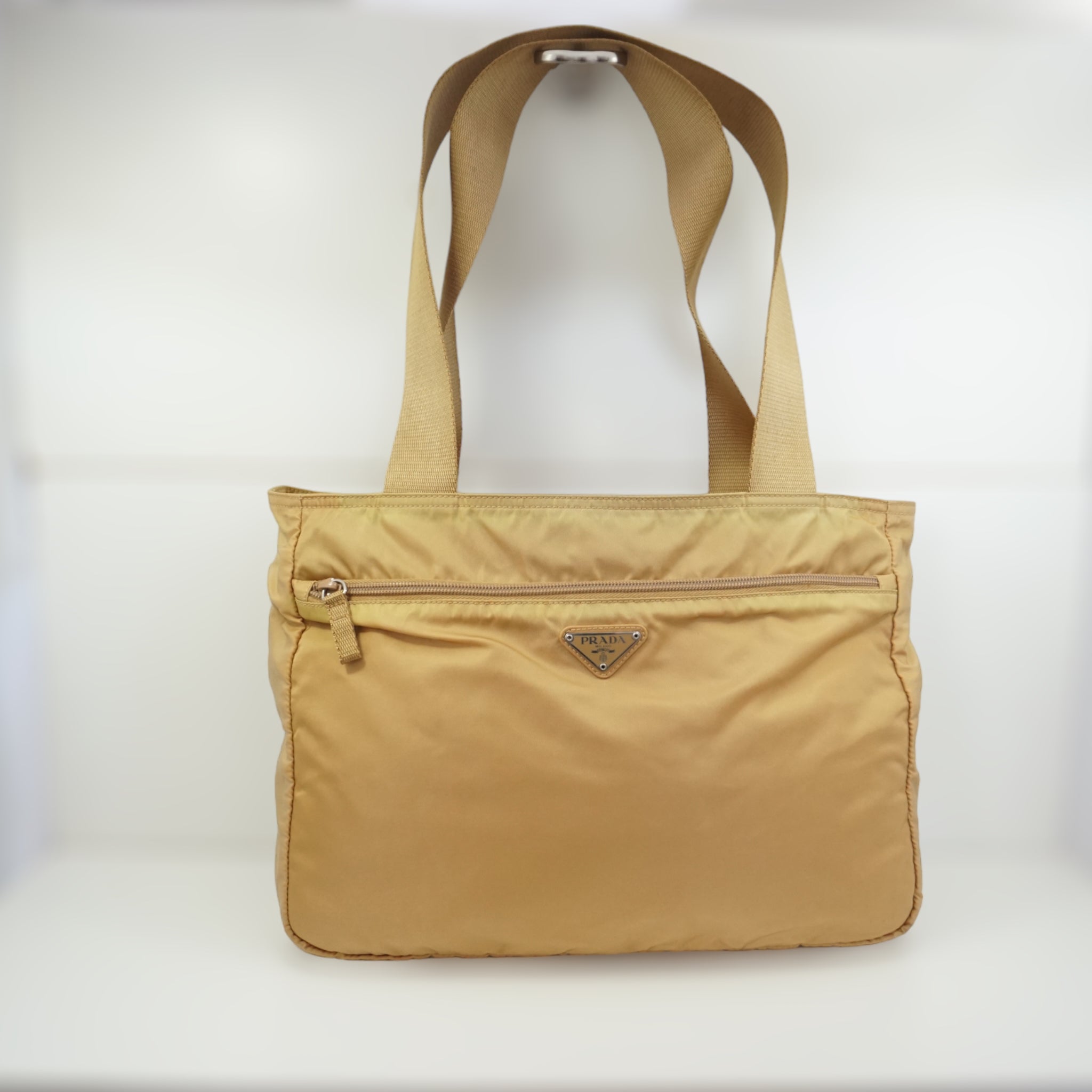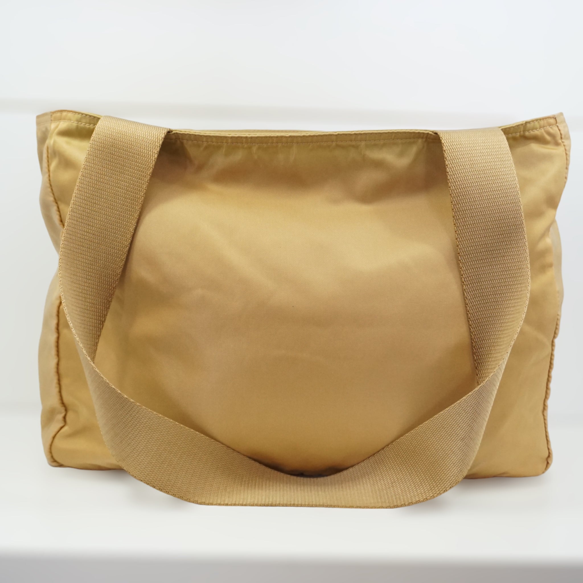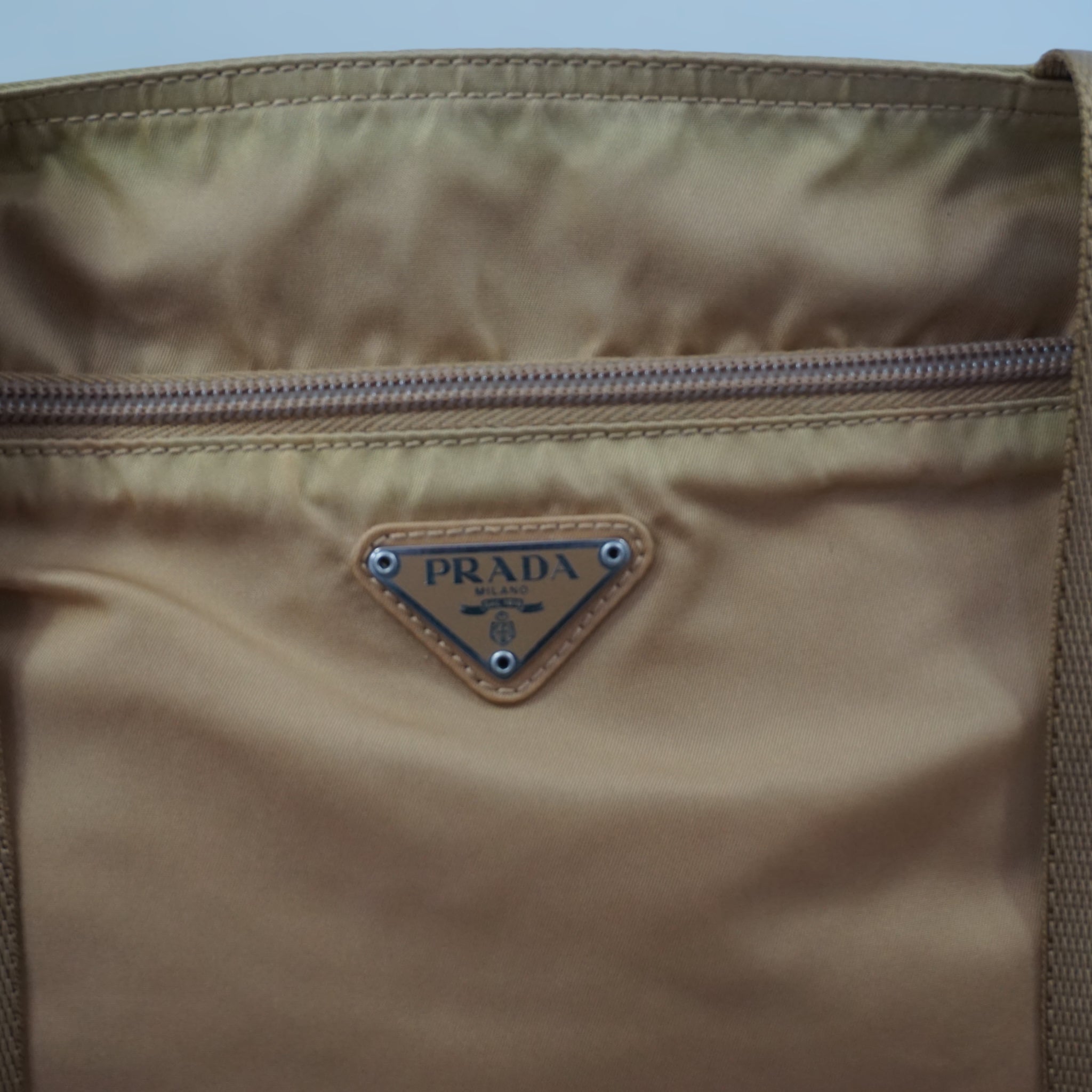 Prada skuldertaske i sand-farvet nylon.