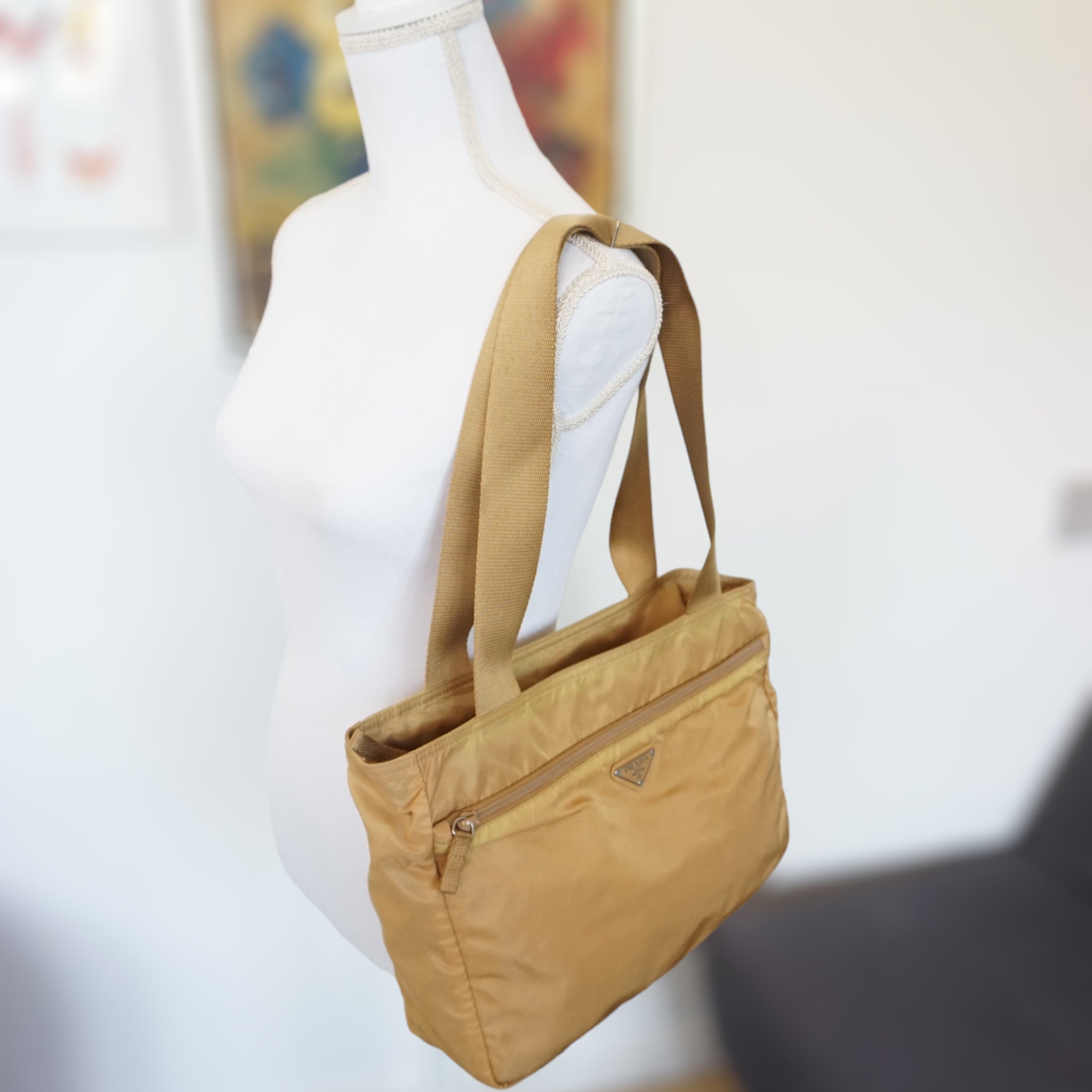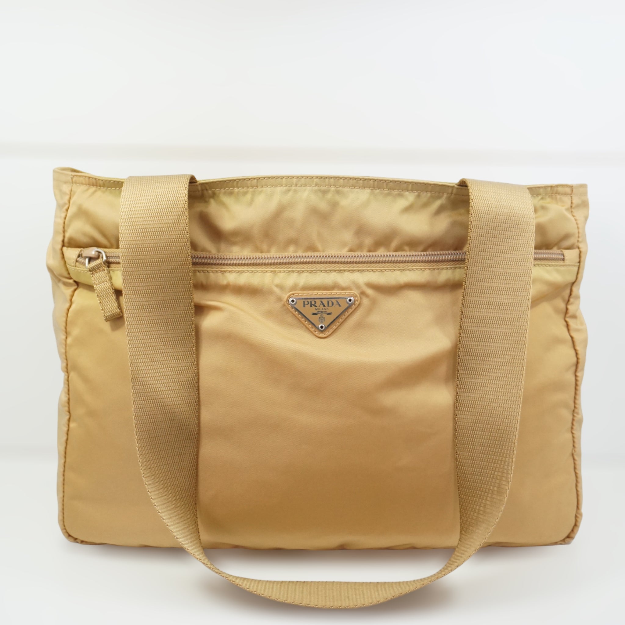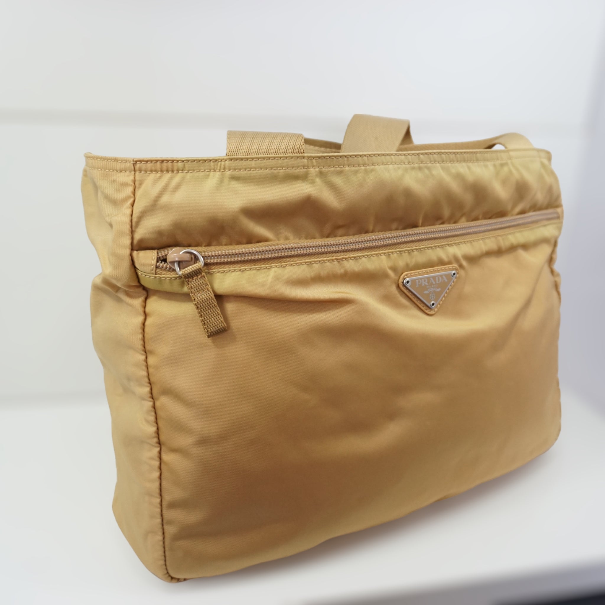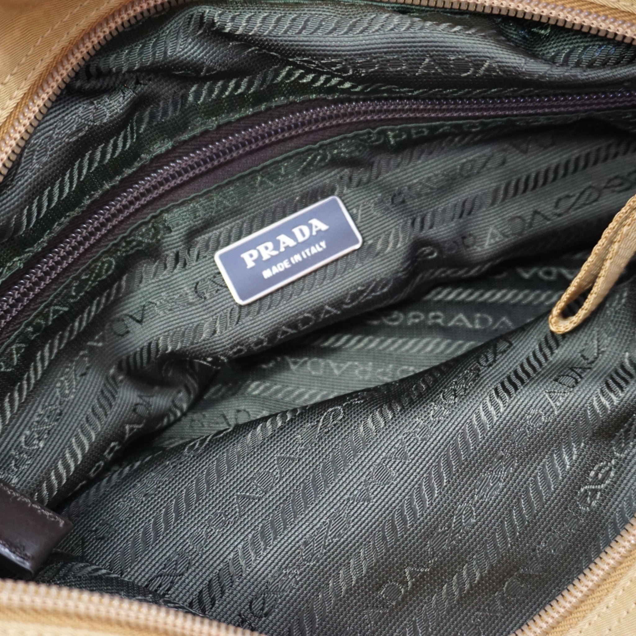 Prada skuldertaske i sand-farvet nylon.