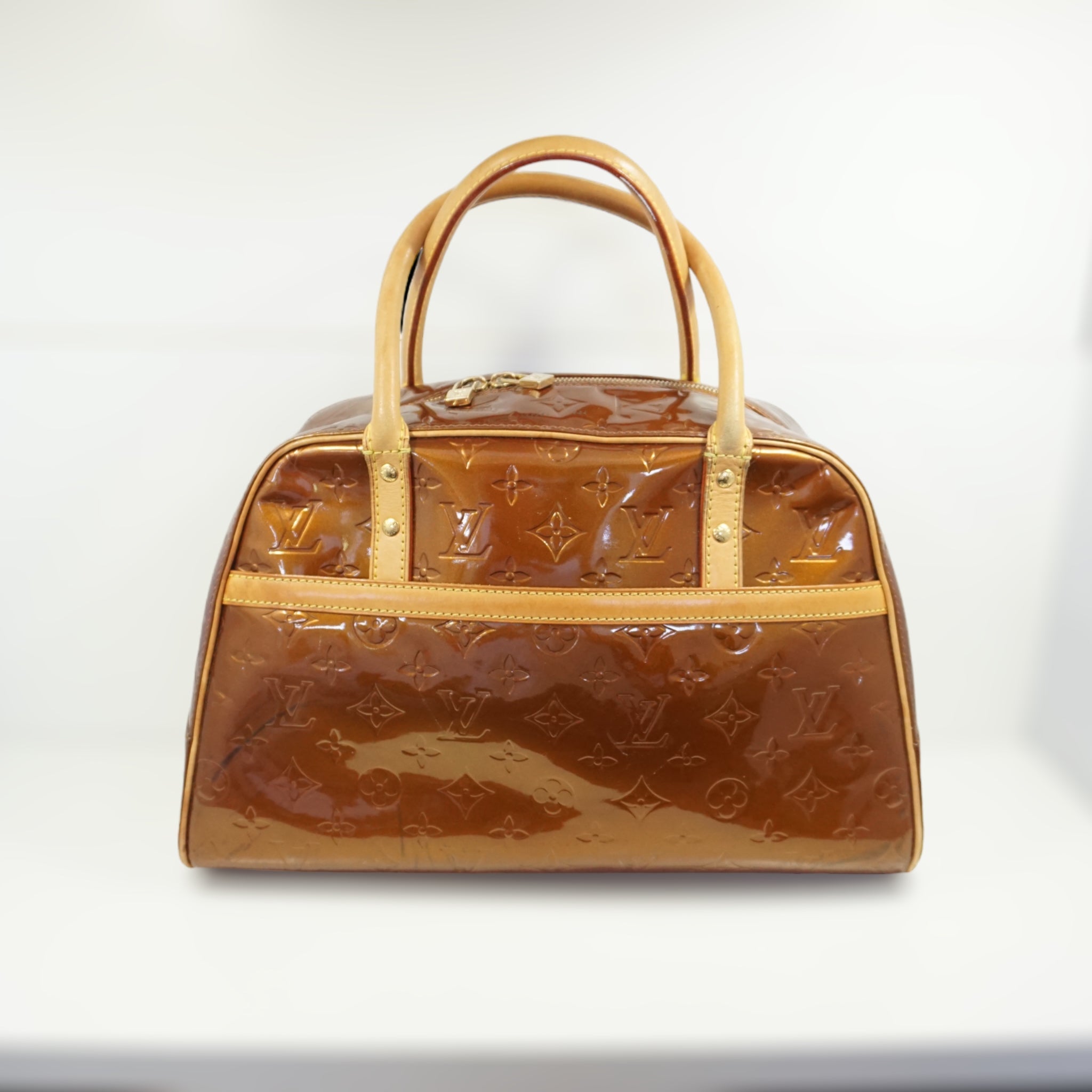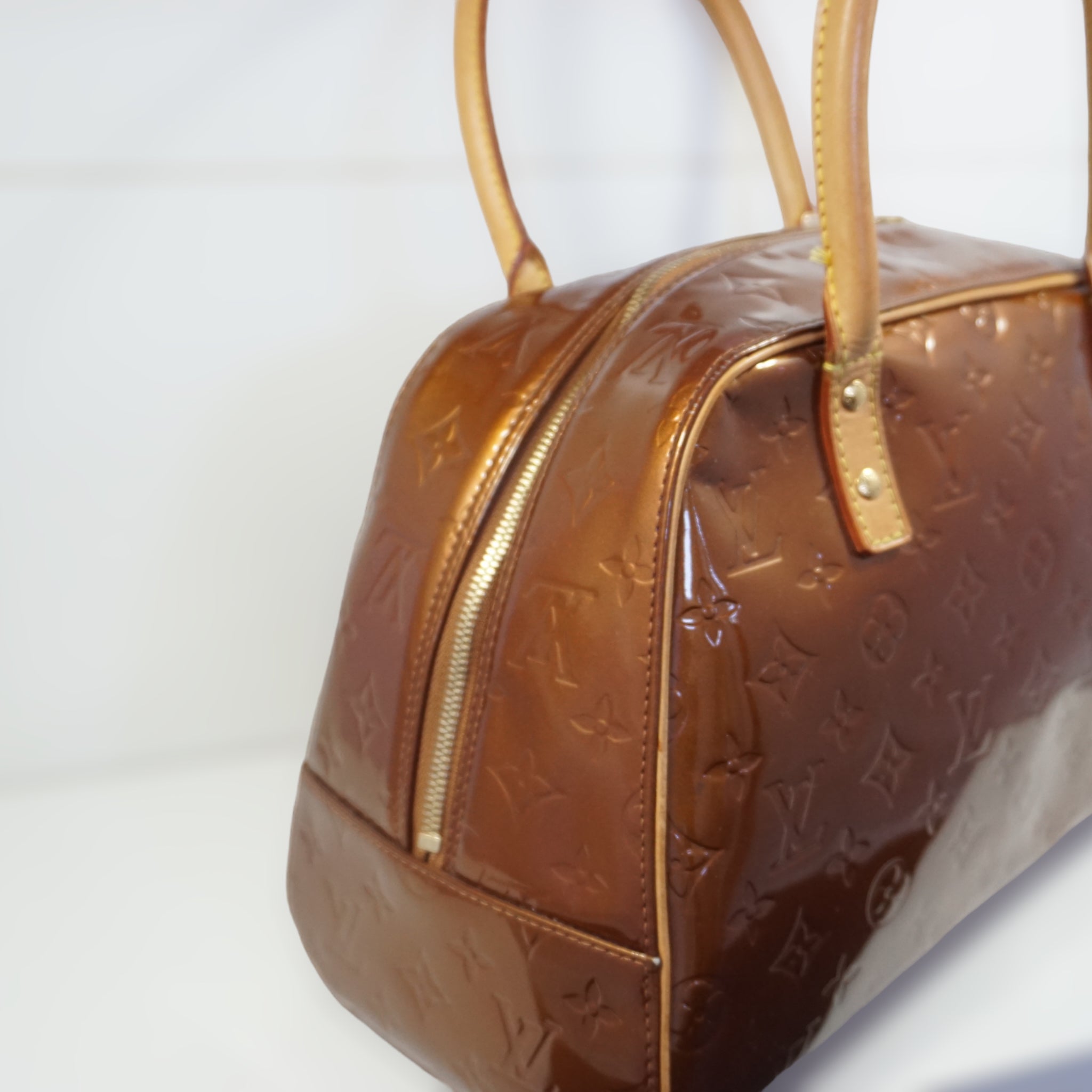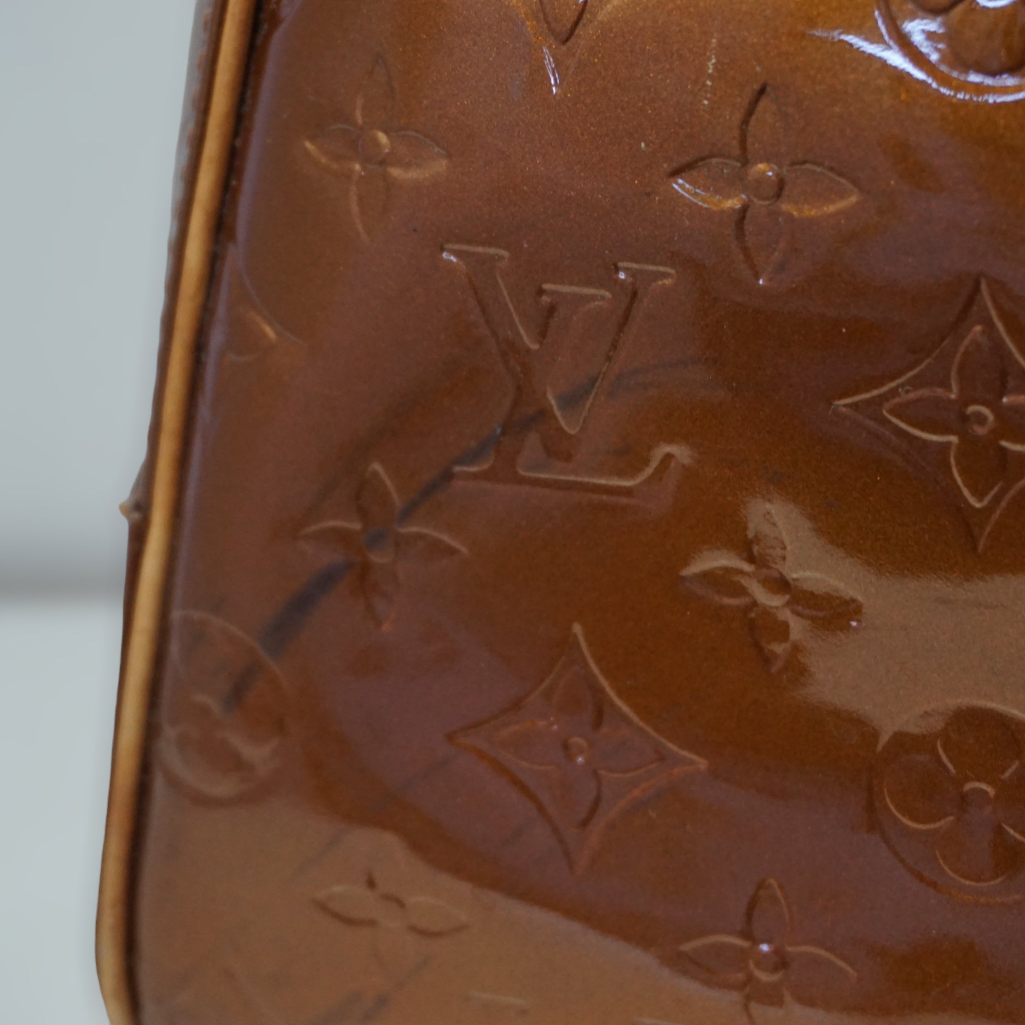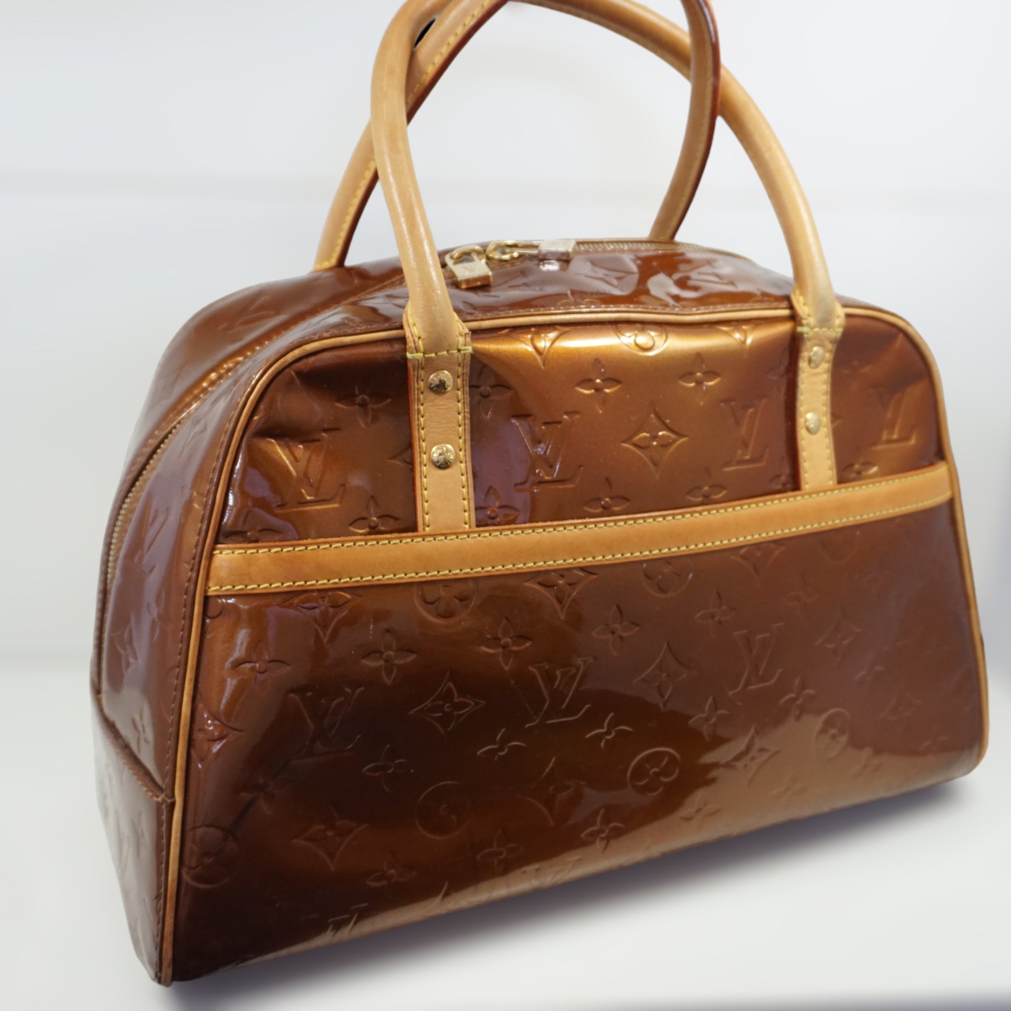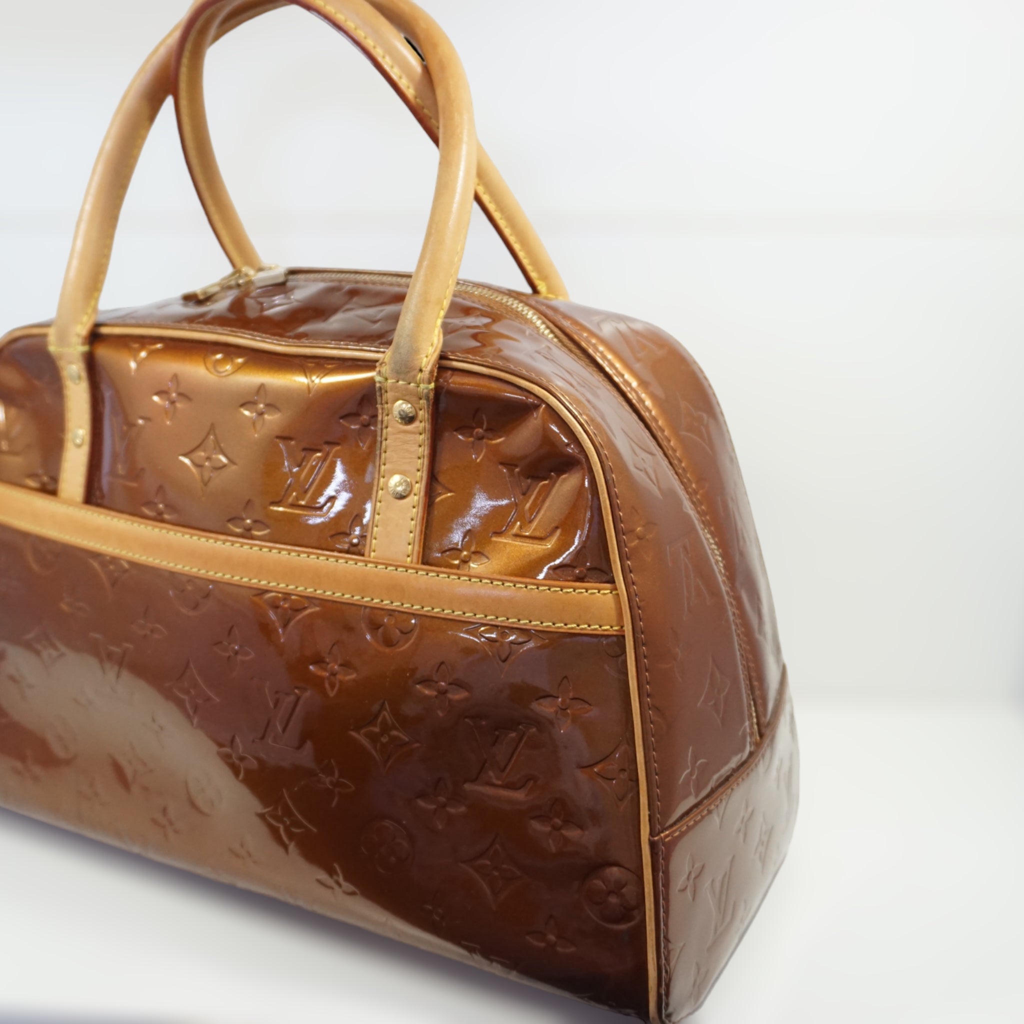 LV Tompkins skuldertaske i orange Vernis og brun læder.