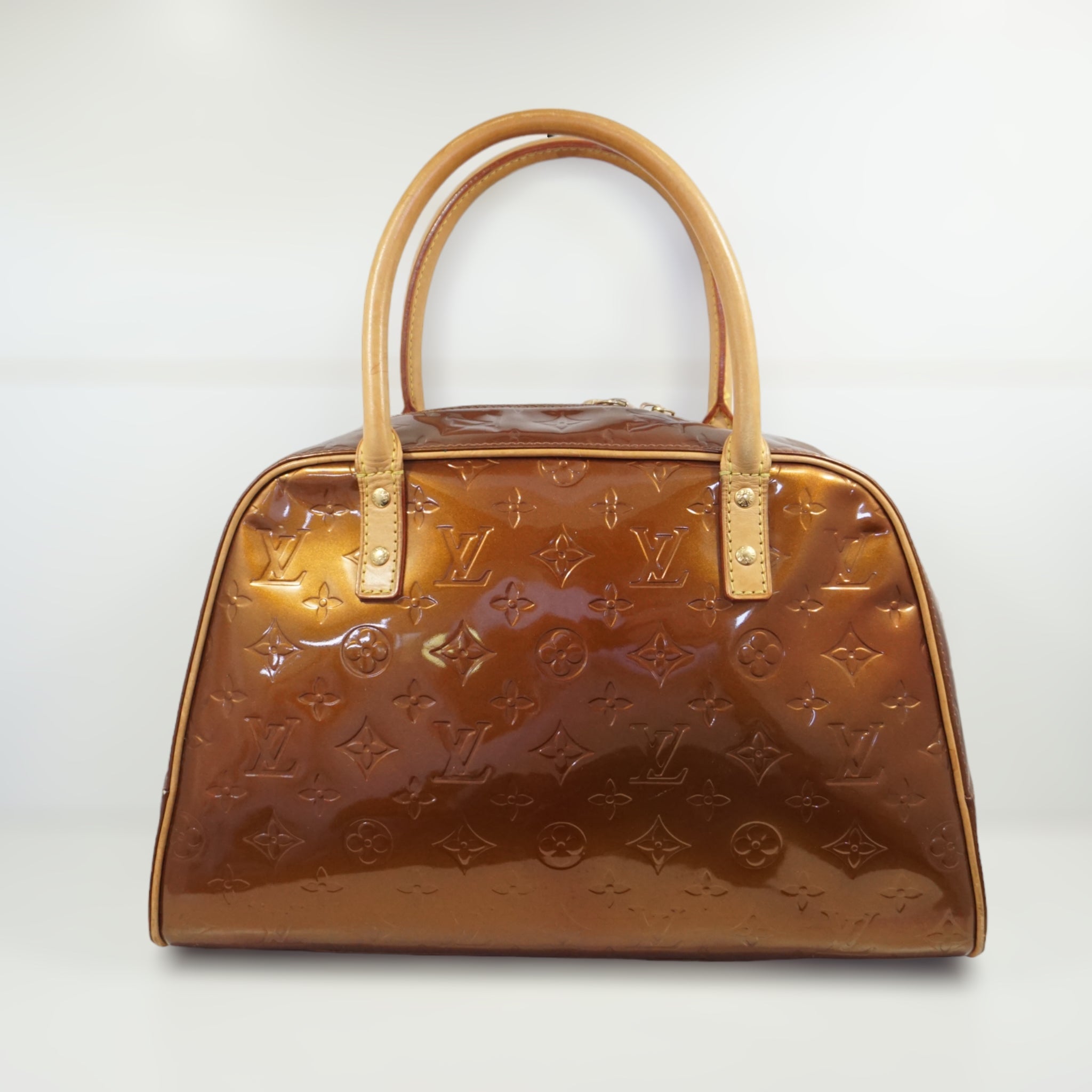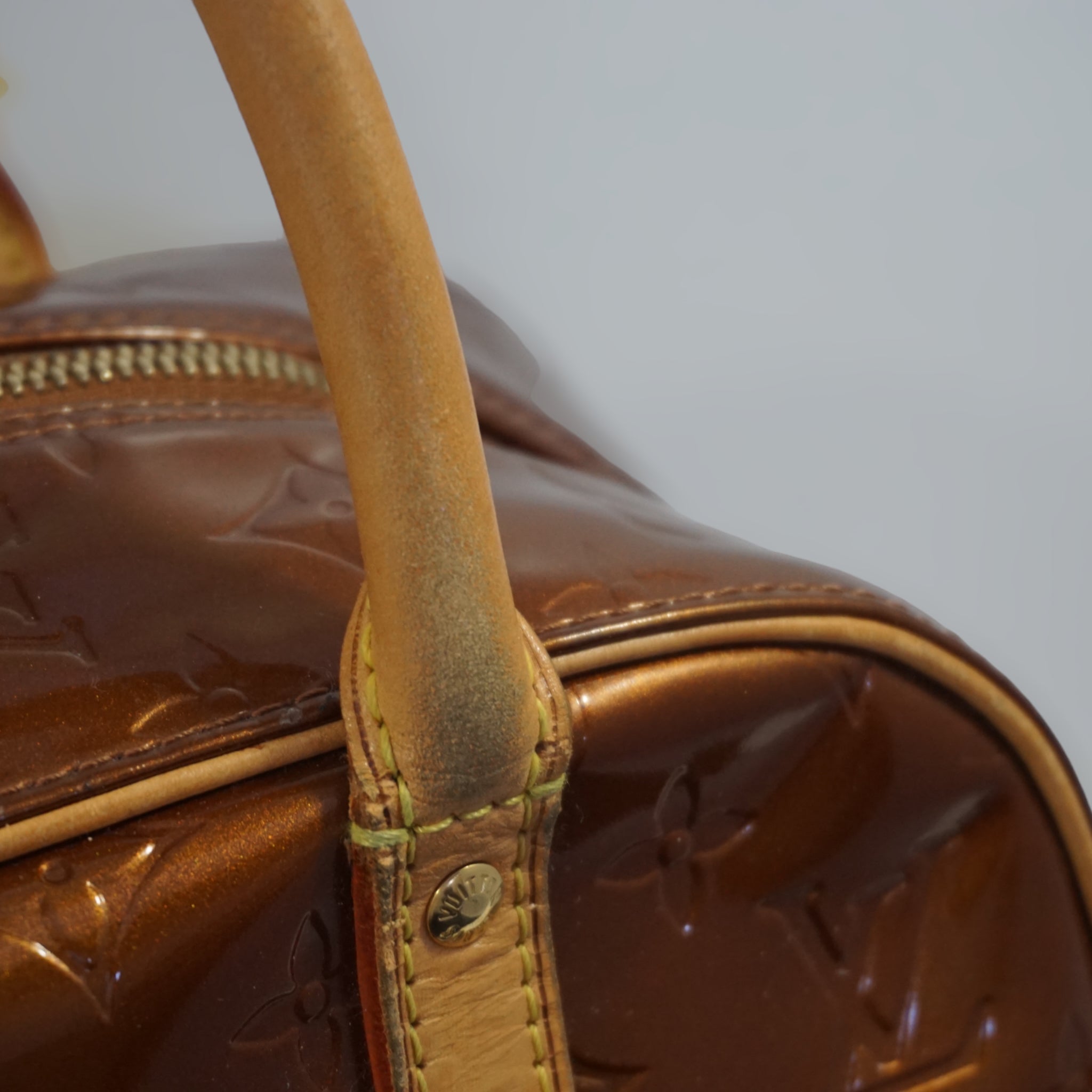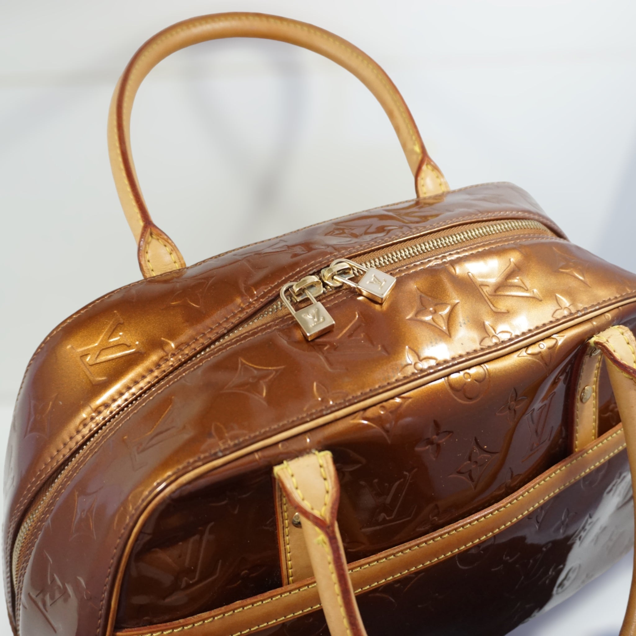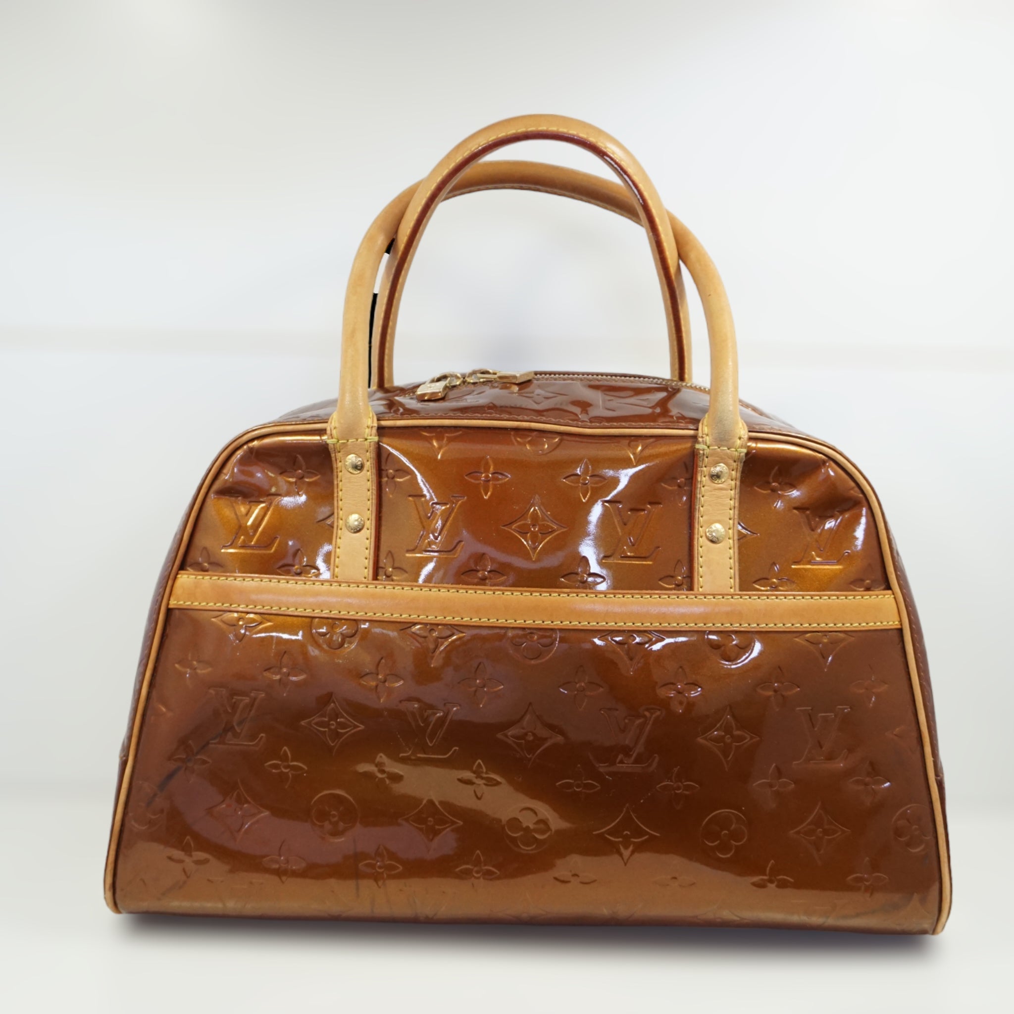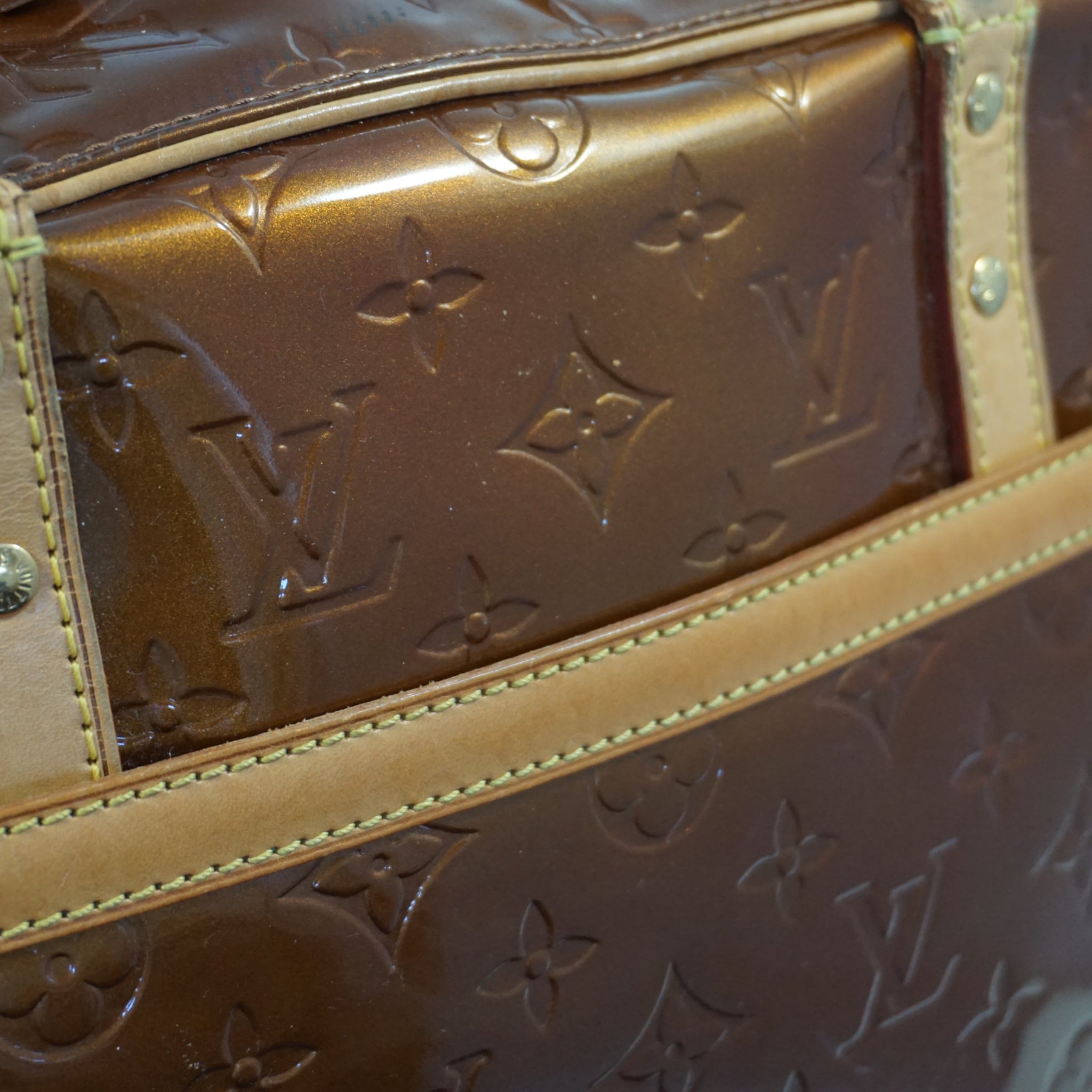 LV Tompkins skuldertaske i orange Vernis og brun læder.