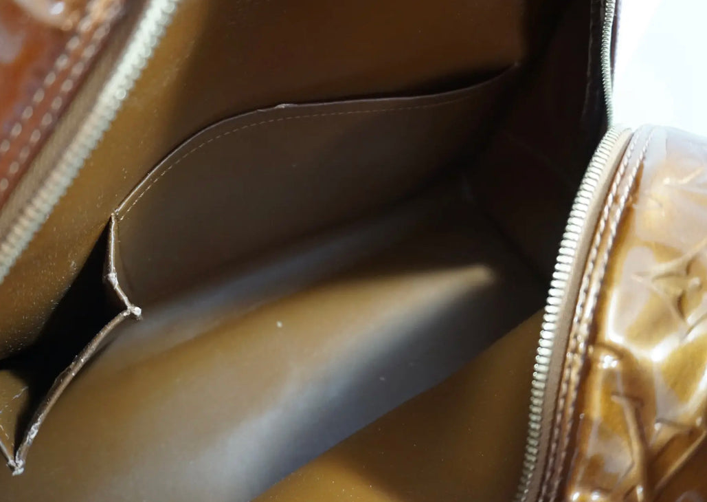 Tasken har småslid i foret på indersiden og nogle små ridser og pletter i materialet, sol vist på billederne. Derudover er tasken i rigtig flot stand og fuldt funktionel