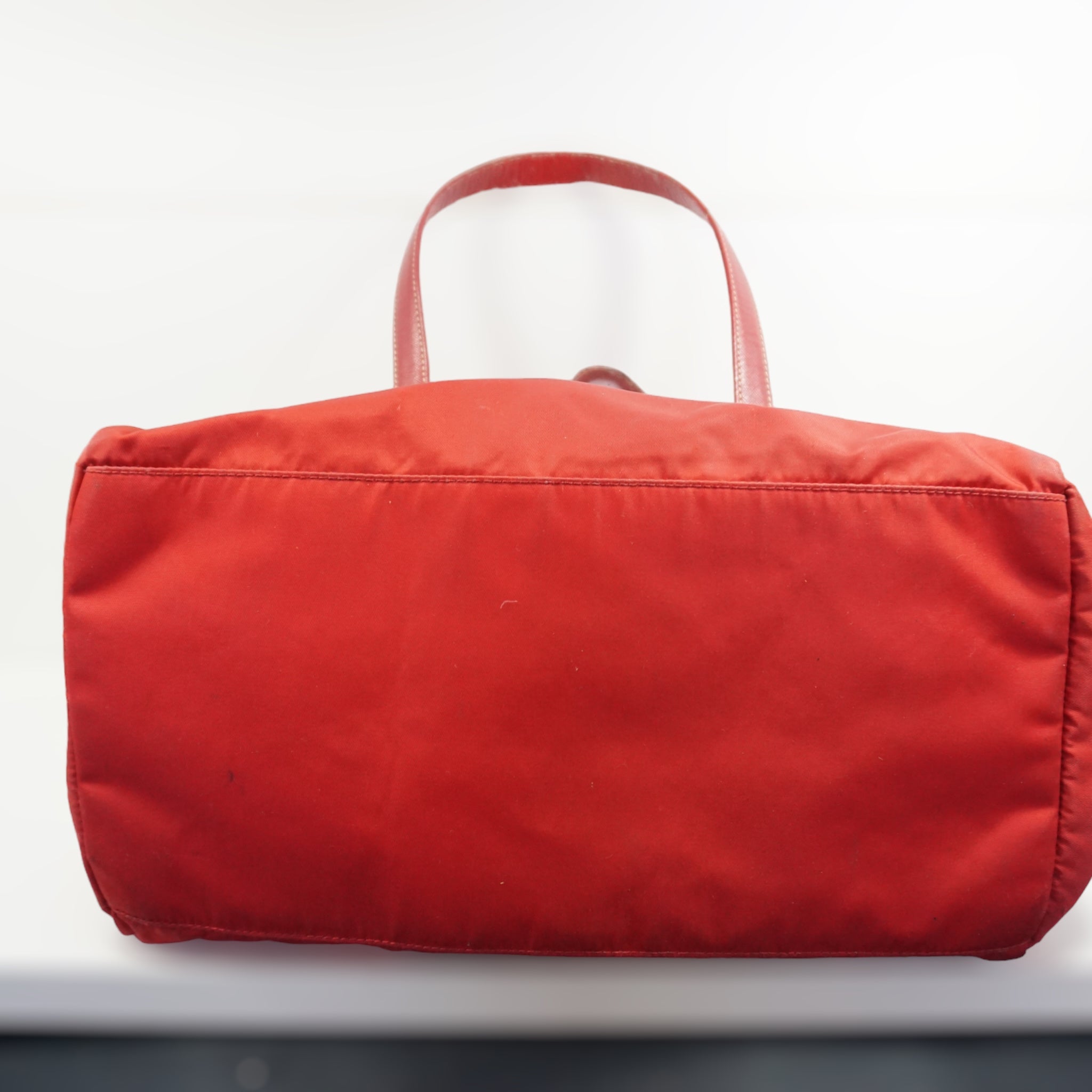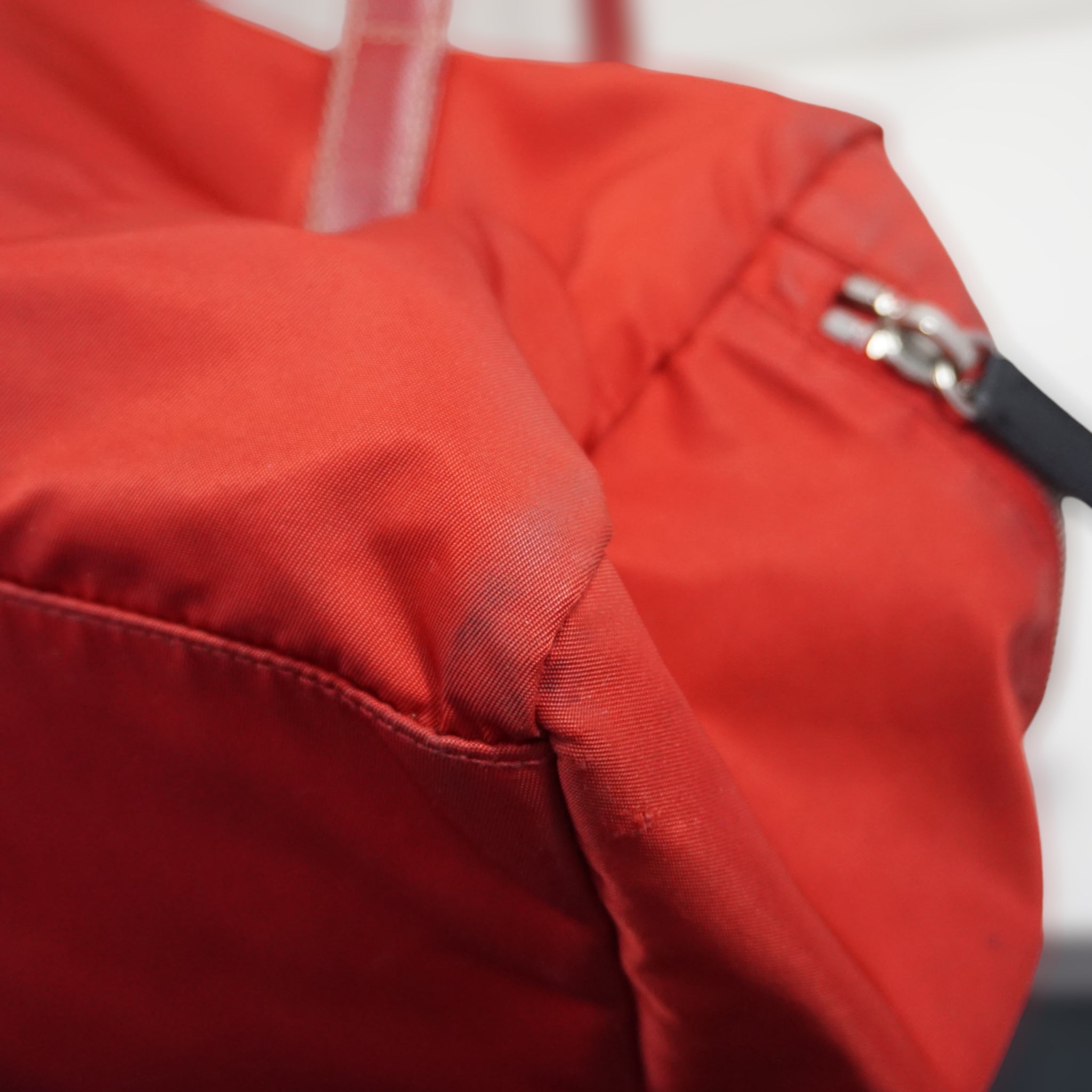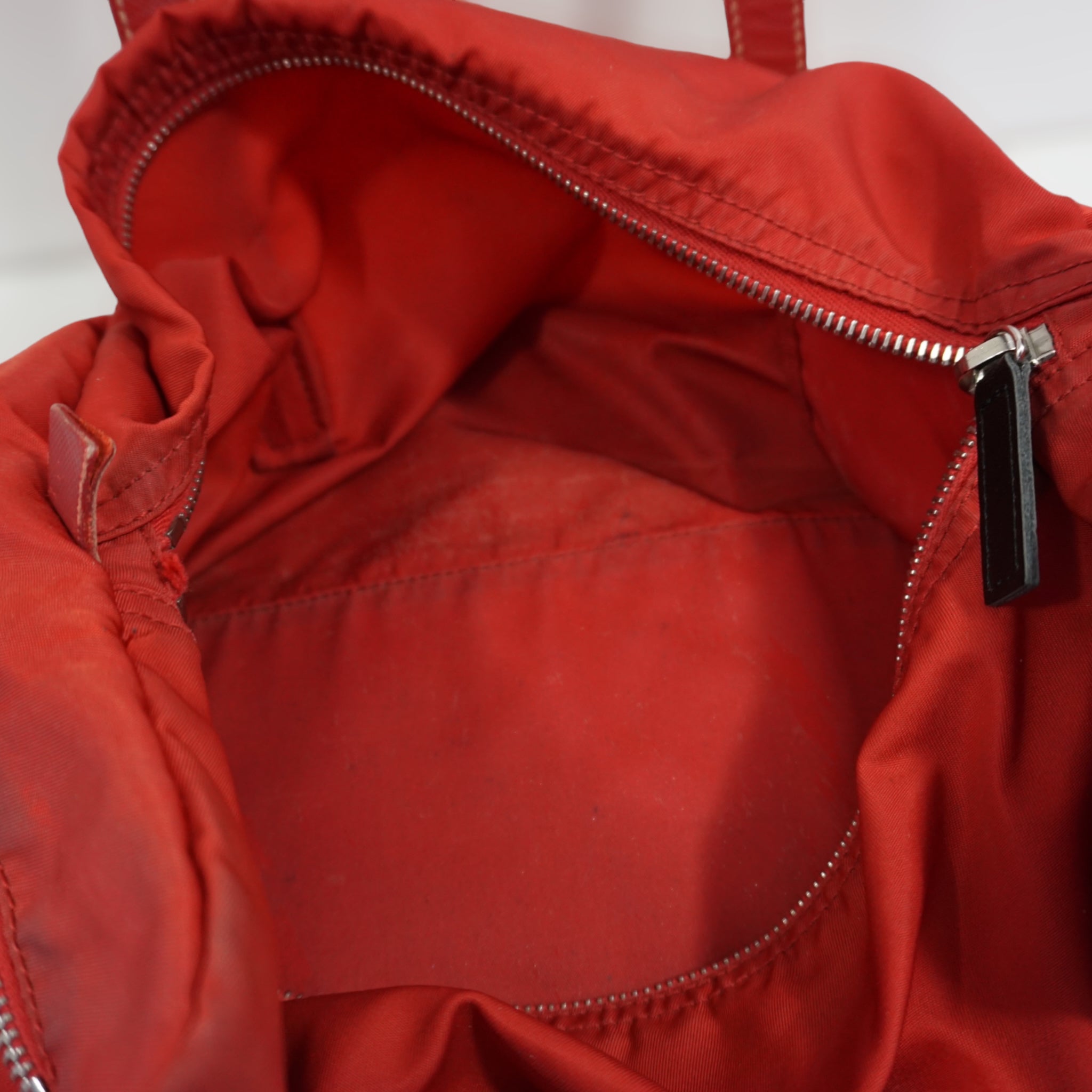 Prada skuldertaske i rød nylon med læder skulderrem.