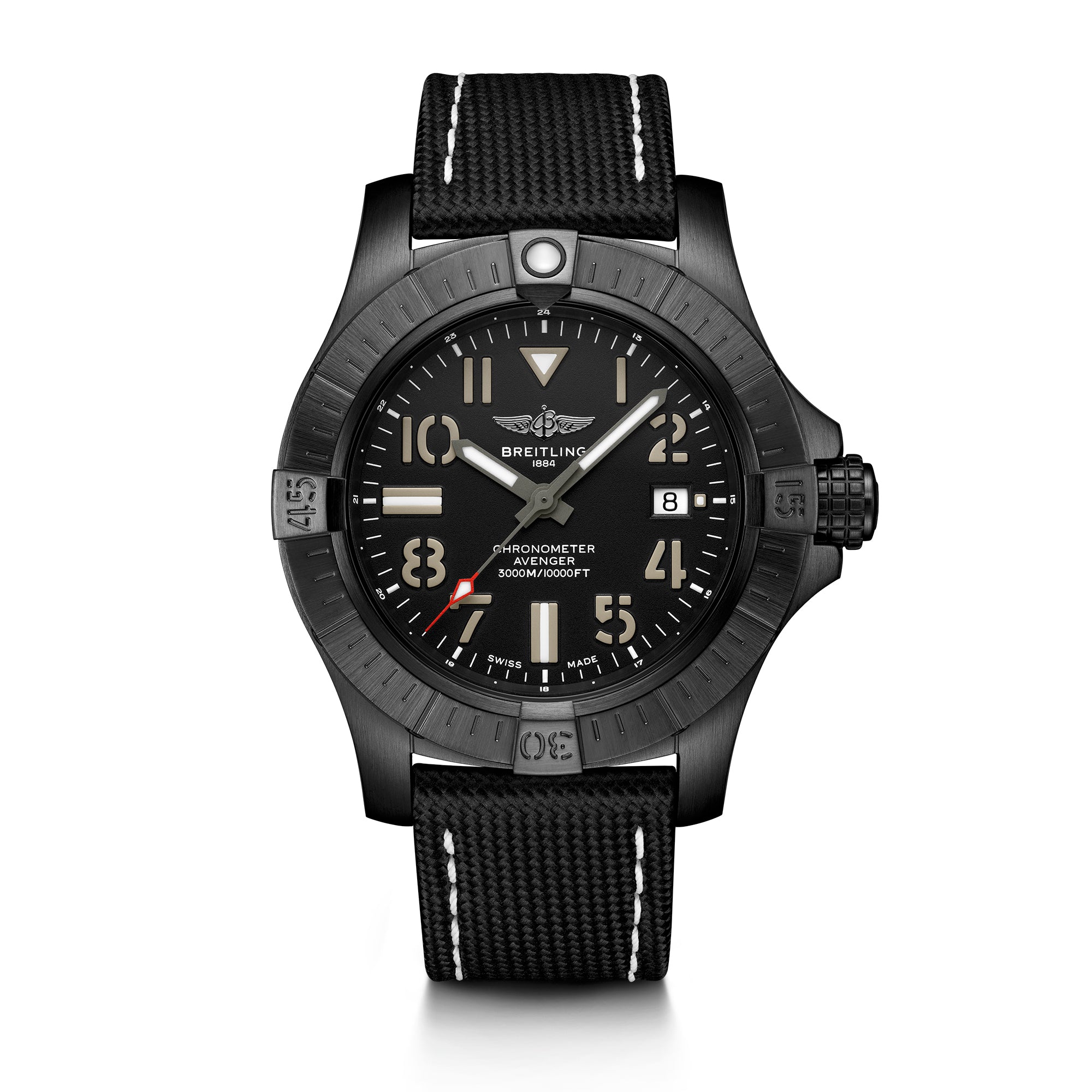 Bold, extremely robust and shock resistant, the Avenger Automatic 45 Seawolf is a lightweight pilots’ watch prepared for adventures well below the ocean’s surface (up to 300 bars – 3.000m). As a true Breitling Avenger, it can be used wearing gloves and offers unrivalled safety and reliability to any airborne adventurer.