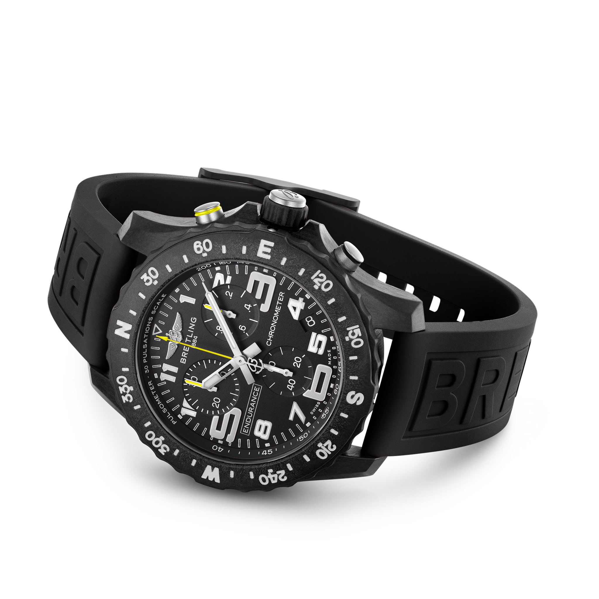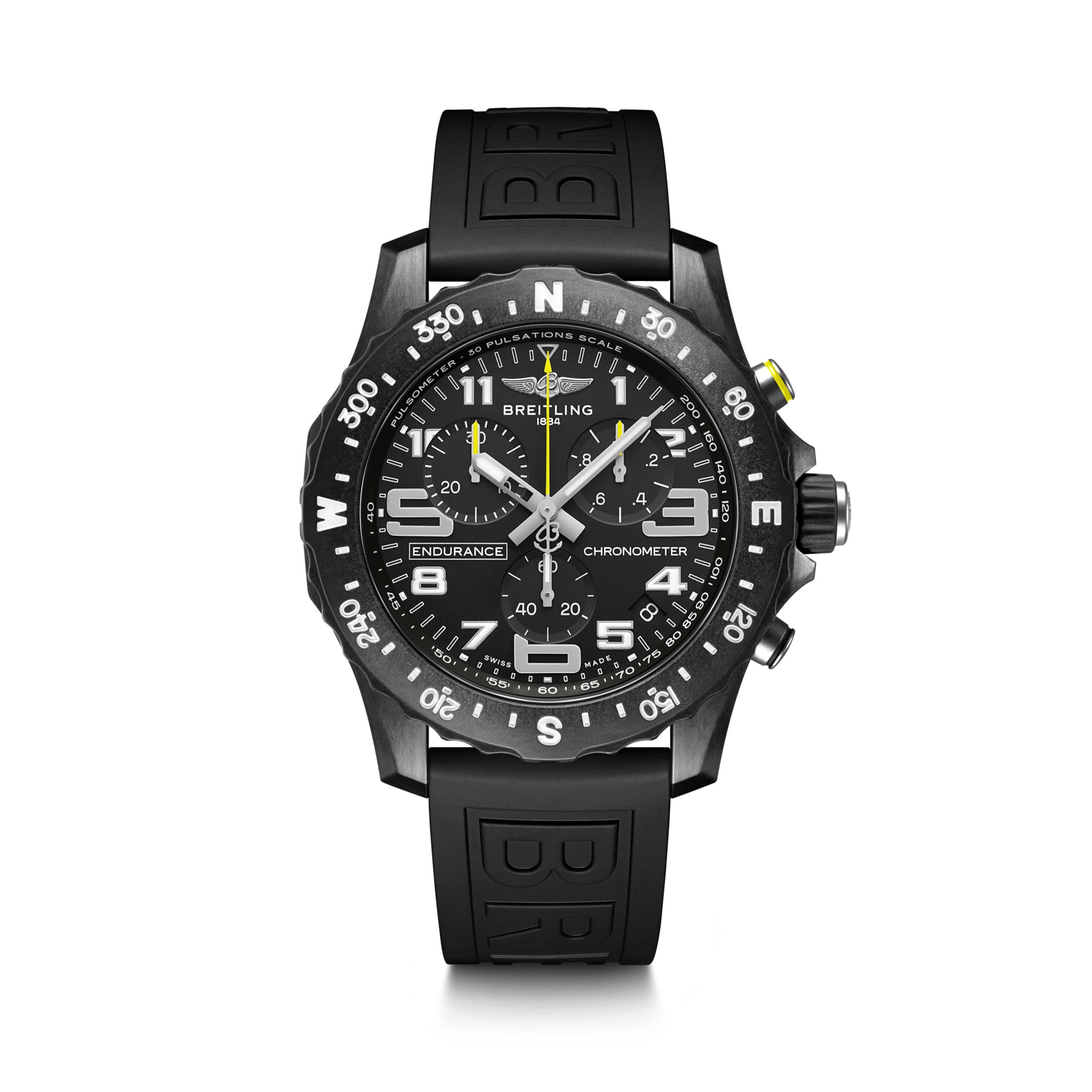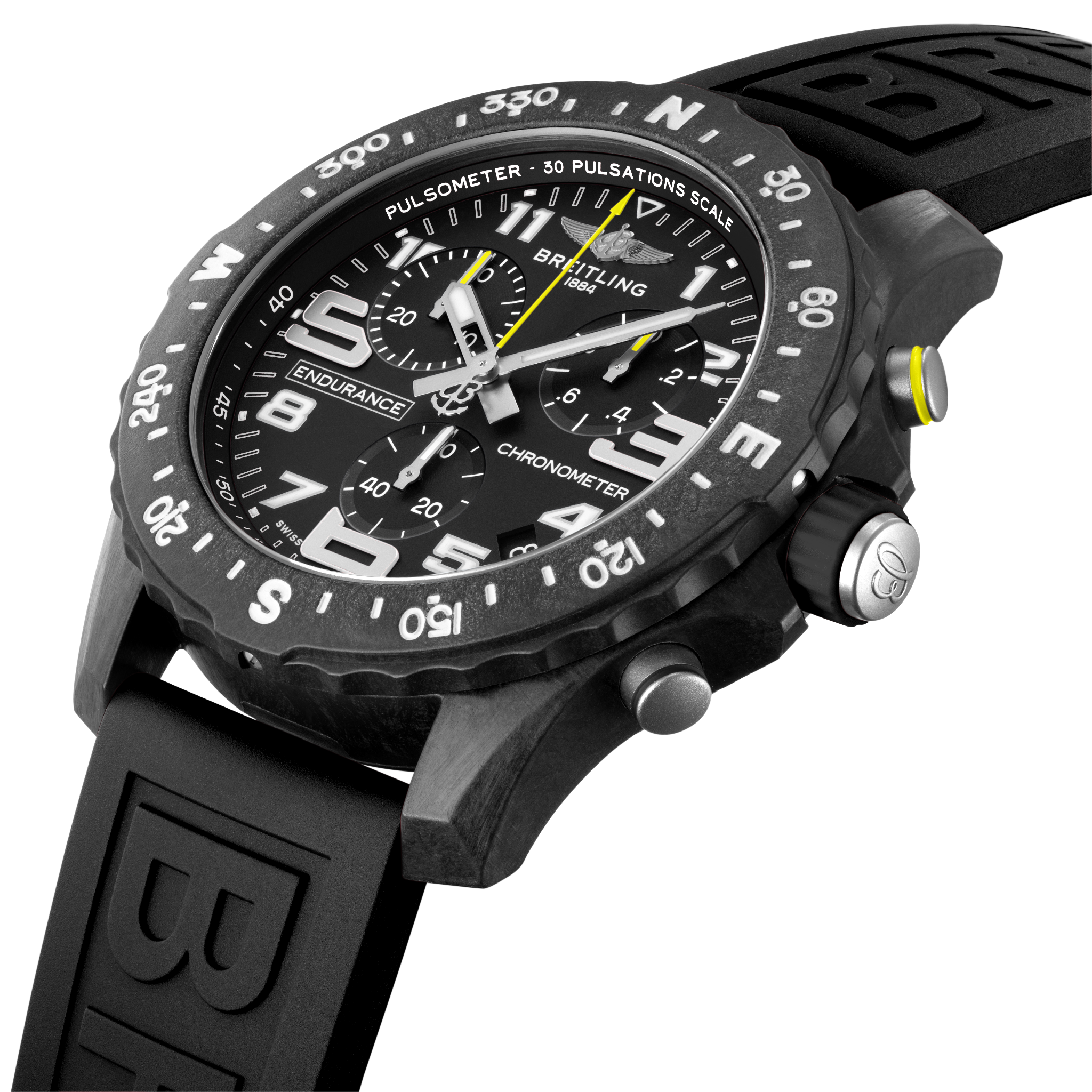 Designed to be both a lightweight watch for athletes and a casual, everyday sports chronograph, the Endurance Pro perfectly blends high precision & innovative technology with a vibrant & colorful design. It is the ultimate athleisure watch. Designed for men and women whose active lives blend a professional mindset with a sporty lifestyle, the Endurance Pro is equal to the challenges of a rigorous workout but fashionable enough for everyday wear. The Endurance Pro features an ultra-light Breitlight® case, a robust material 3.3 times lighter than titanium and 5.8 times lighter than stainless steel. Non-magnetic, thermally stable and hypoallergenic, Breitlight® is highly resistant to scratches, traction and corrosion. It also has a touch that is warmer than metal and a slightly textured effect accentuating the originality of the design. Exclusive to Breitling, it is 100% Swiss-made. Offered with a set of colorful dial and rubber straps fitting a Breitlight® double tang-type buckle, the Endurance Pro can also be paired with one of Breitling’s colorful Outerknown ECONYL® yarn single-piece strap. Powering the Endurance Pro is Breitling’s Caliber 82, a COSC-certified SuperQuartz™ chronograph delivering exceptional precision.