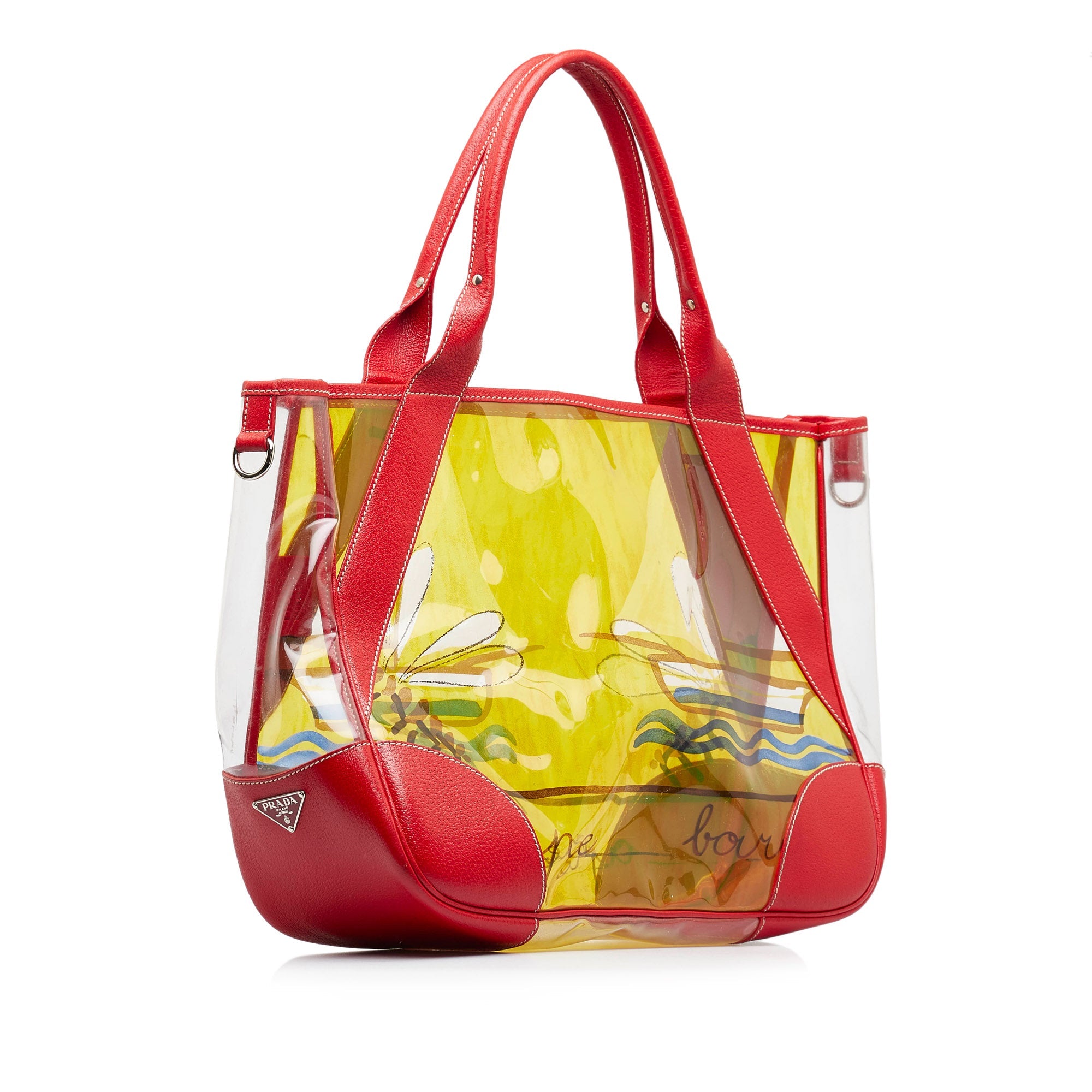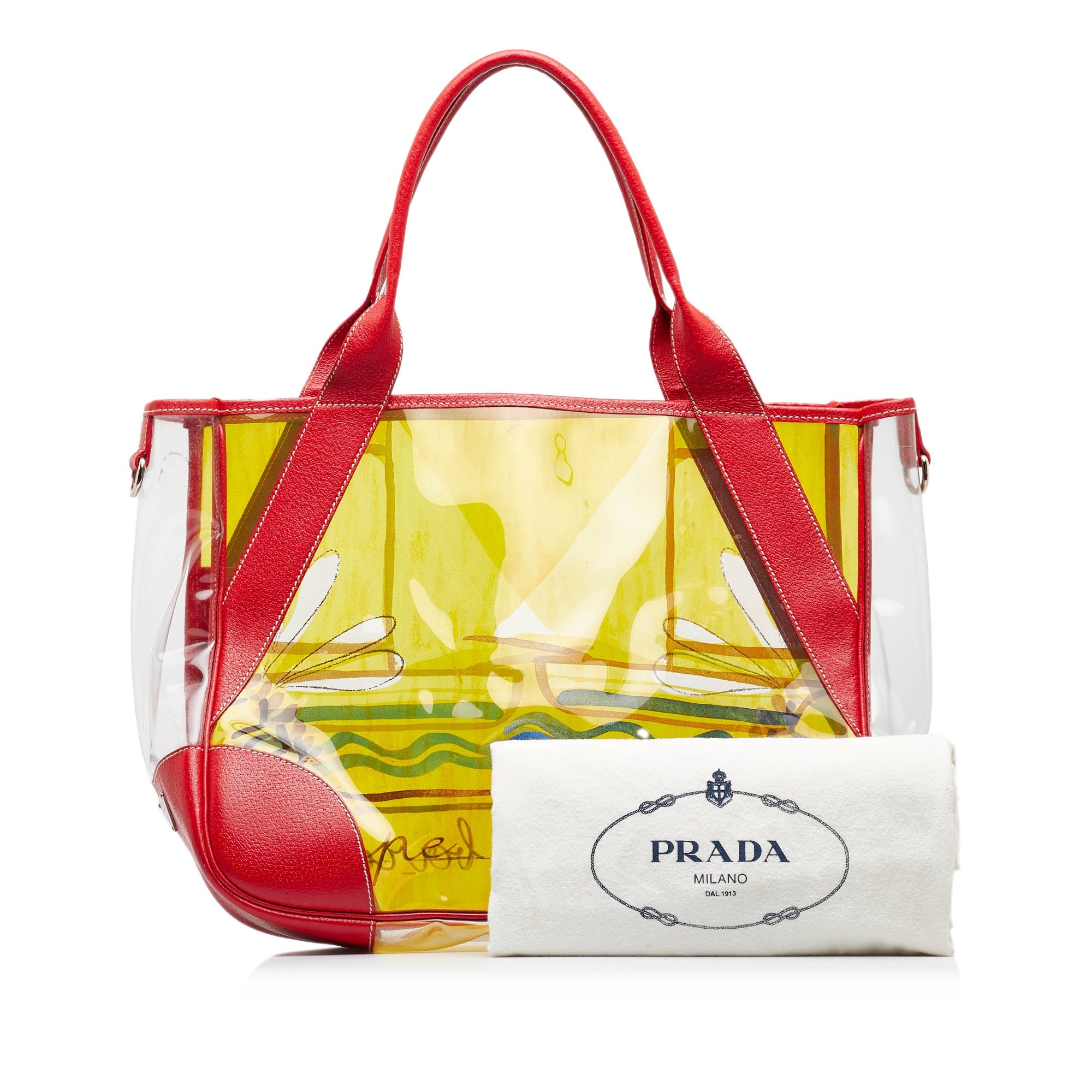 Please note this is a item that may display signs of wear consistent with the condition listed above and shown in photos. Designer Revival this is an Yellow Prada Printed Vinyl Tote Bag or . Learn more about our ation process.